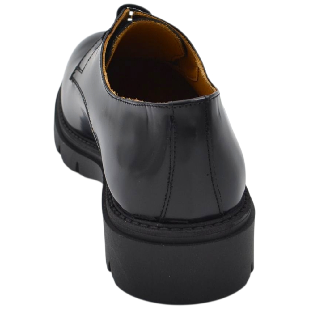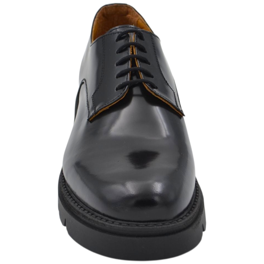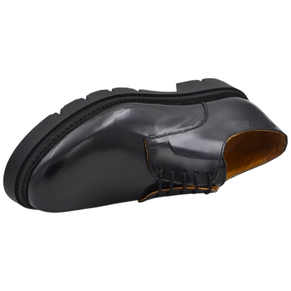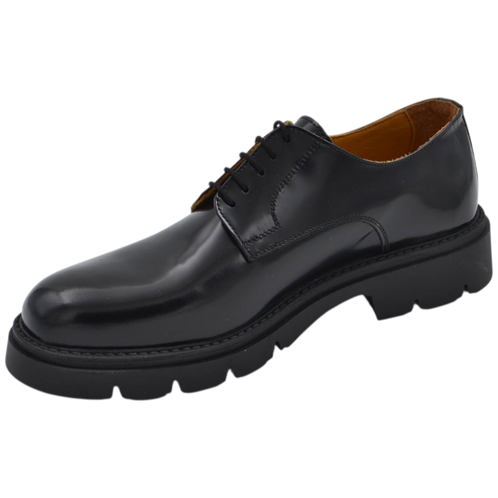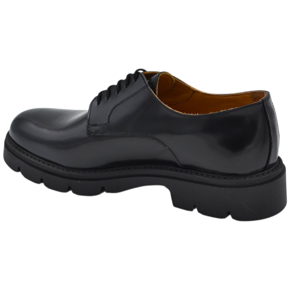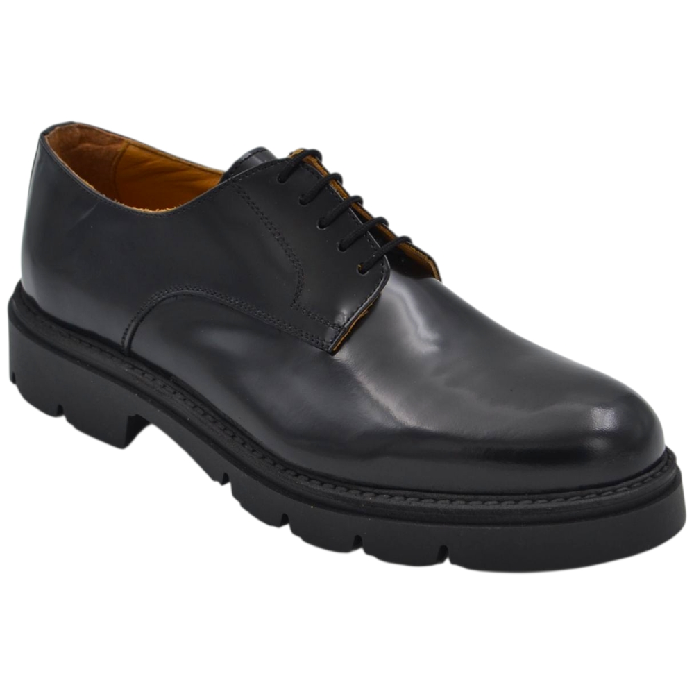 Scarpa uomo derby stringata in pelle abrasiva nera spazzolato fondo gomma roccia alto handmade