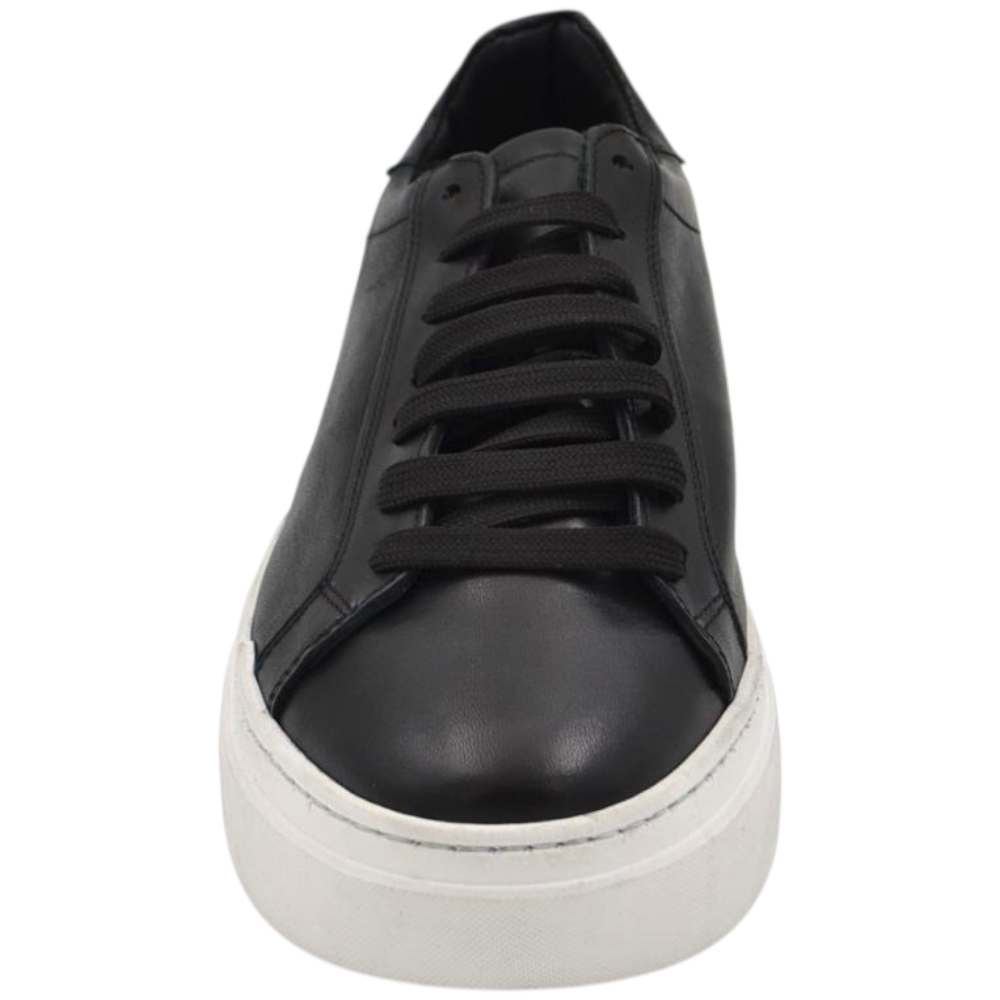 Sneakers bassa uomo in vera pelle nera e cuciture fondo in gomma tono su tono basso moda business man comfort.