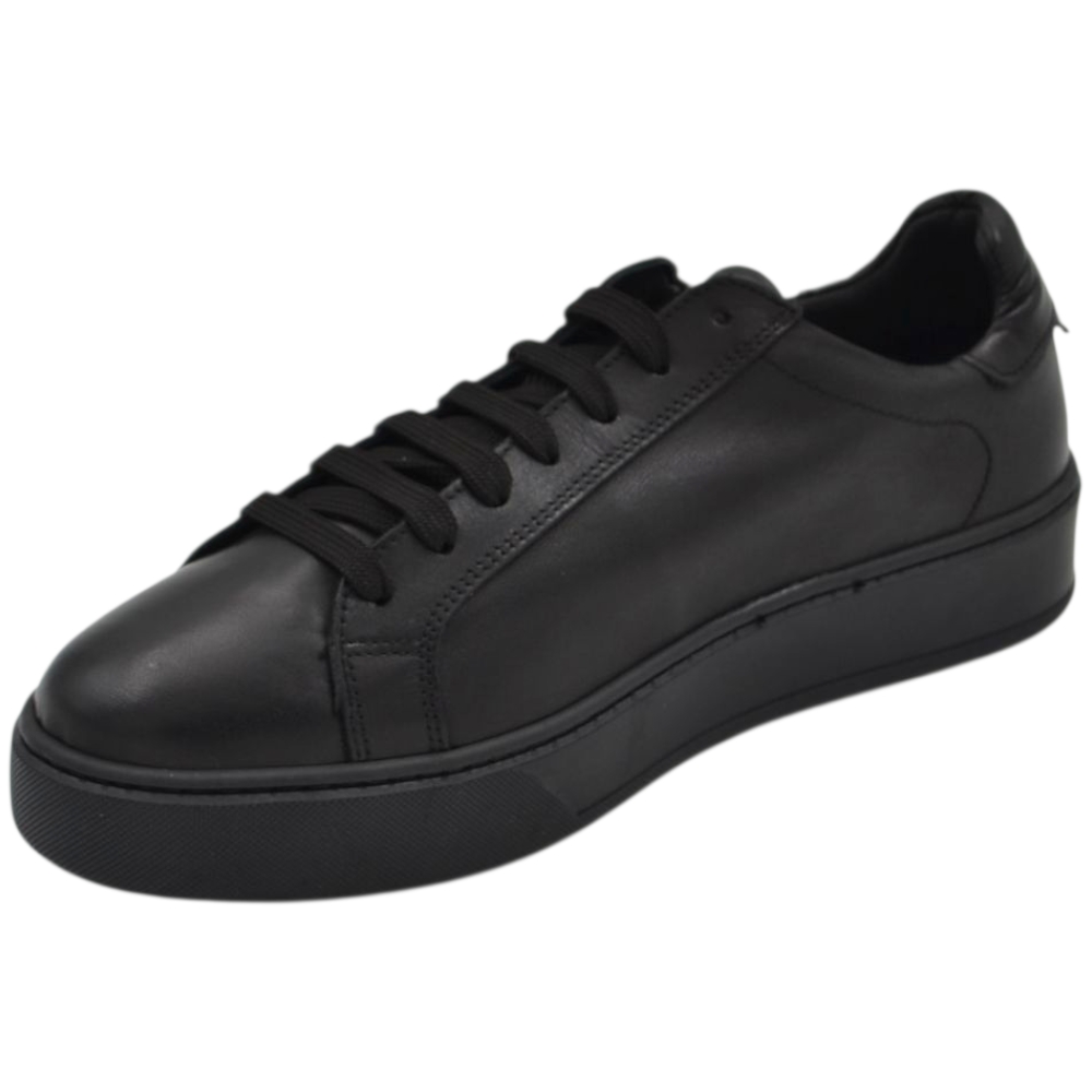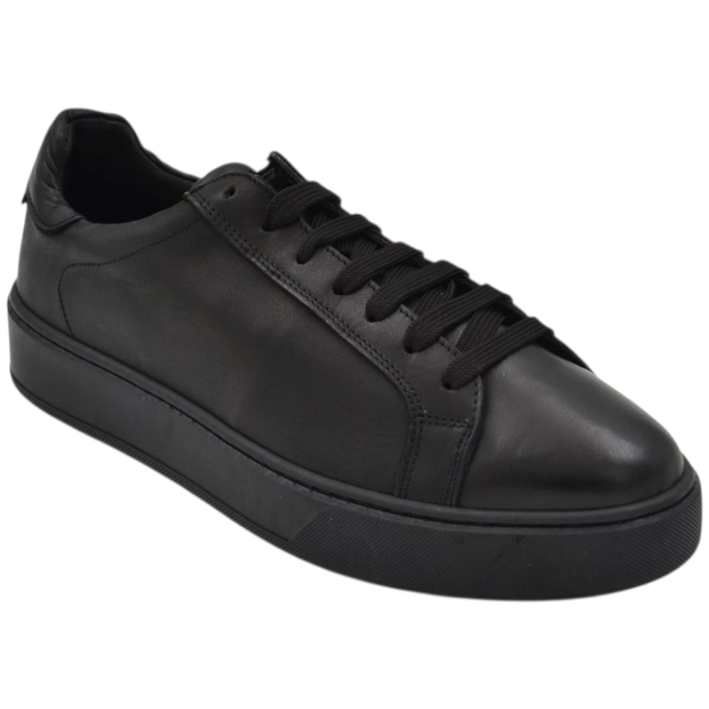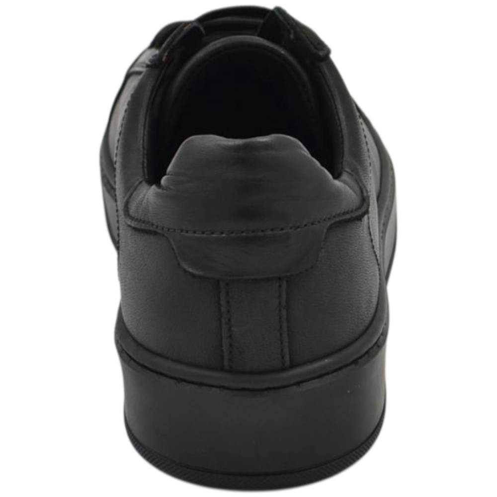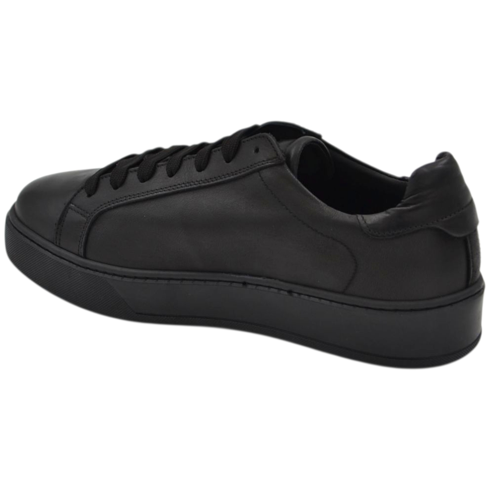 Sneakers uomo in vera pelle nero con talloncino in pelle tono su tono gomma comfort casual made in Italy moda.
