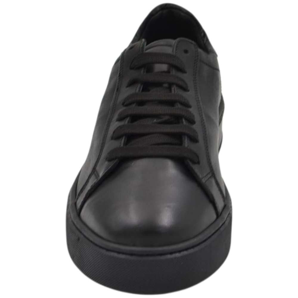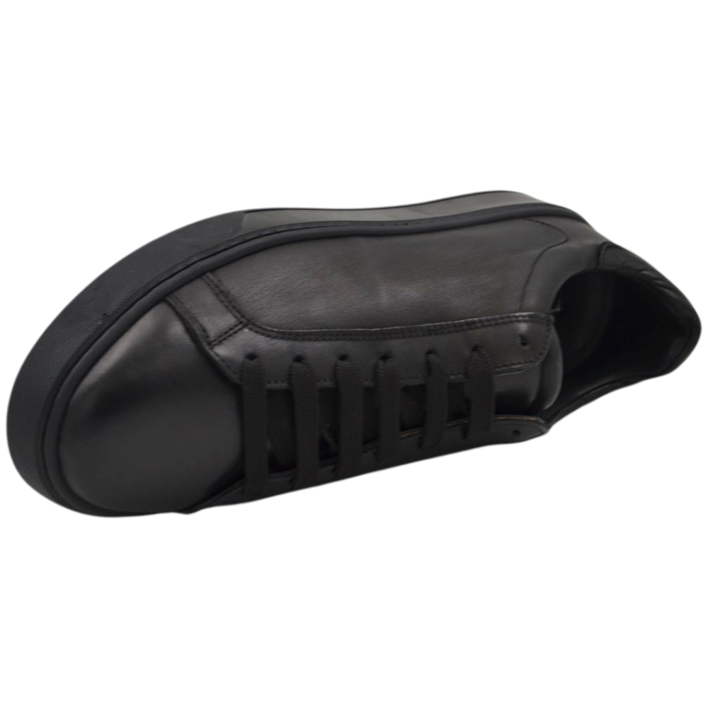 Sneakers bassa uomo in vera pelle nera e cuciture fondo in gomma tono su tono basso moda business man comfort.