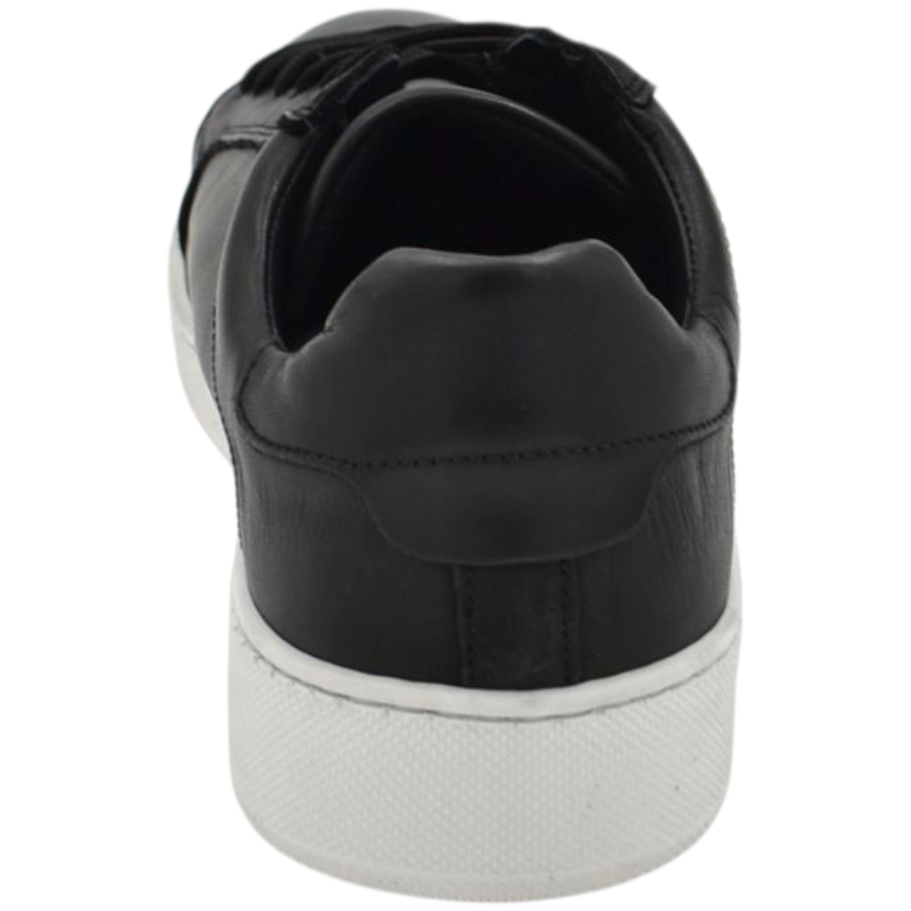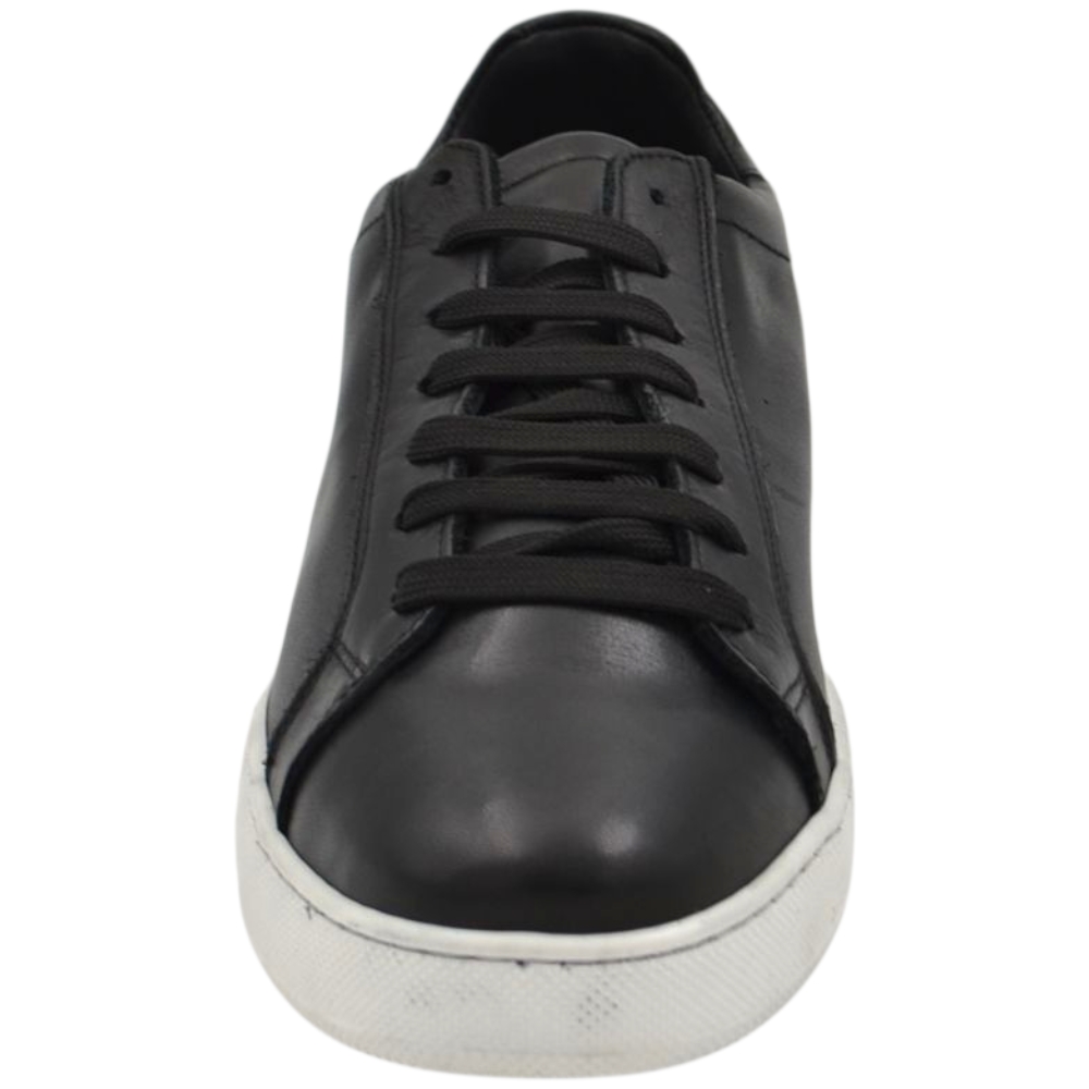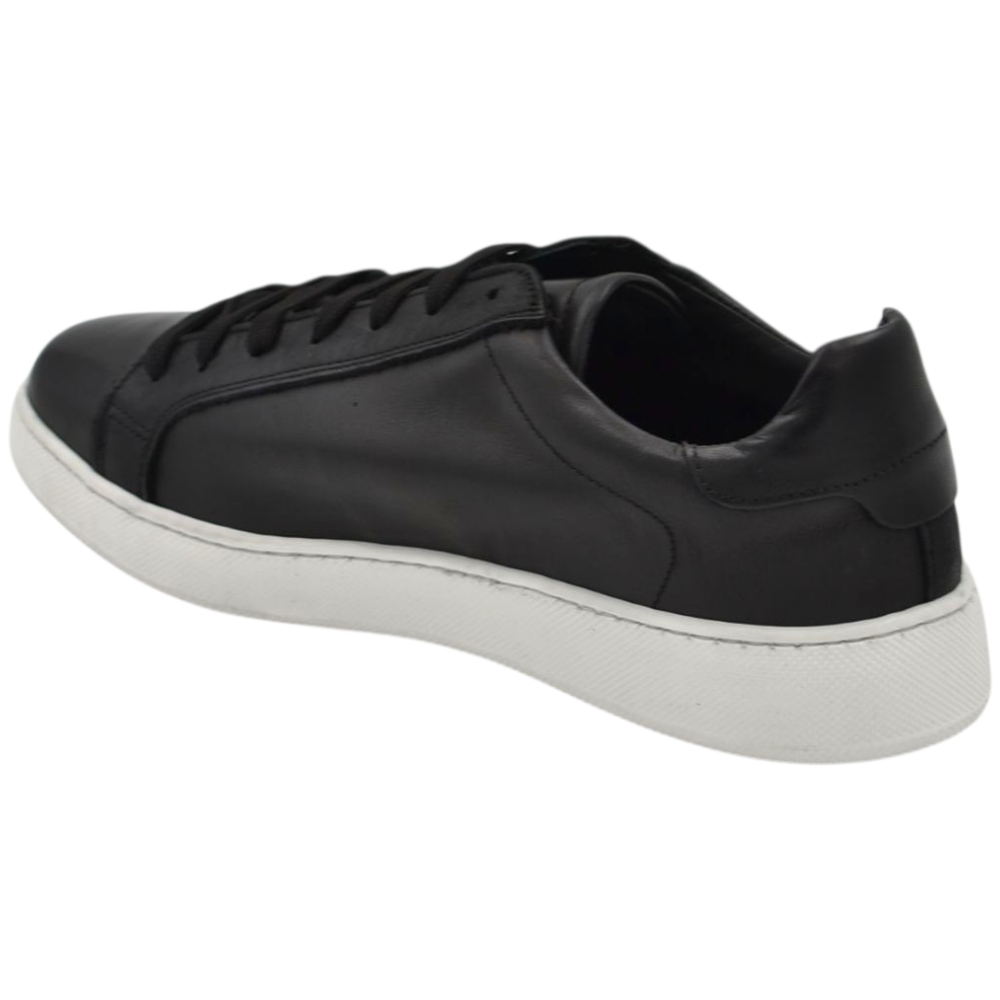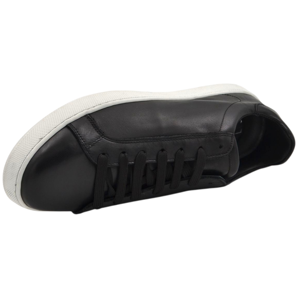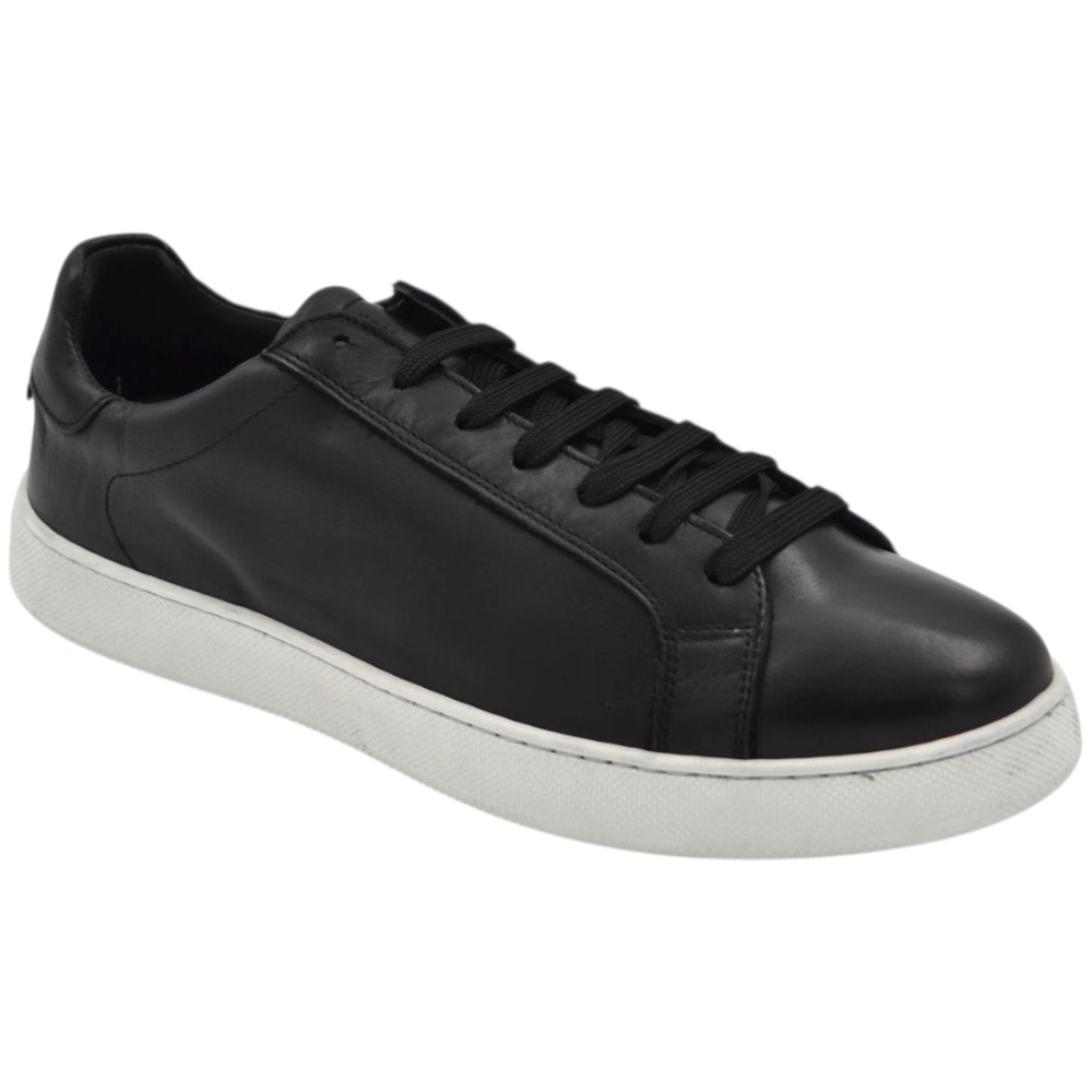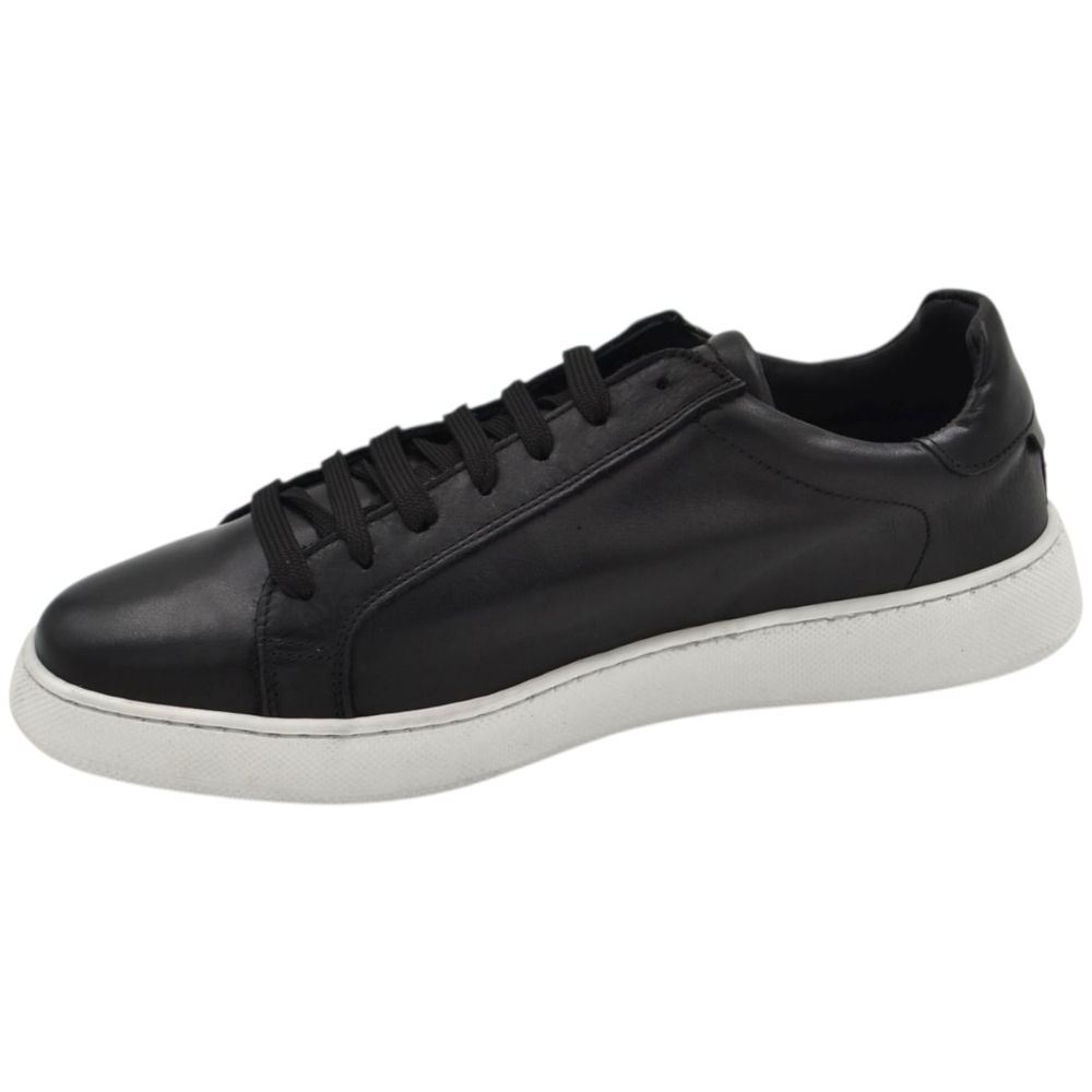 Sneakers uomo bassa in vera pelle vitello liscia nera con fondo alto in gomma bianca eva lacci casual made in Italy