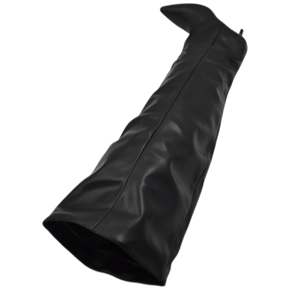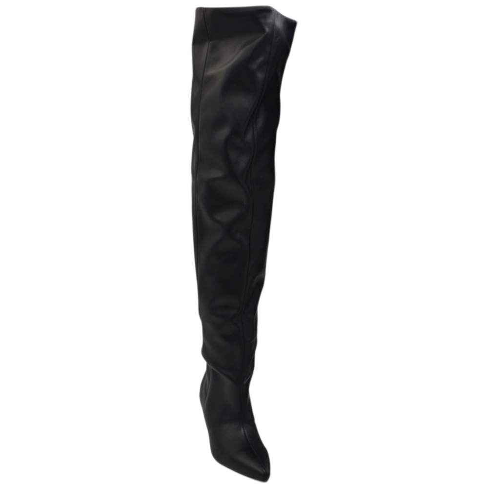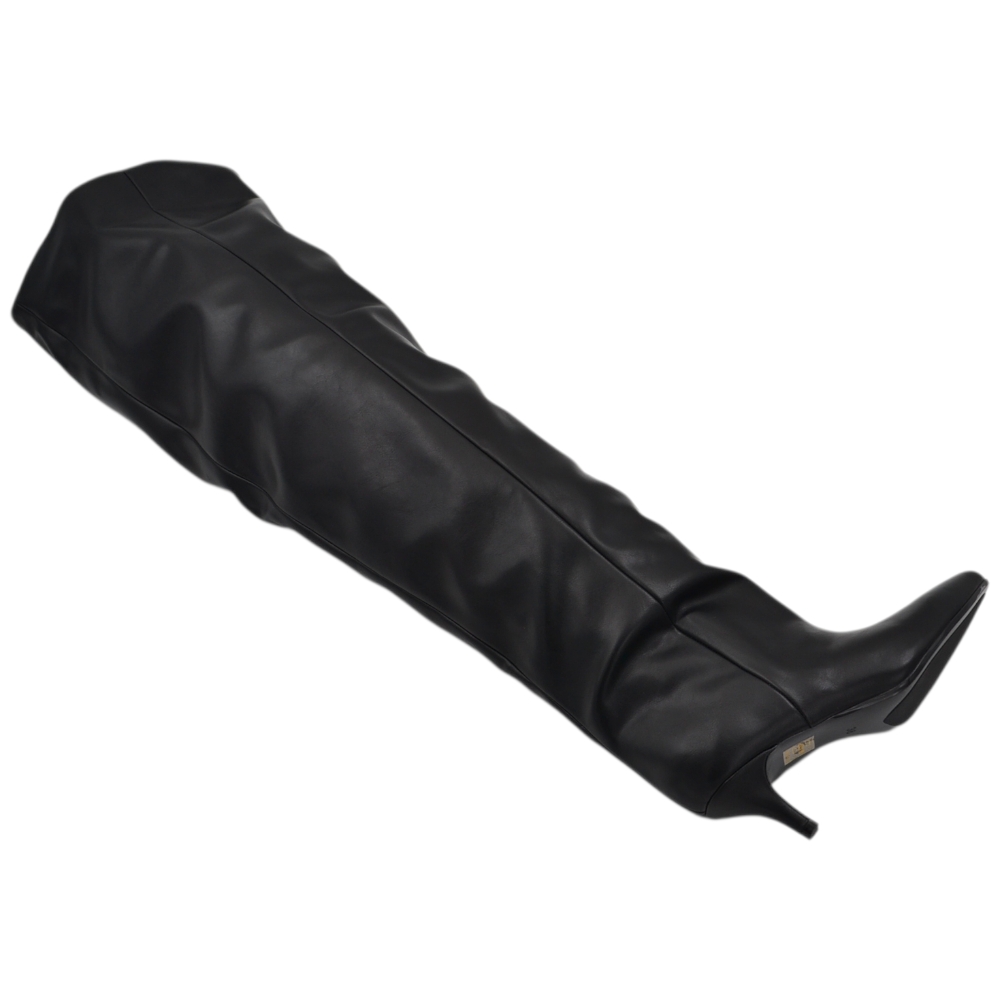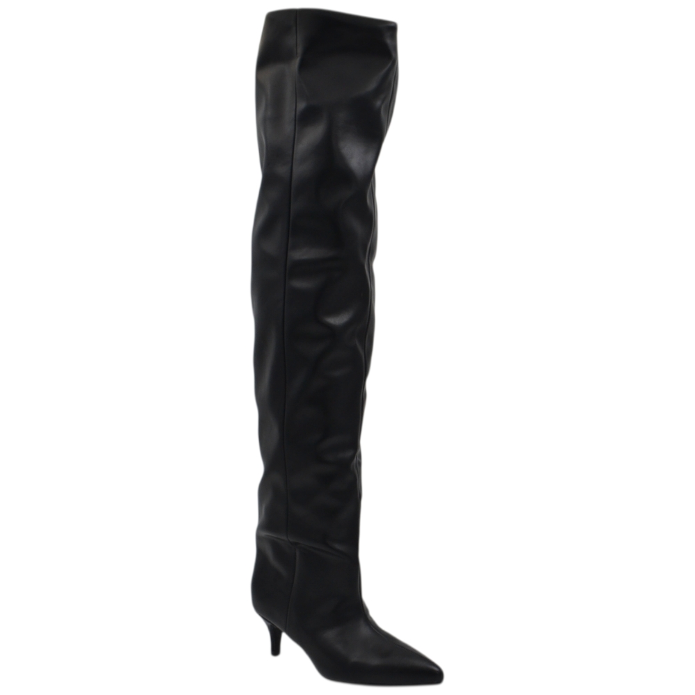 Stivali slouchy altissimo in pelle nera a punta con tacco basso kitten 5 cm gambale over trend