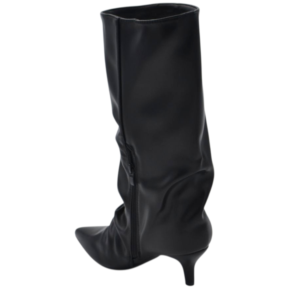 Il gambale morbido e strutturato offre una vestibilità versatile, perfetta anche per polpacci più importanti, adattandosi con stile a ogni fisicità. Realizzati in materiale effetto pelle opaca di alta qualità, sono ideali per completare look da giorno o da sera, con pantaloni skinny, abiti midi o gonne ampie.