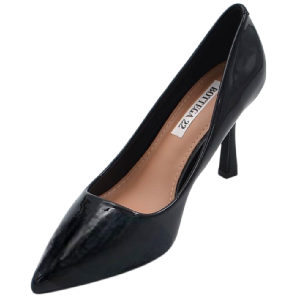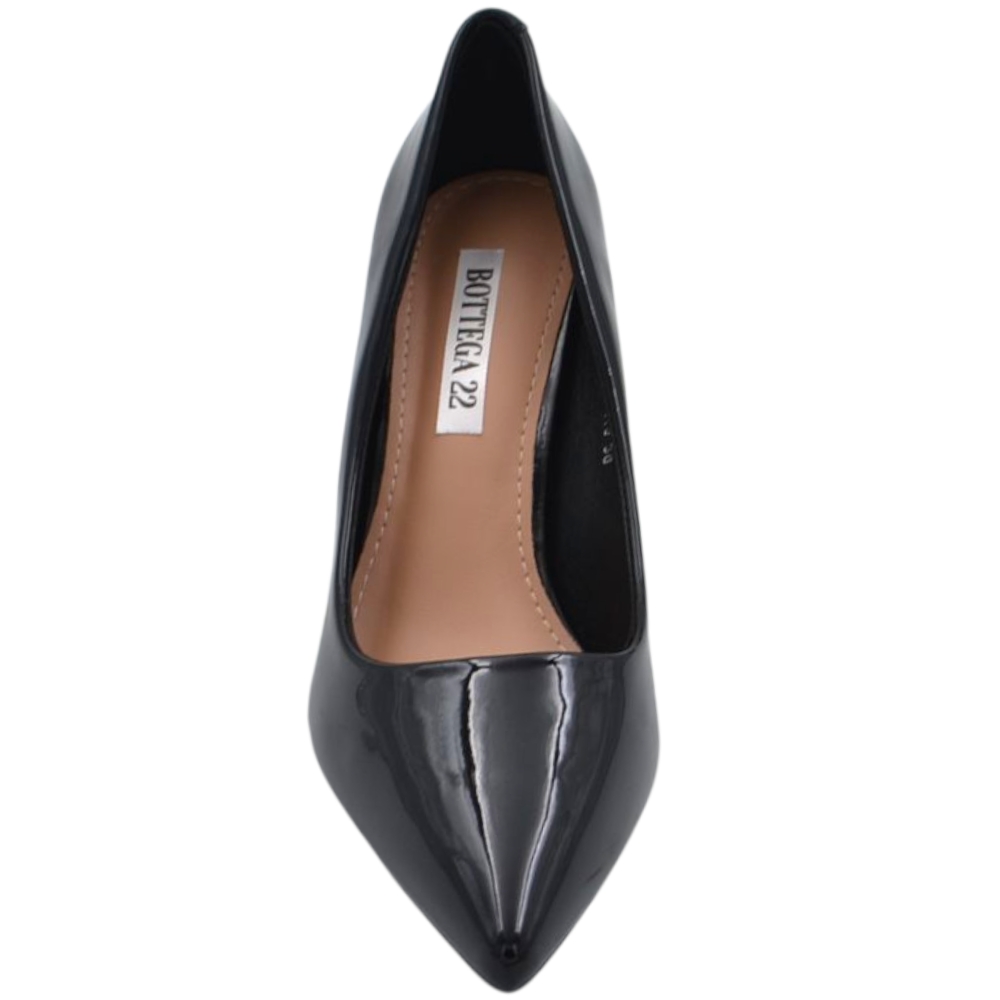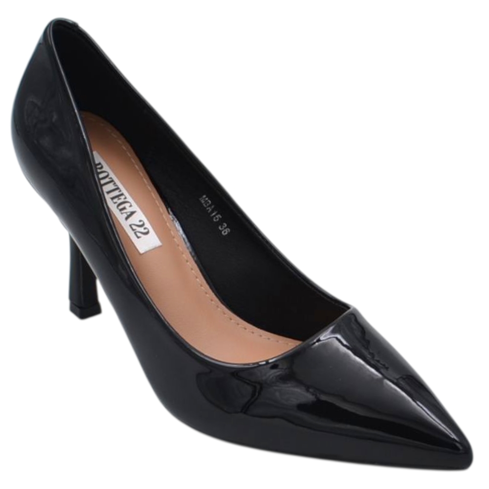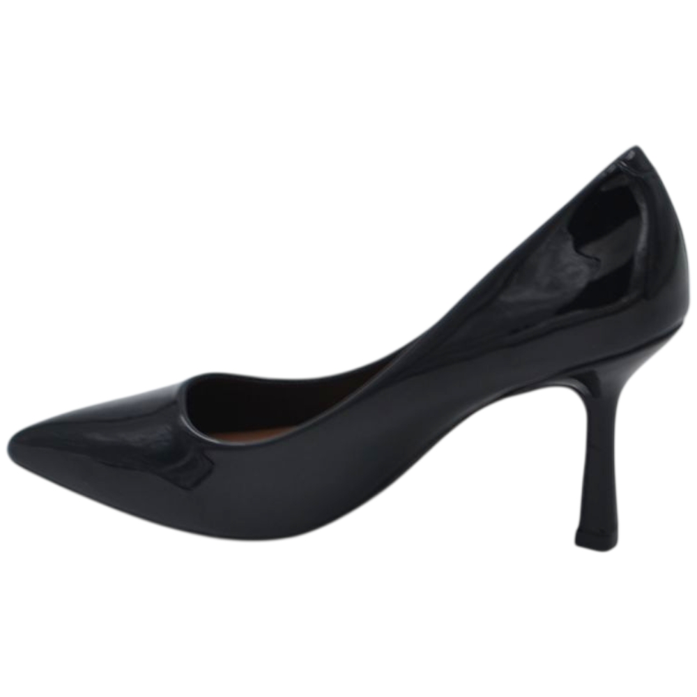 Decollete donna in vernice lucida nera con tacco a clessidra 8 cm linea basic