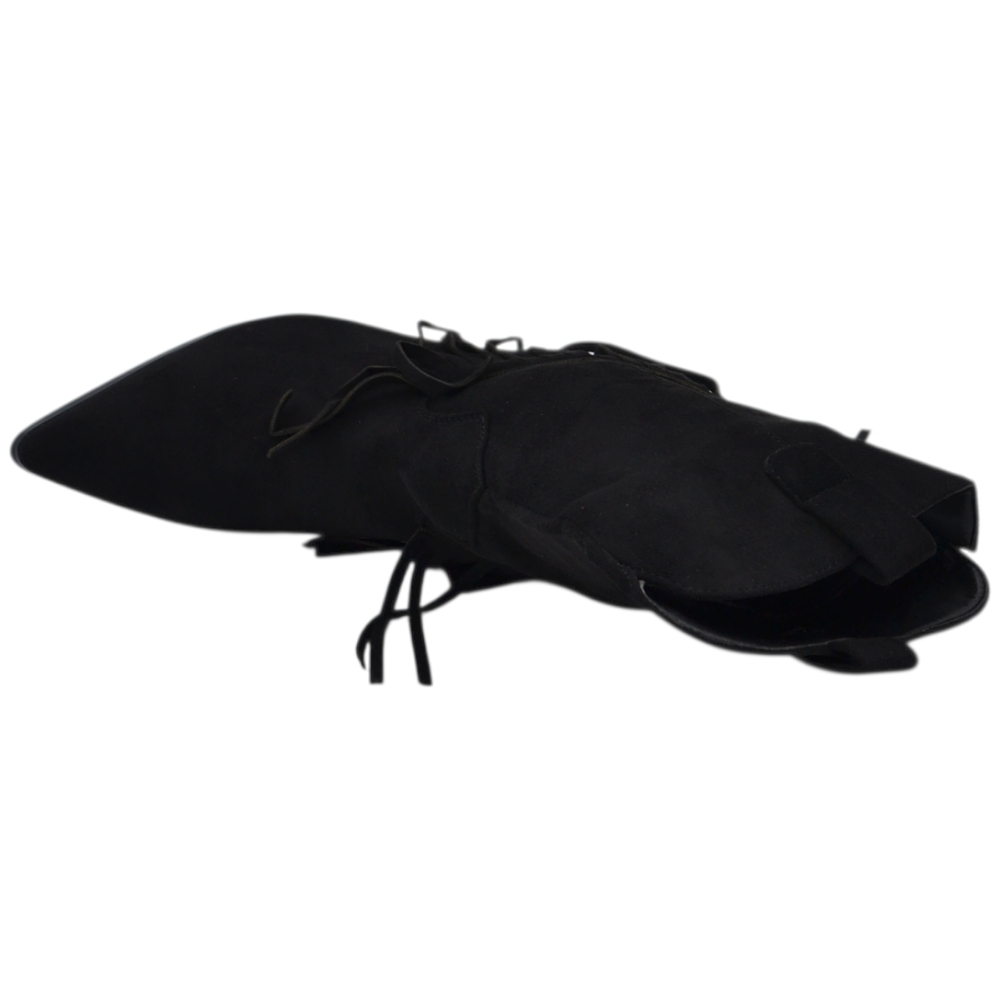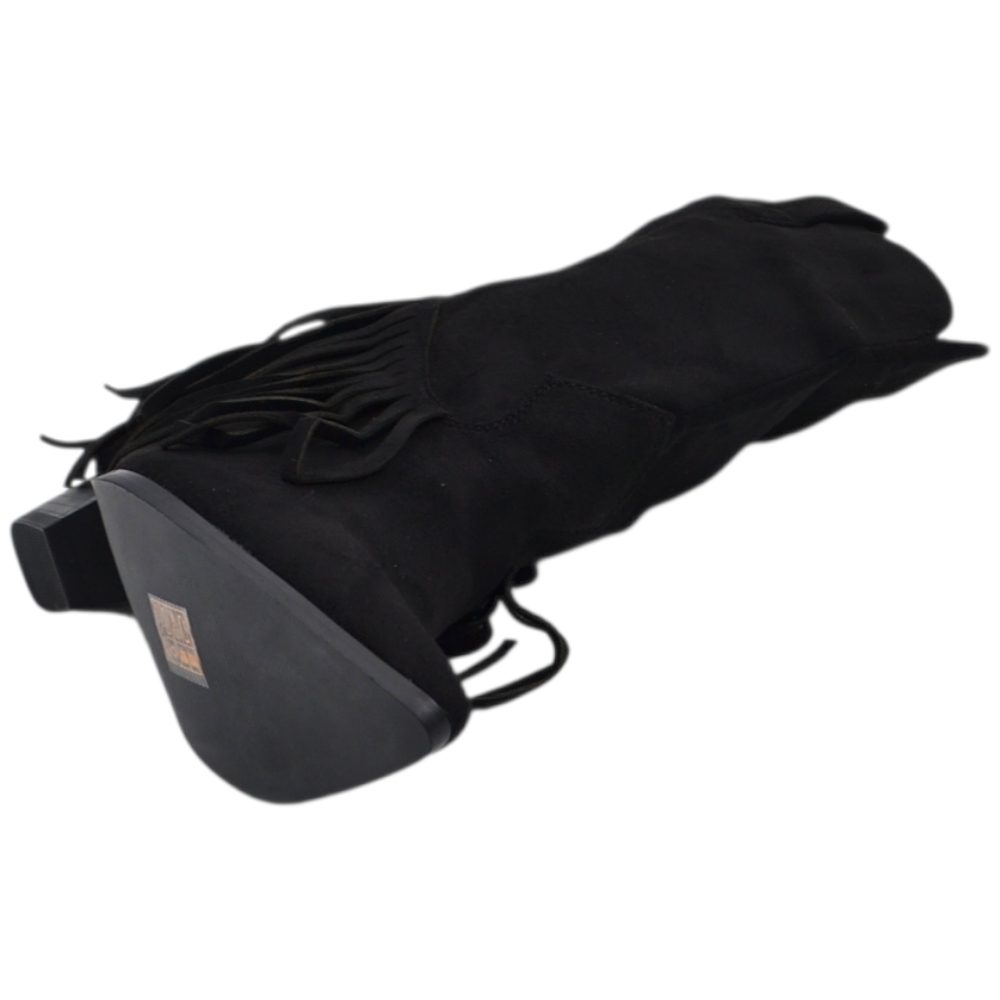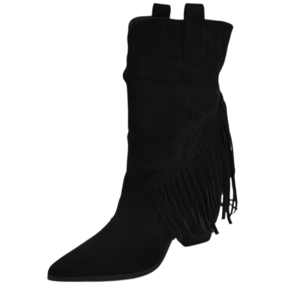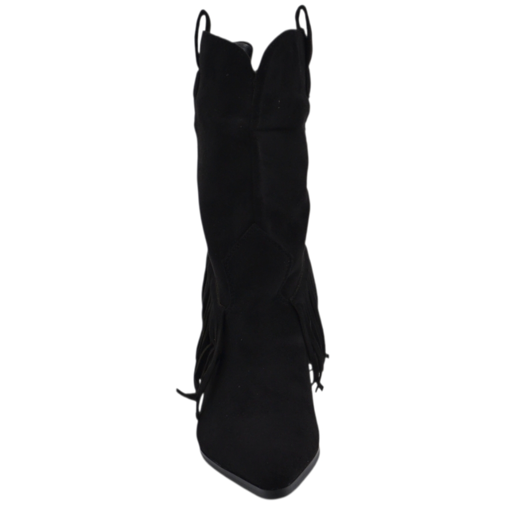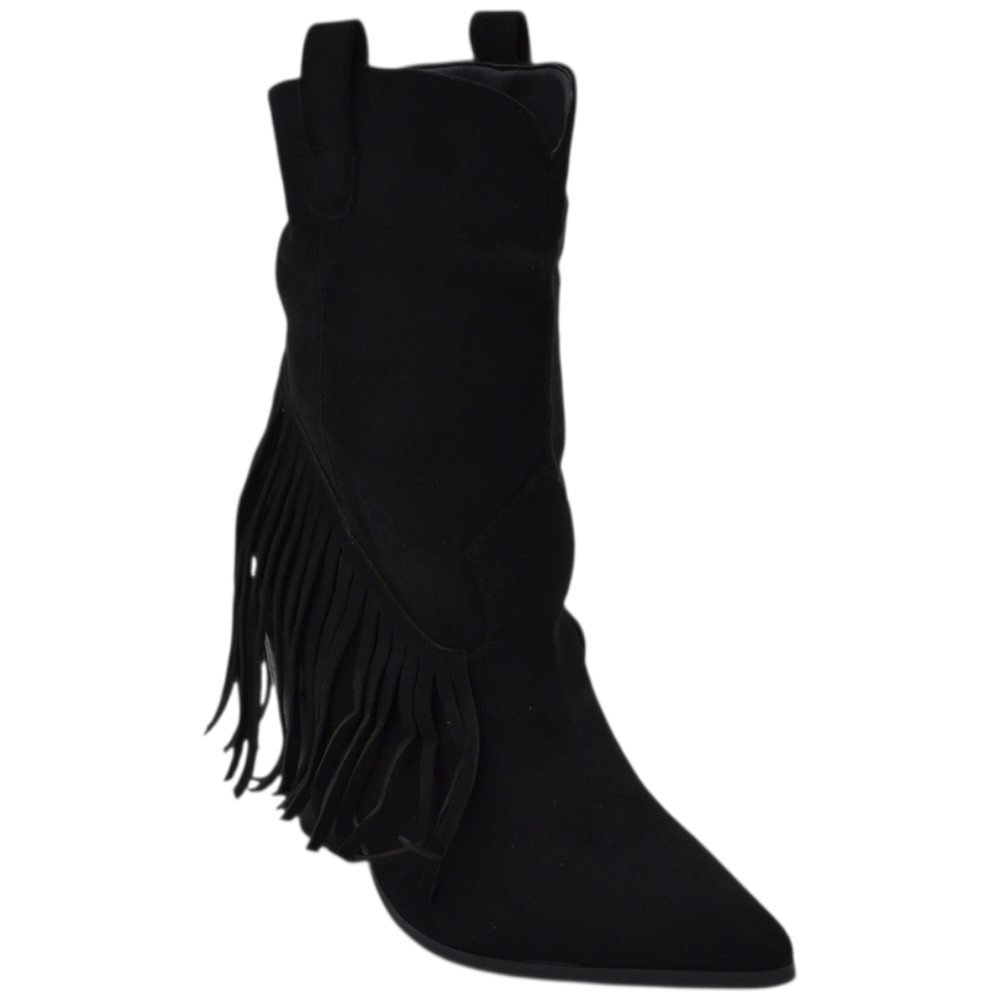 Tronchetto camperos donna in camoscio nero al polpaccio con frange punta tacco western 7 cm moda zip linea basic