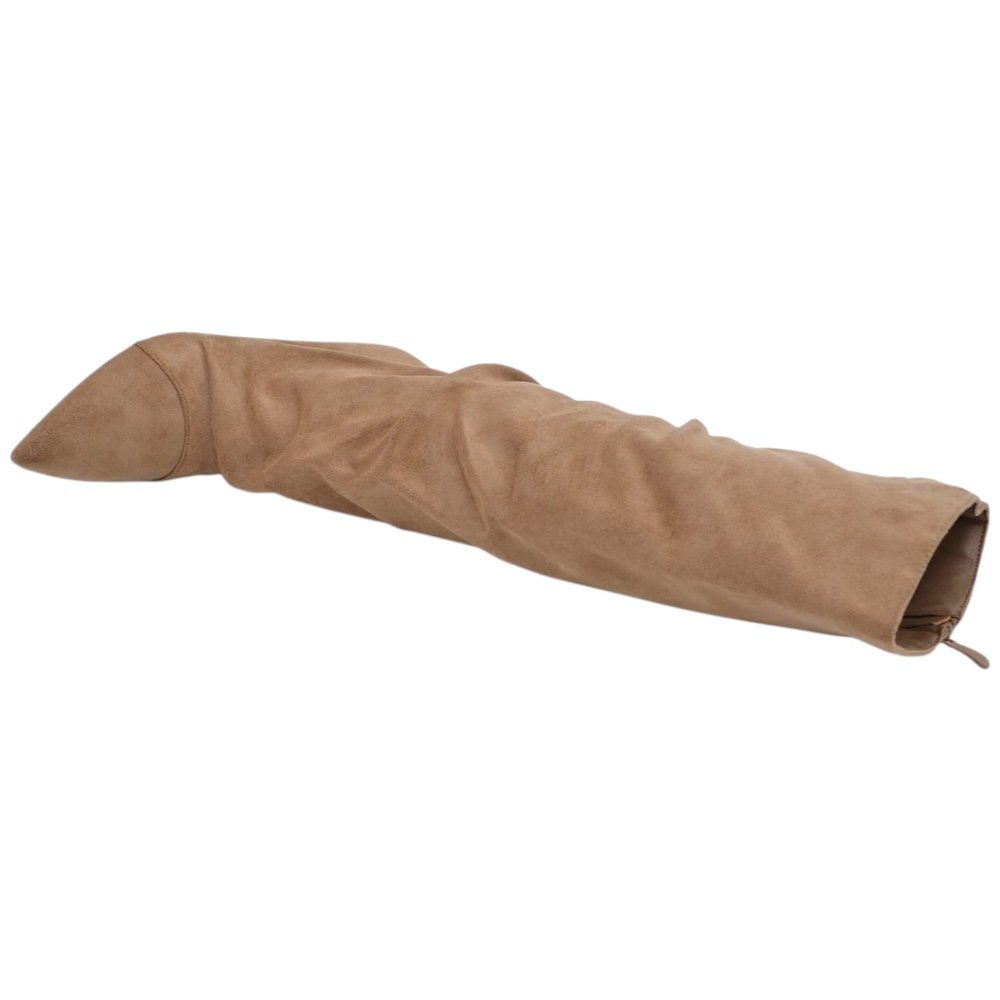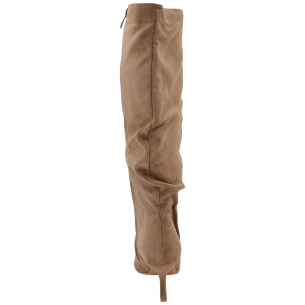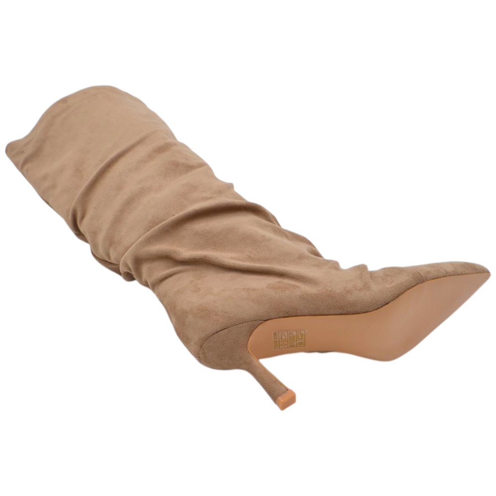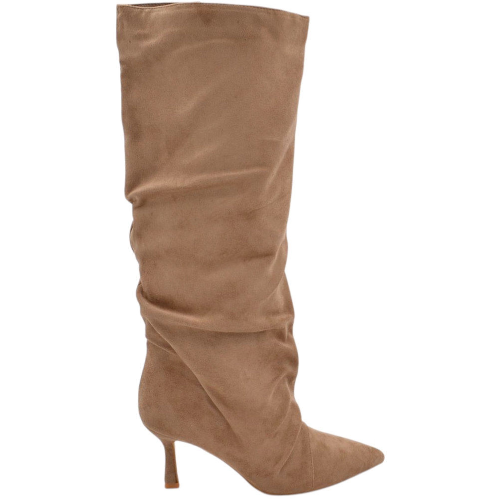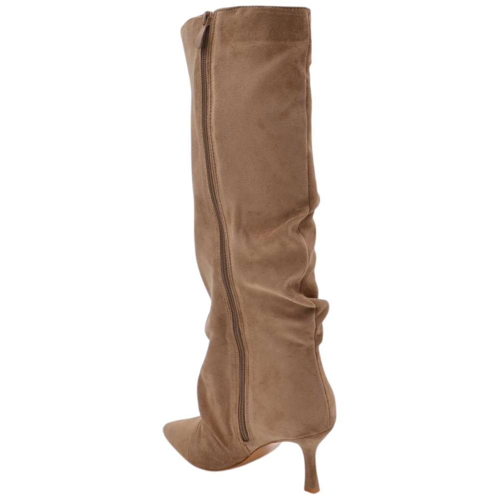 Stivale alto slouchy camoscio beige donna linea Basic con tacco a spillo kitten 3 cm gambale over a punta zip