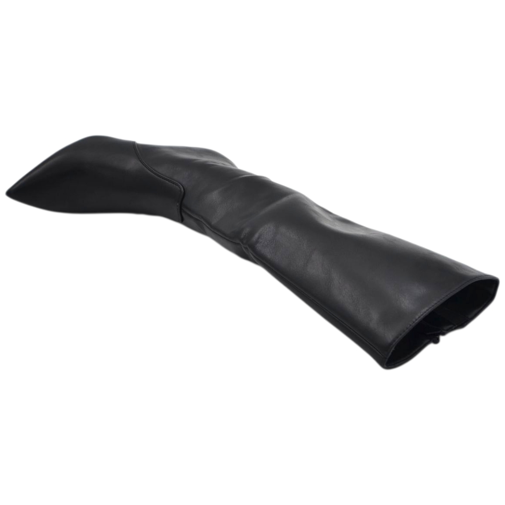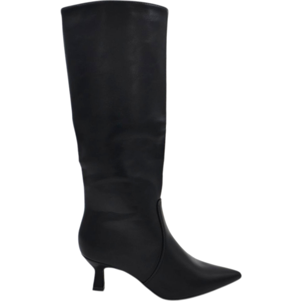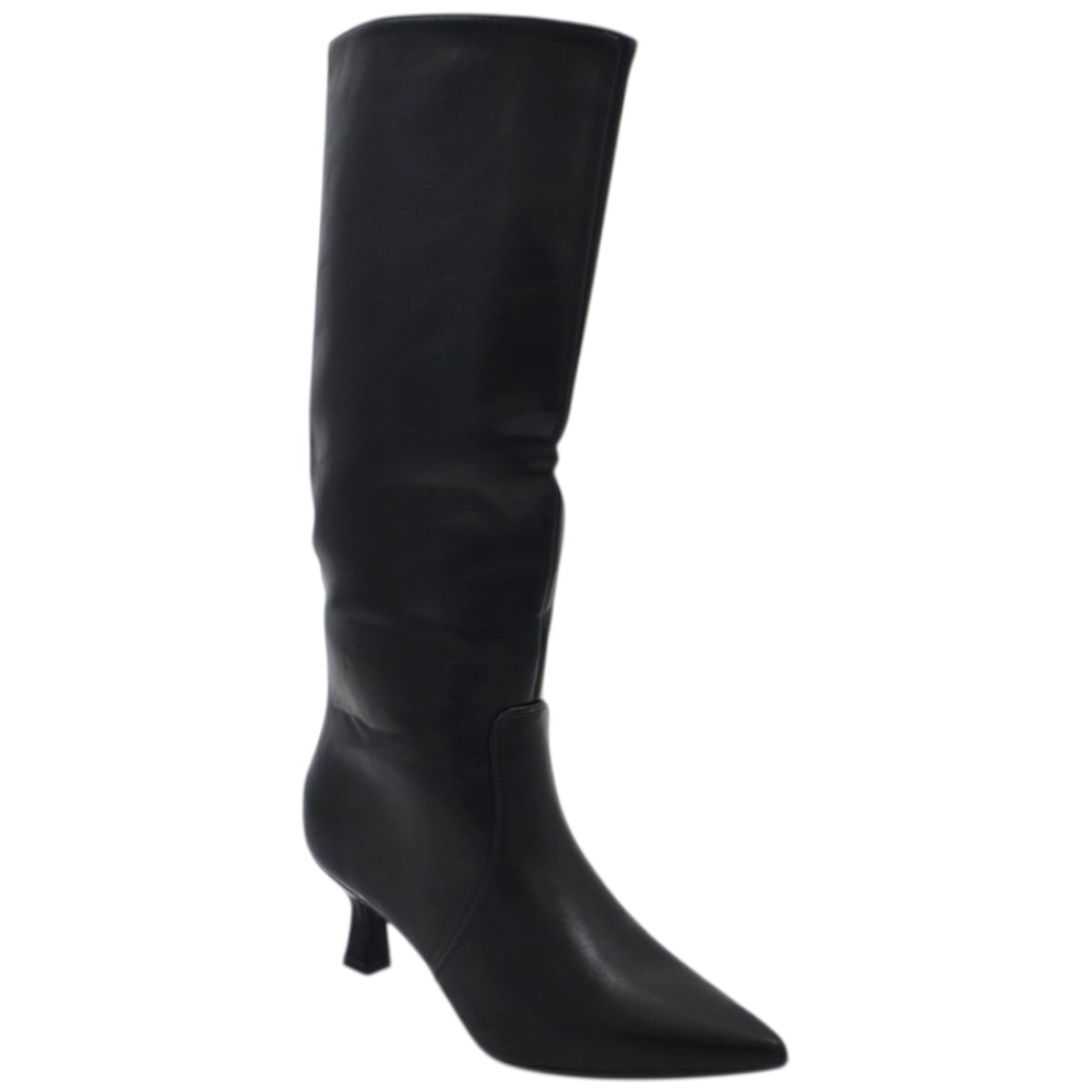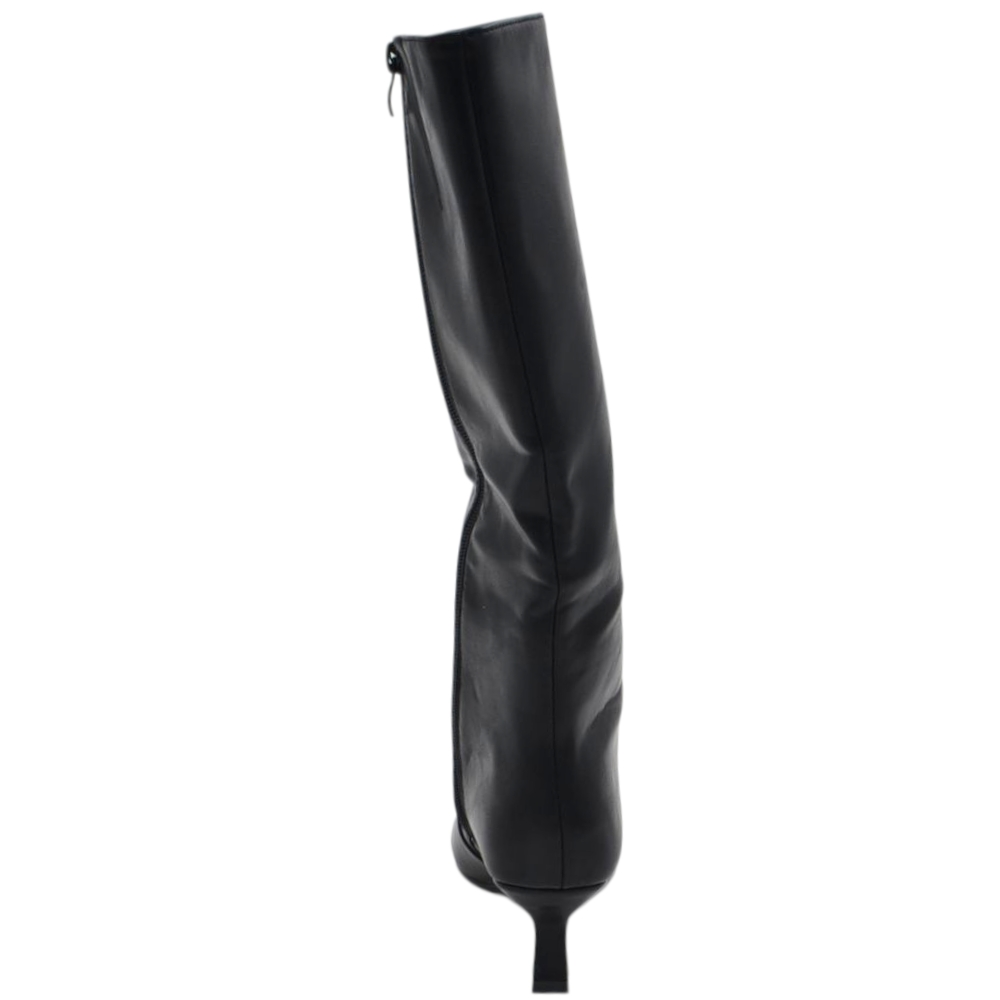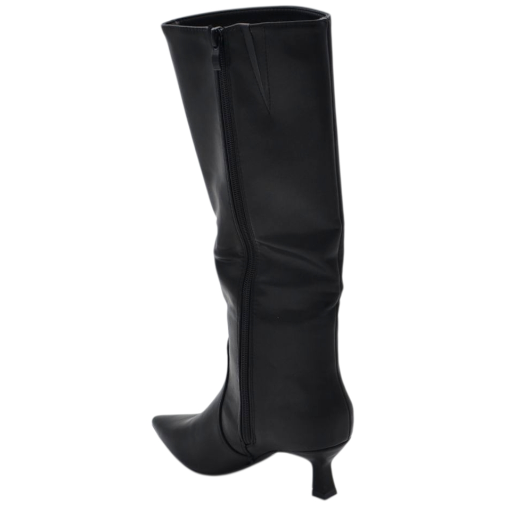 Stivali slouchy in pelle nero a punta con Tacco kitten 3 cm stiletto gambale stretto