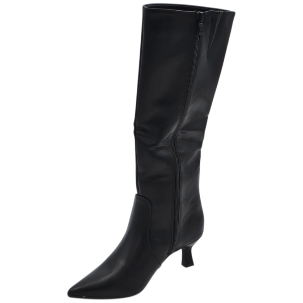 Lo stivale da donna a punta è un modello realizzato in ecopelle con una comoda fascia che avvolge l'avampiede. L'interno e il sottopiede sono in comodo tessuto, la suola è in gomma con tacco comodo 10 cm, la chiusura con zip e retro che facilita la calzata. Per una donna trendy e femminile.