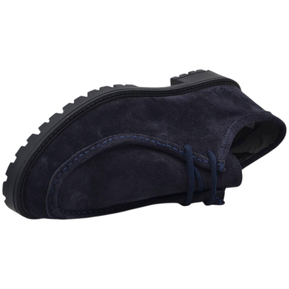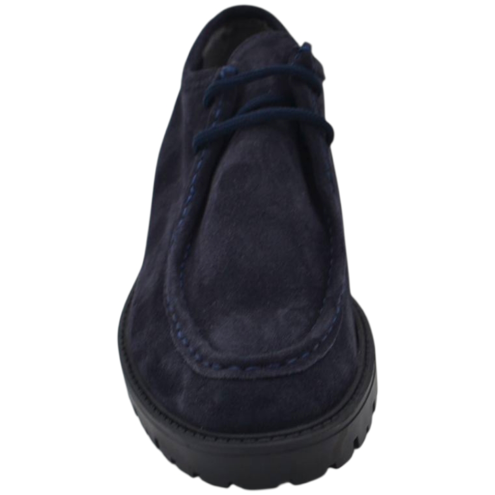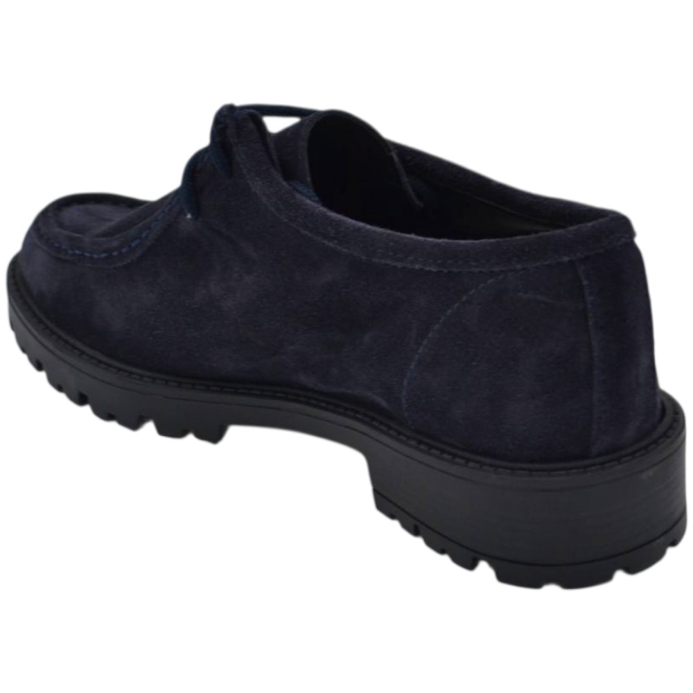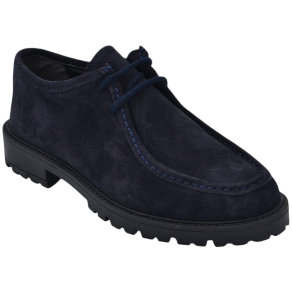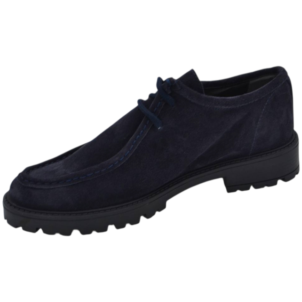 Scarpe uomo stringate ingegniere vera pelle camoscio blu spazzolato suola alta zigrinata made in italy