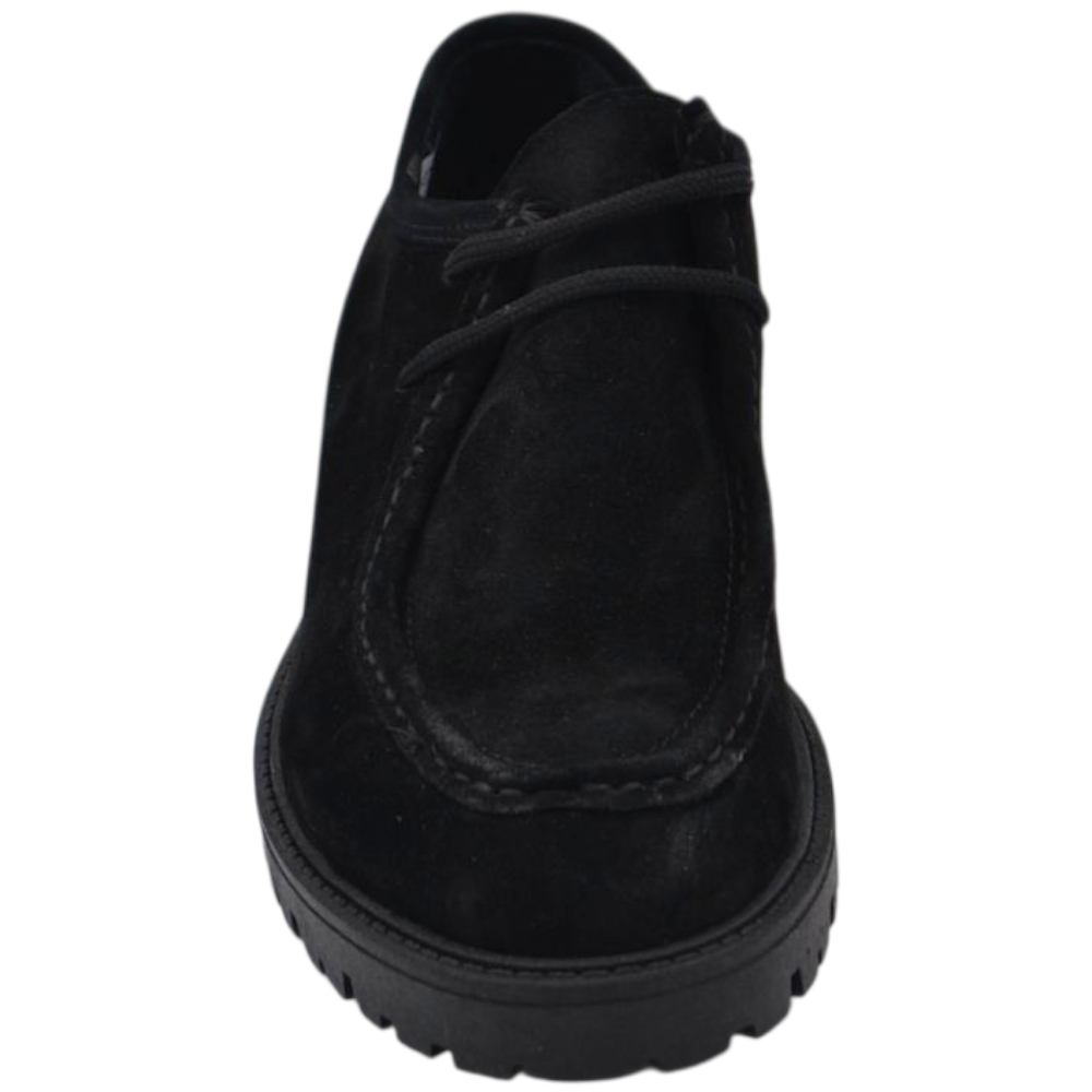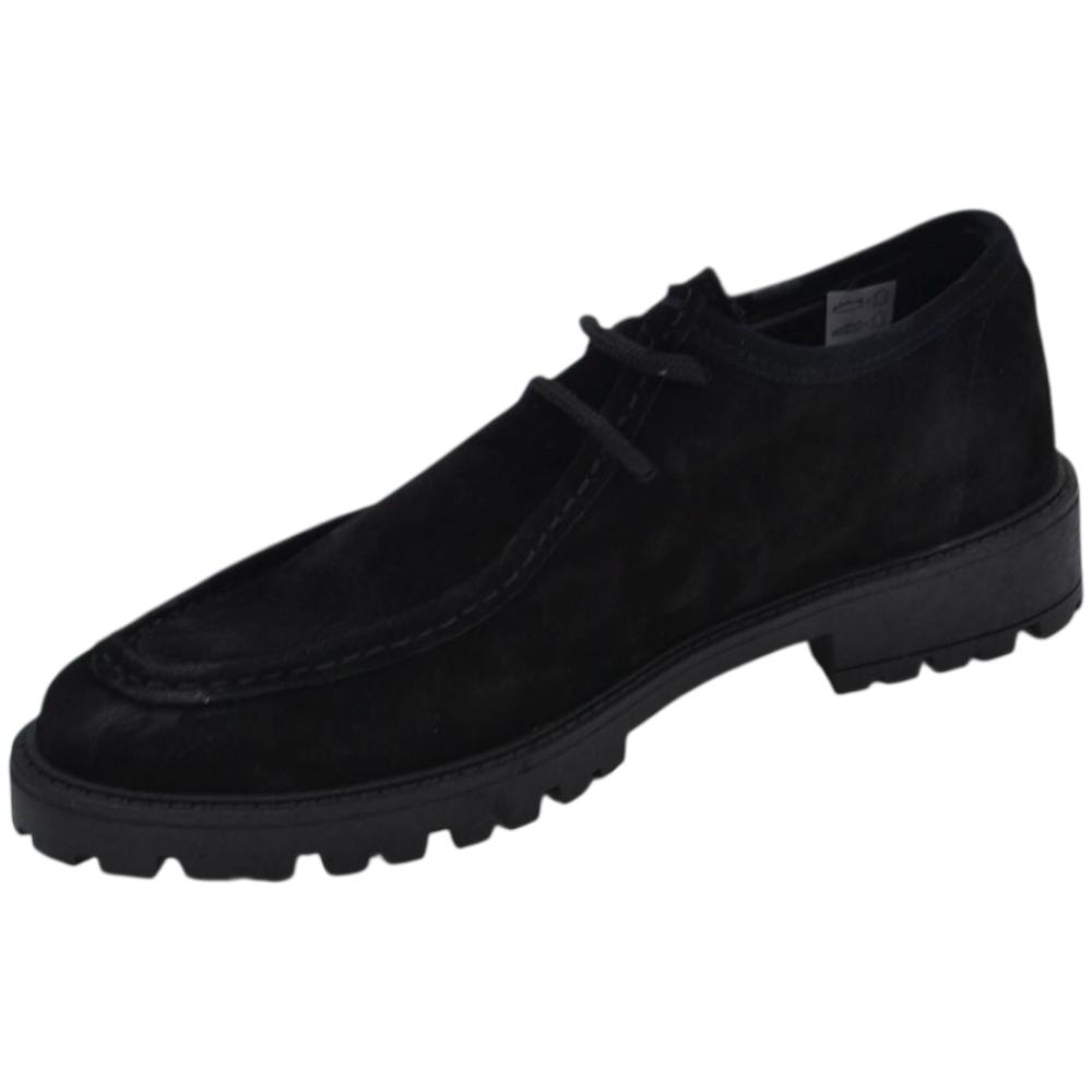 Scarpe uomo stringate ingegniere vera pelle camoscio nero spazzolato suola alta zigrinata made in italy