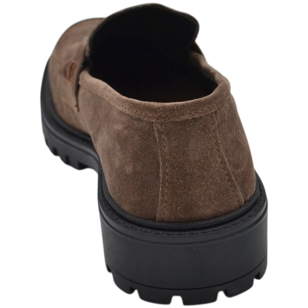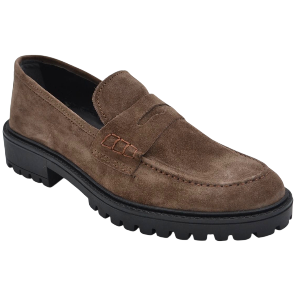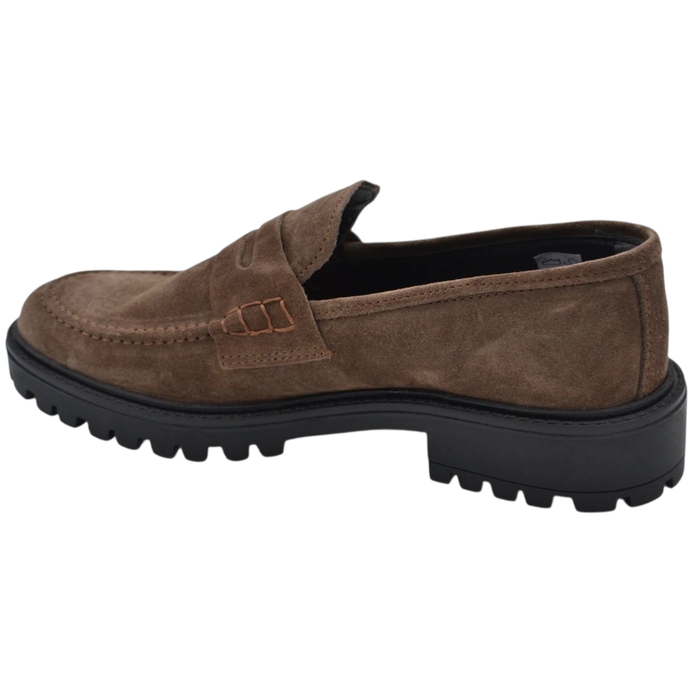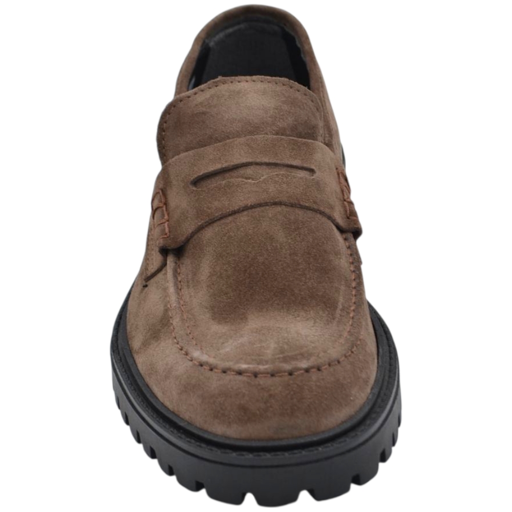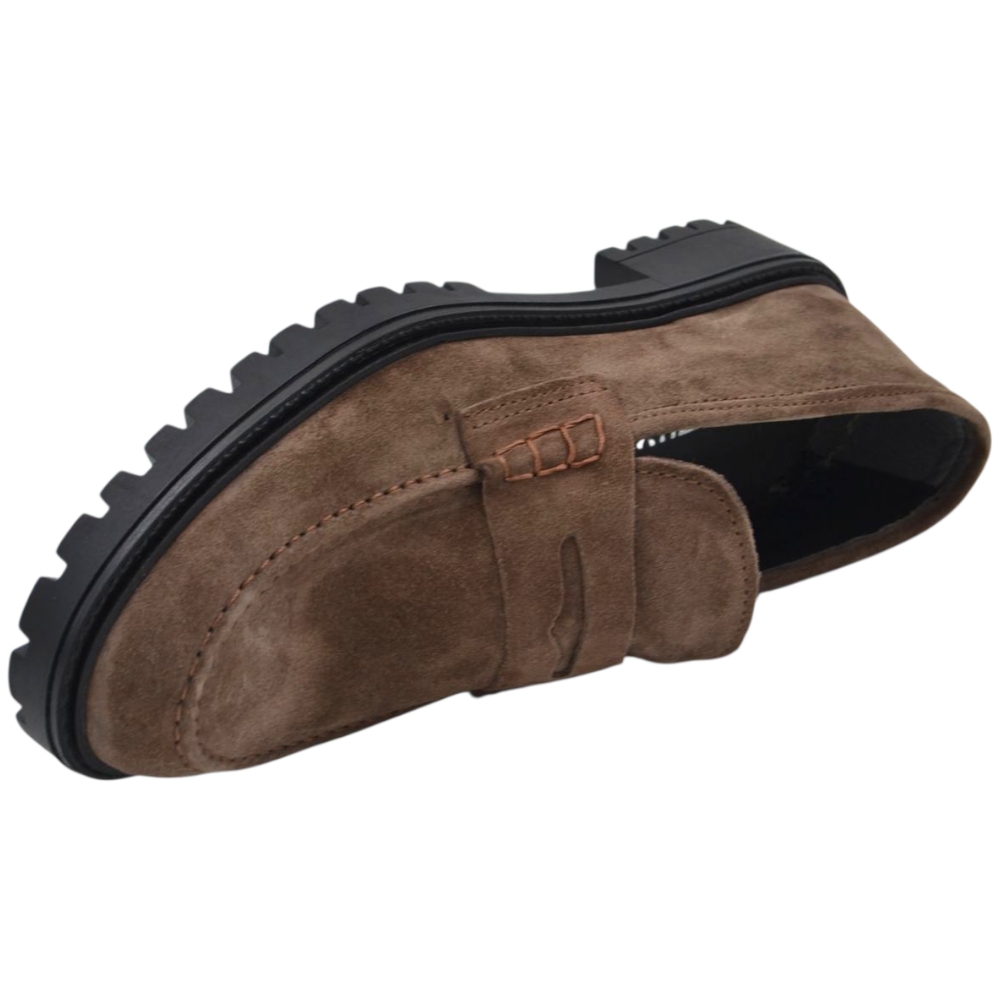 Scarpe uomo mocassino con bendina beige in vera pelle scamosciata business fondo gomma zigrinato alto