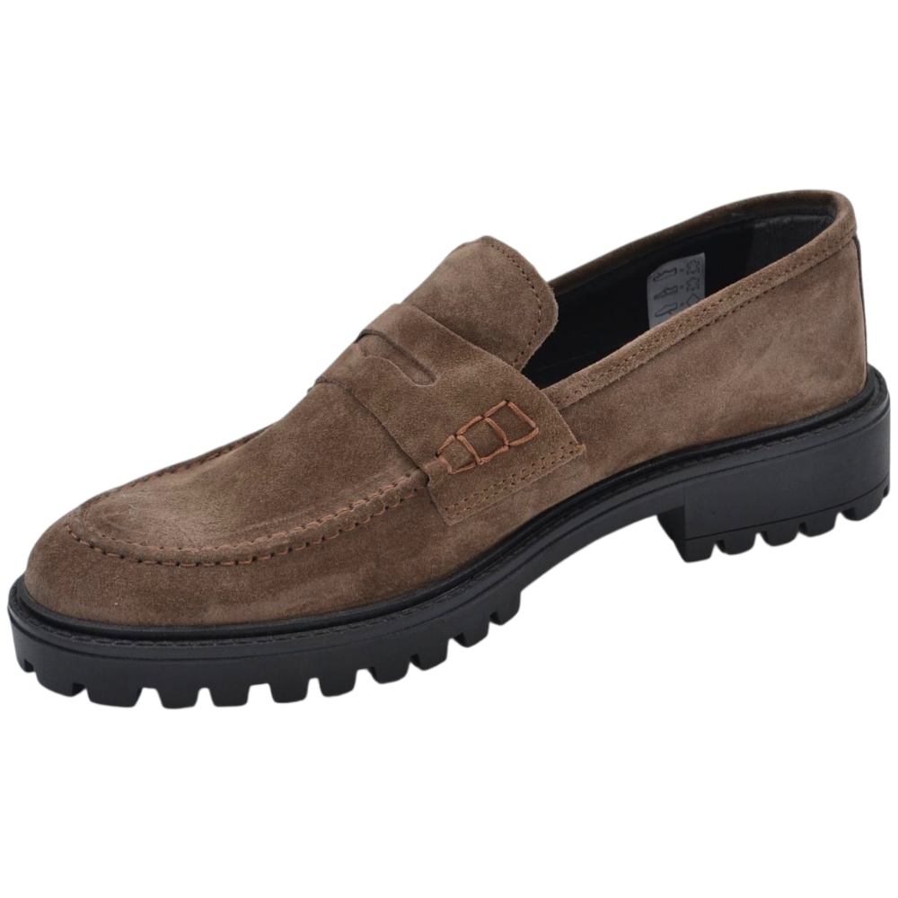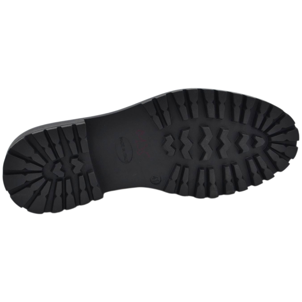 Scarpe mocassino uomo vera pelle abrasivato nero semilucido liscio con gomma alta ziglinata classico made in italy	.