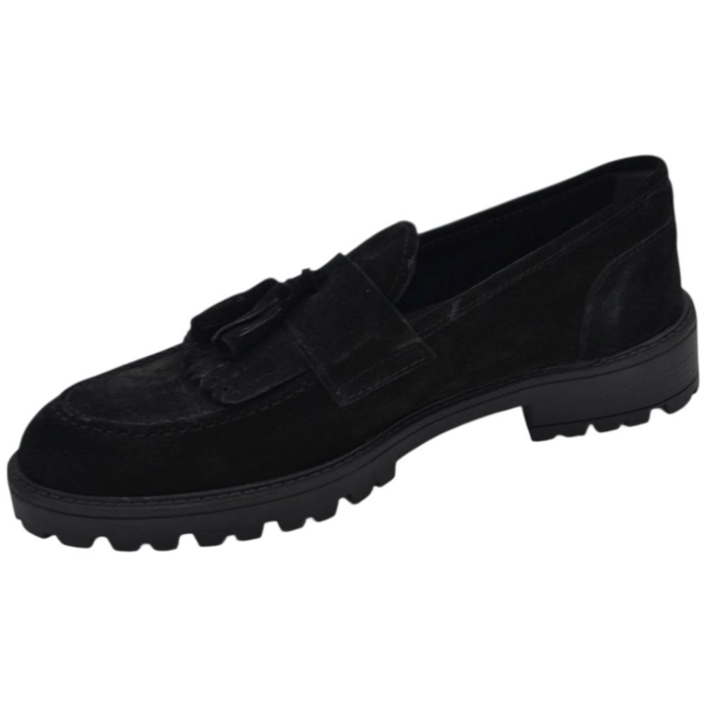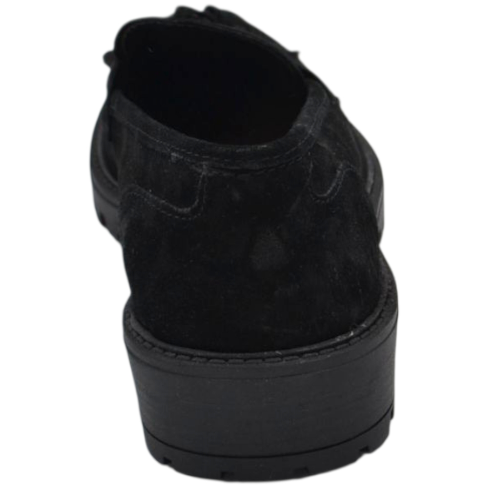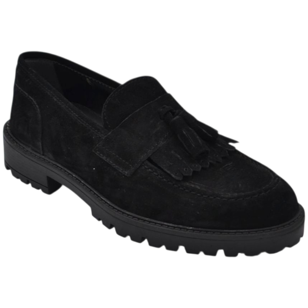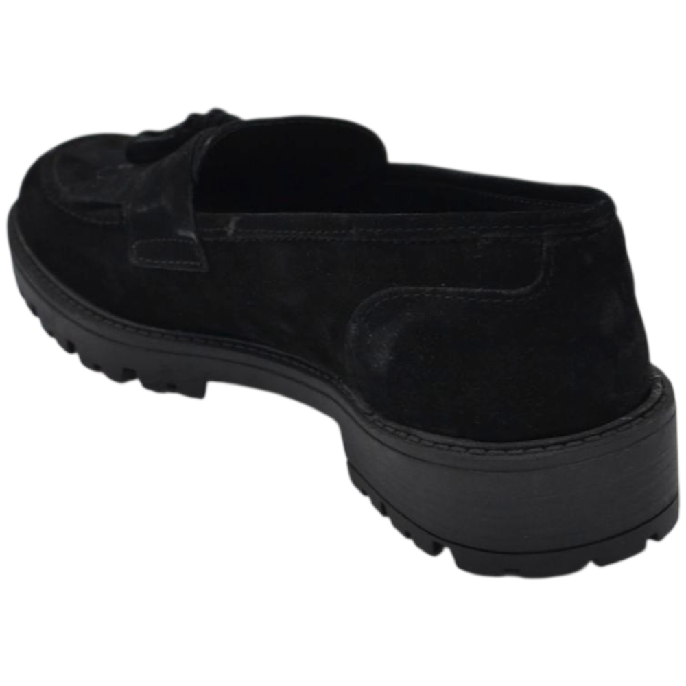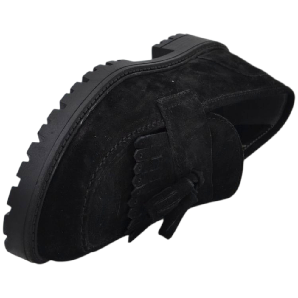 Scarpe uomo mocassino con bendina e bon bon nero in vera pelle scamosciata business fondo gomma zigrinato alto