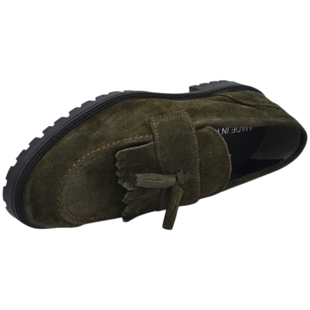 Scarpe uomo mocassino verde abrasivato cucitura fondo cuoio sottile made in italy vera pelle certificata business man.
