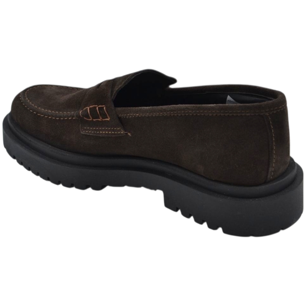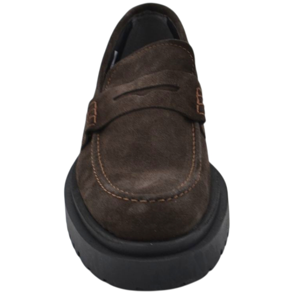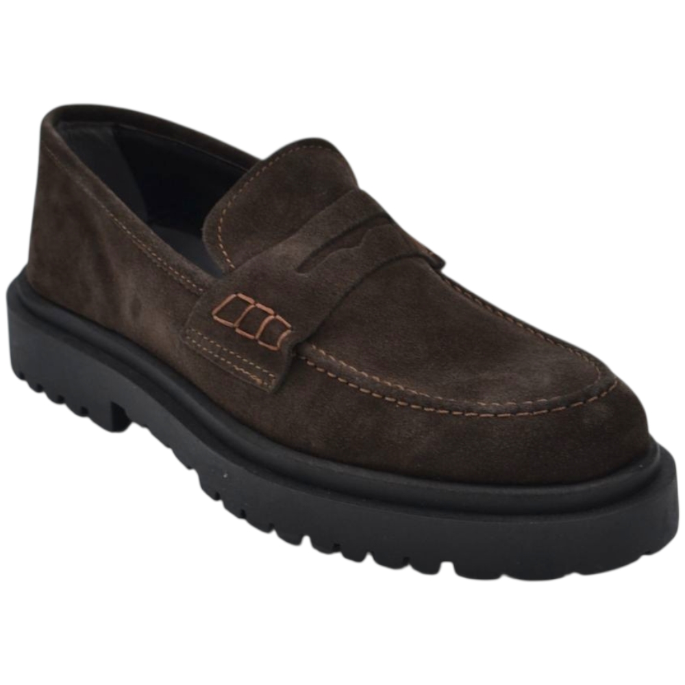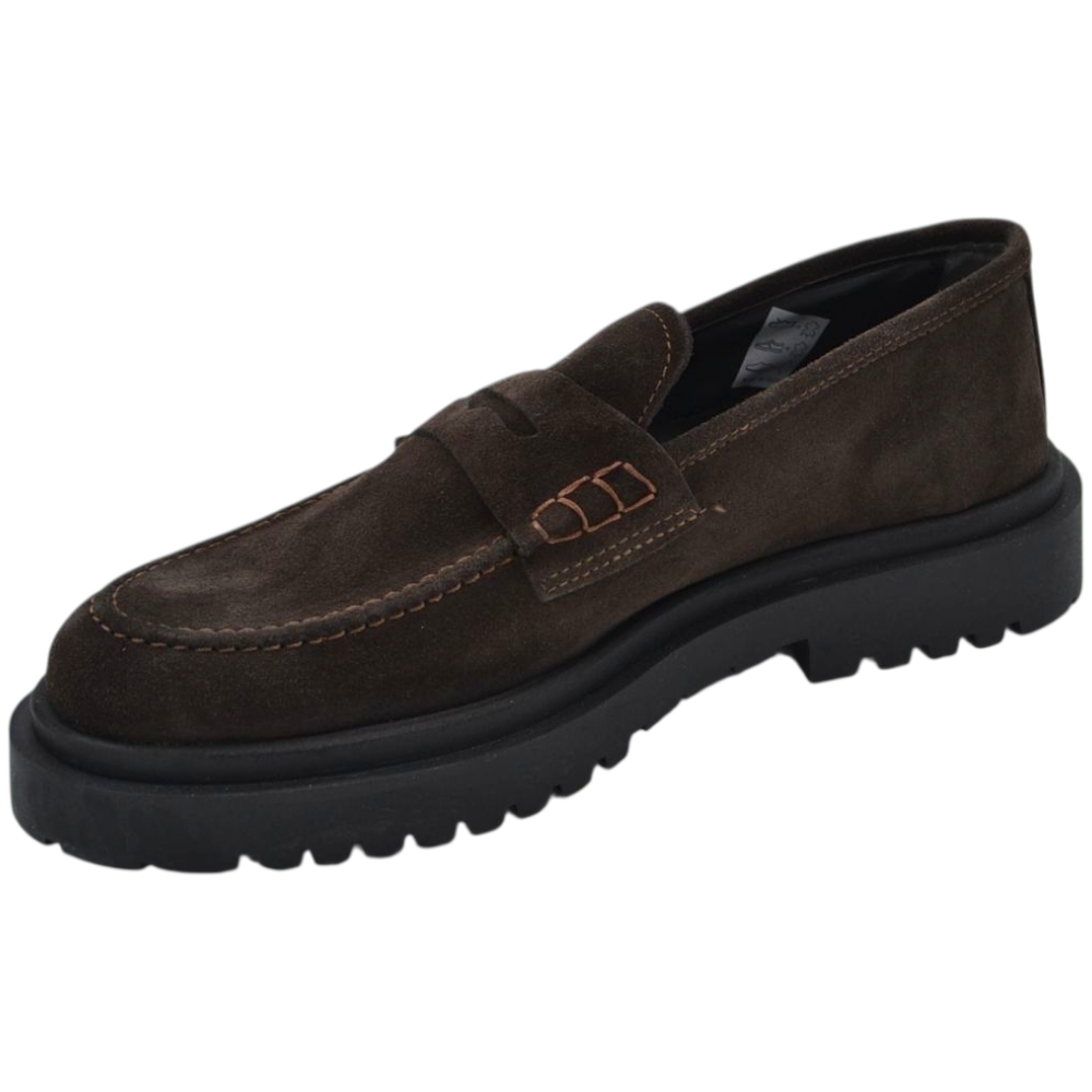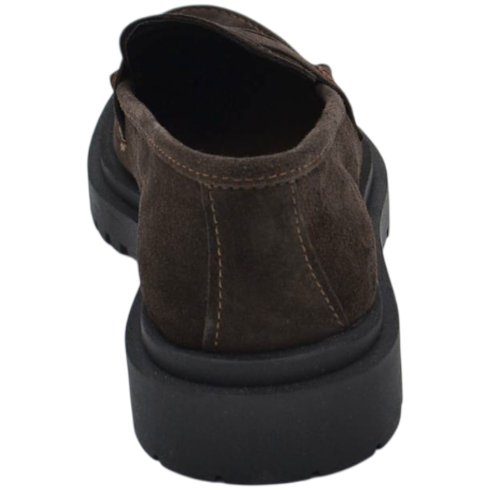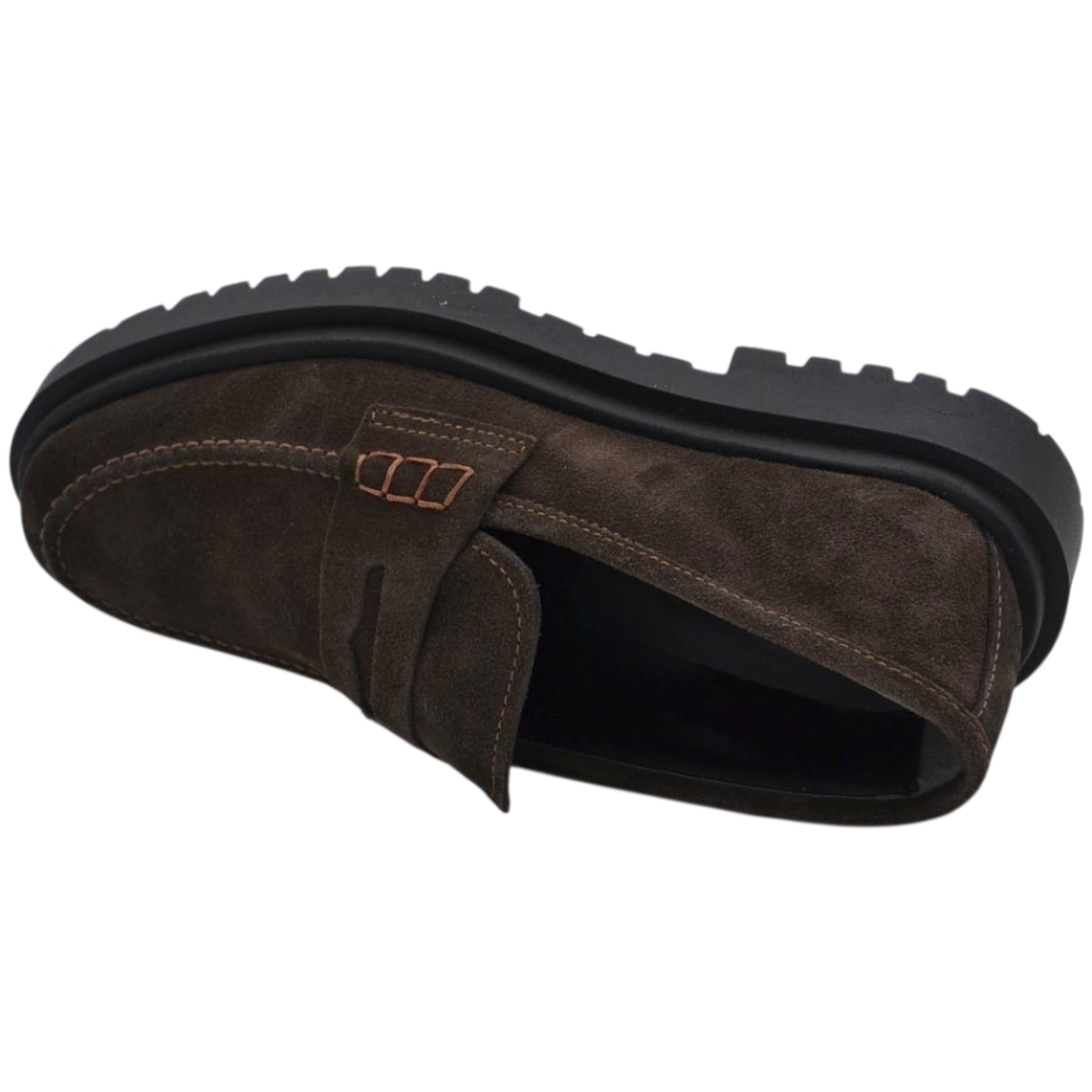 Scarpe uomo mocassino con bendina marrone in vera pelle scamosciata business fondo gomma zigrinato alto