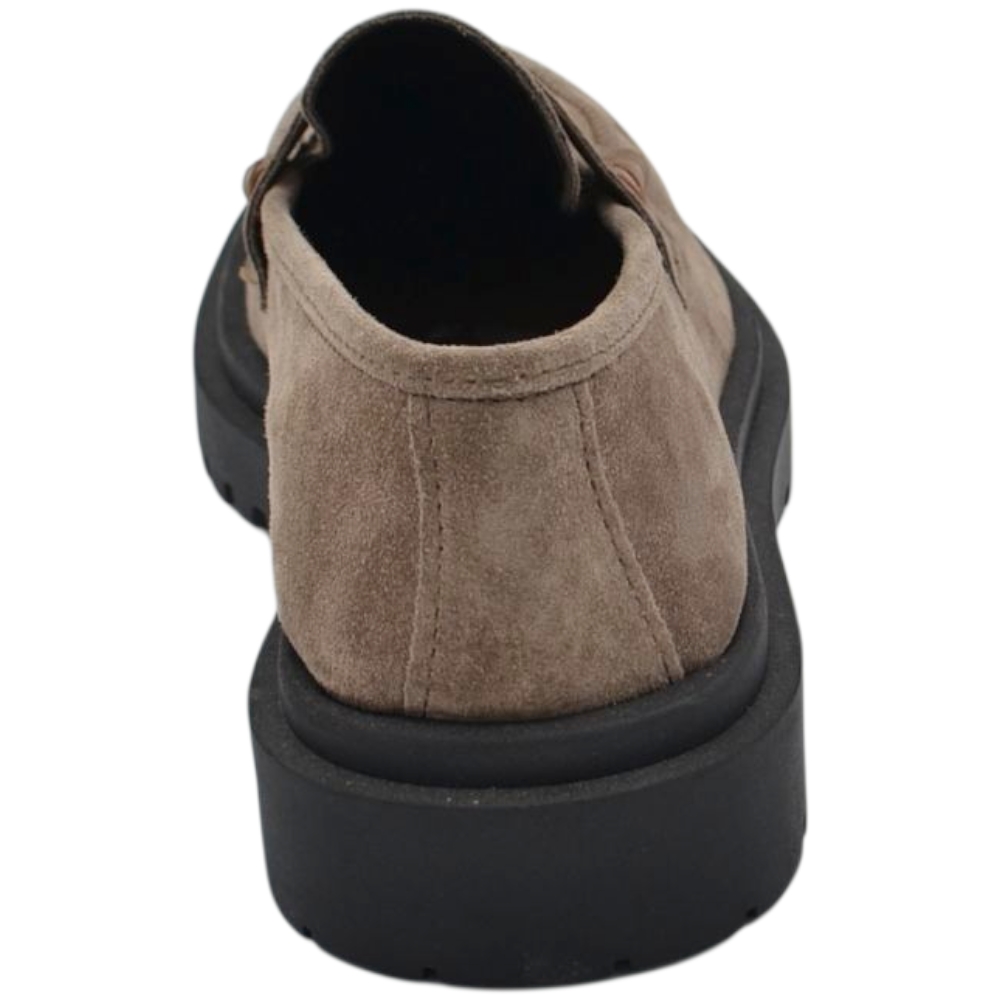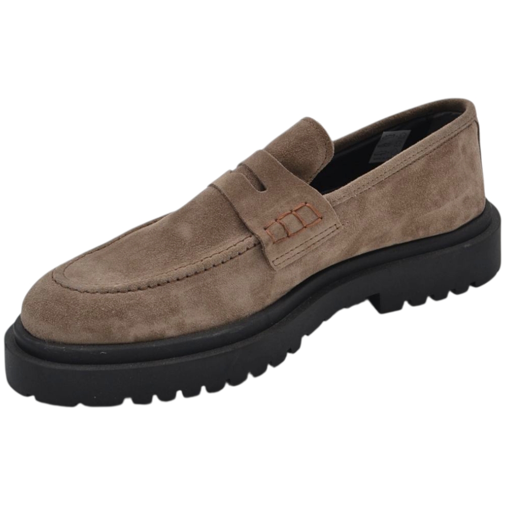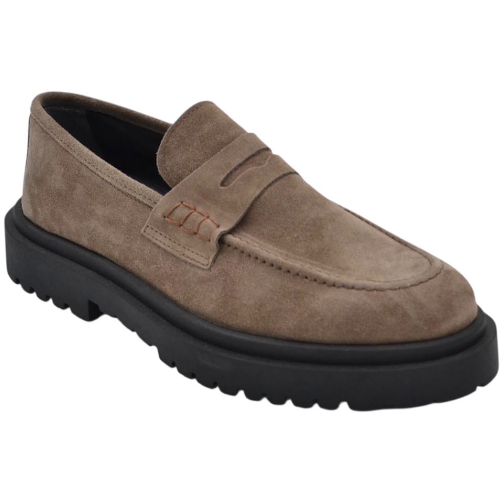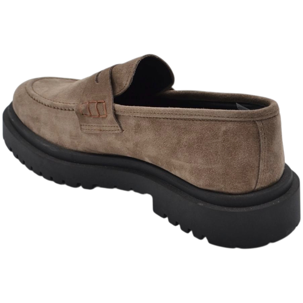 Scarpe uomo mocassino con bendina beige in vera pelle scamosciata business fondo gomma zigrinato alto