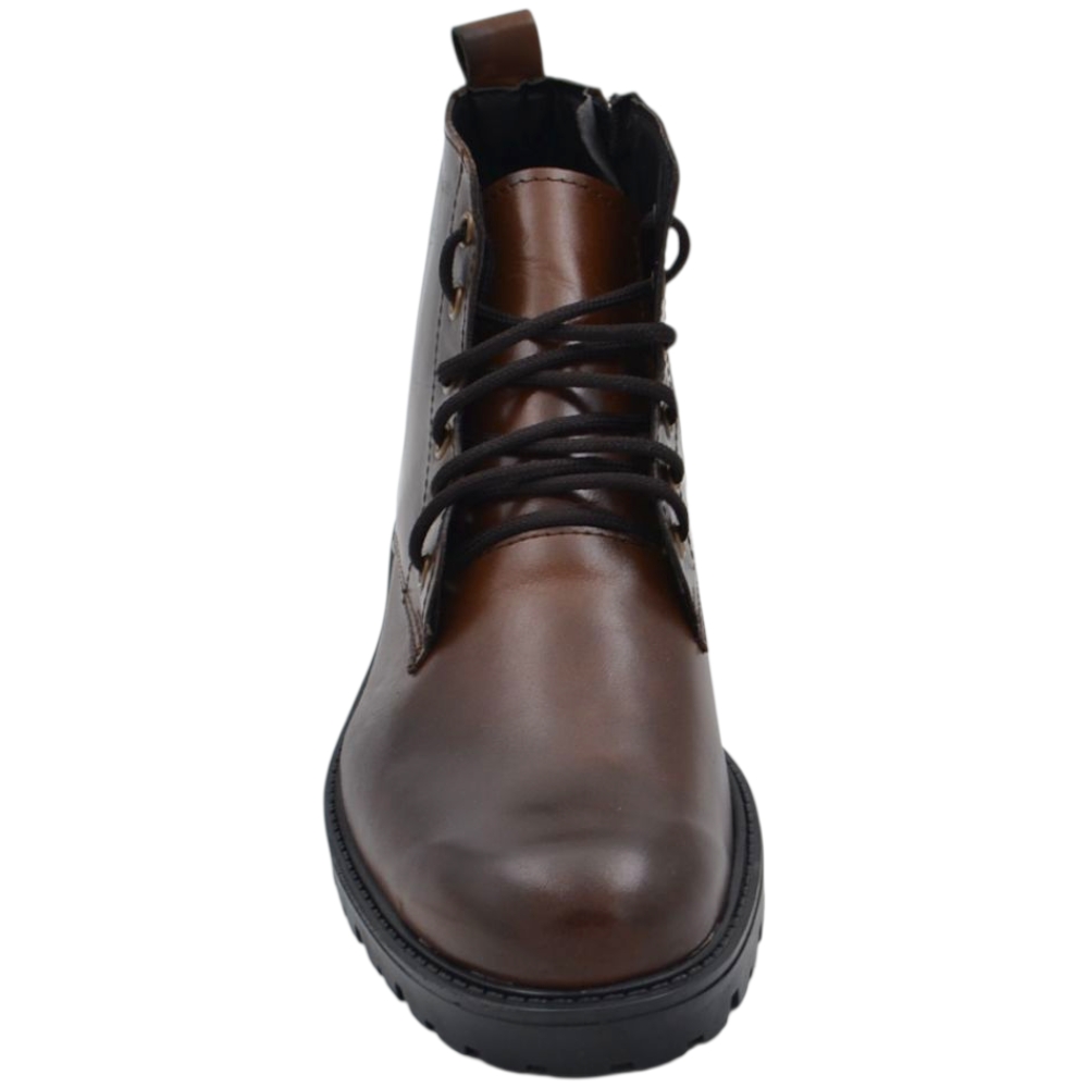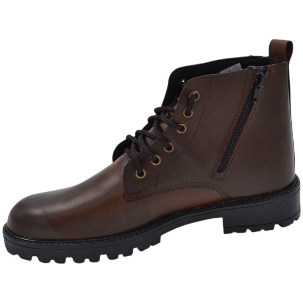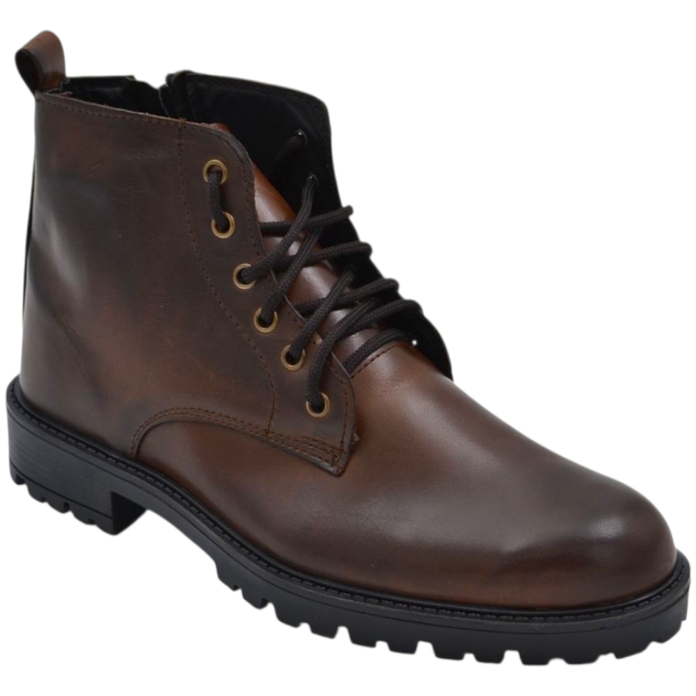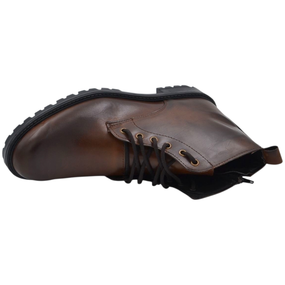 Scarpe stivale uomo anfibio lacci vera pelle effetto sfumato cuoio suola gomma alta 2,5cm zip comfort made in italy.