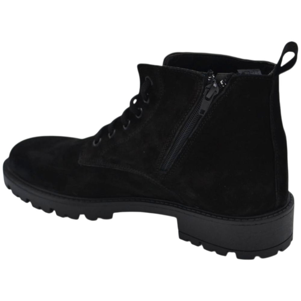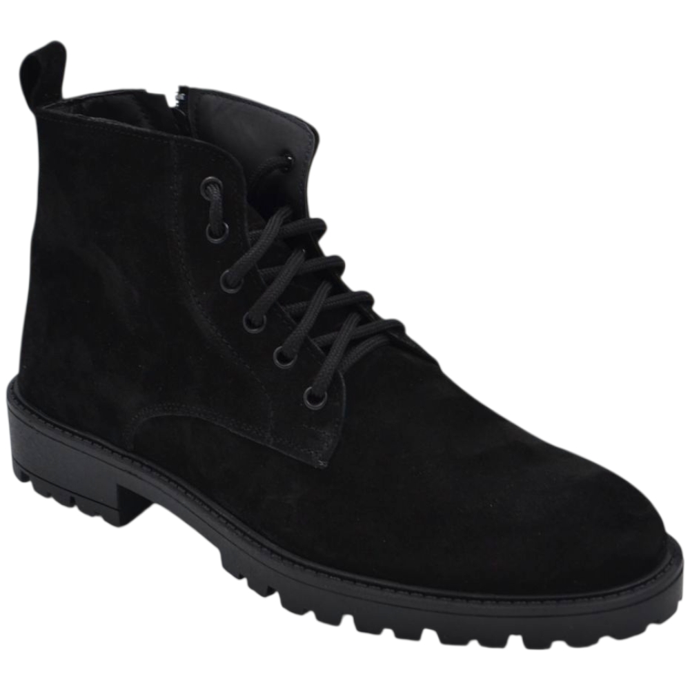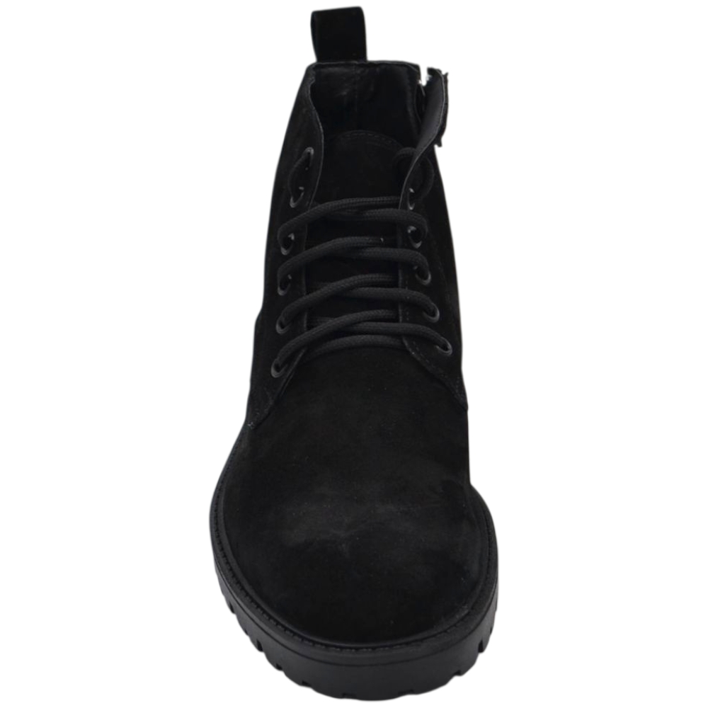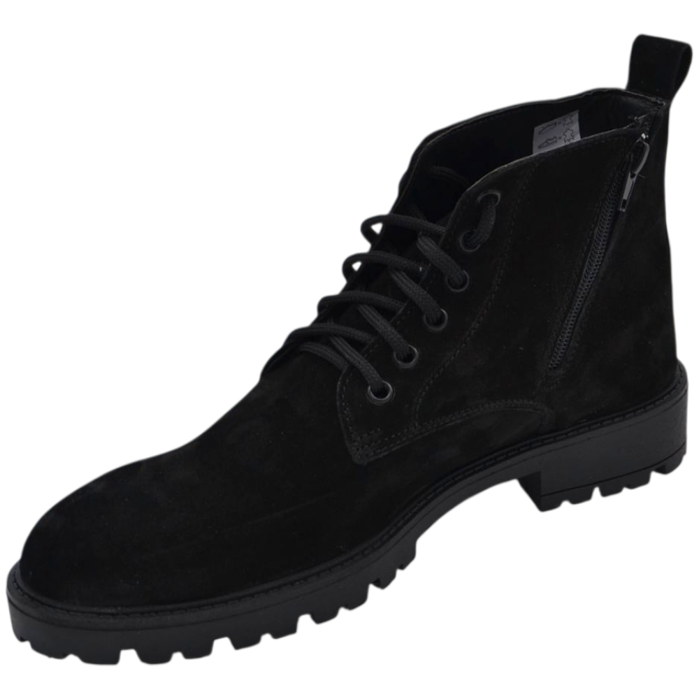 Scarpe stivale uomo anfibio lacci vera pelle camoscio nera suola gomma zigrinata 2,5 cm zip comfort basic made in italy