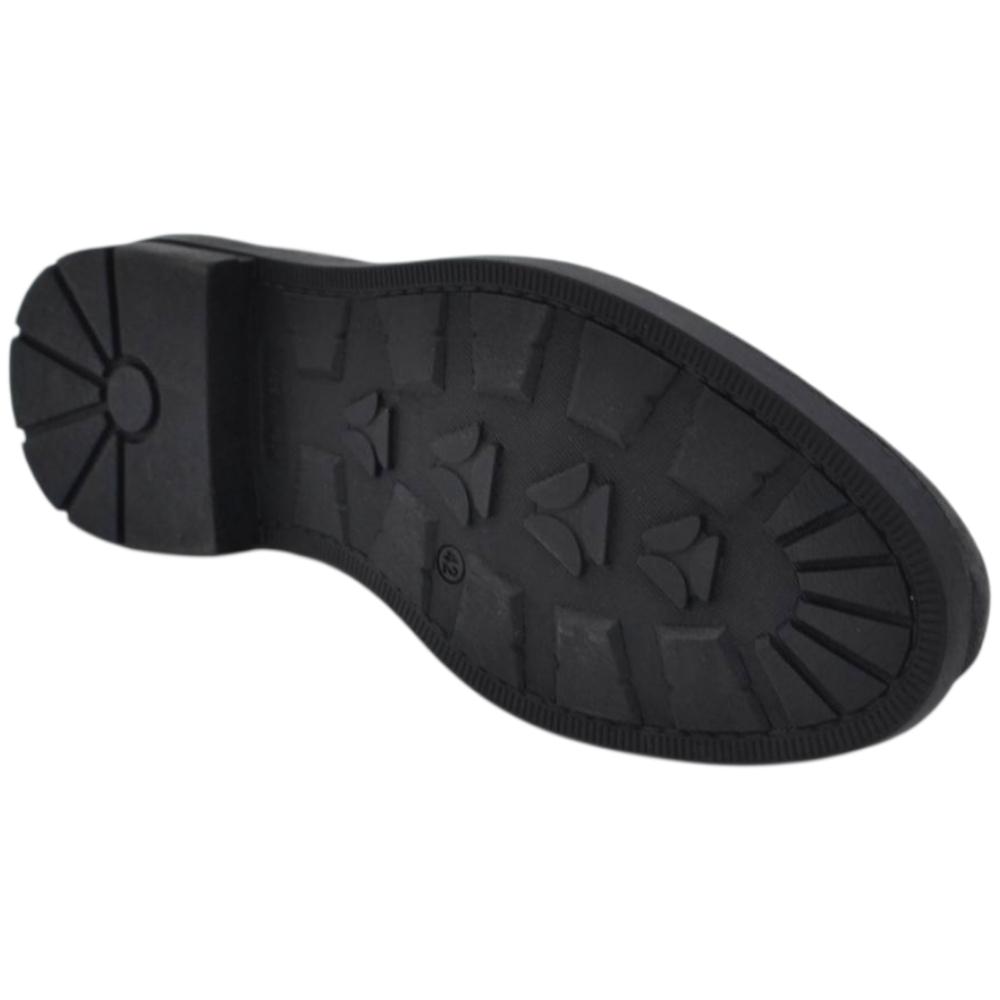 Scarpe uomo mocassino con bendina e bon bon nero in vera pelle spazzolata business fondo gomma zigrinato alto.