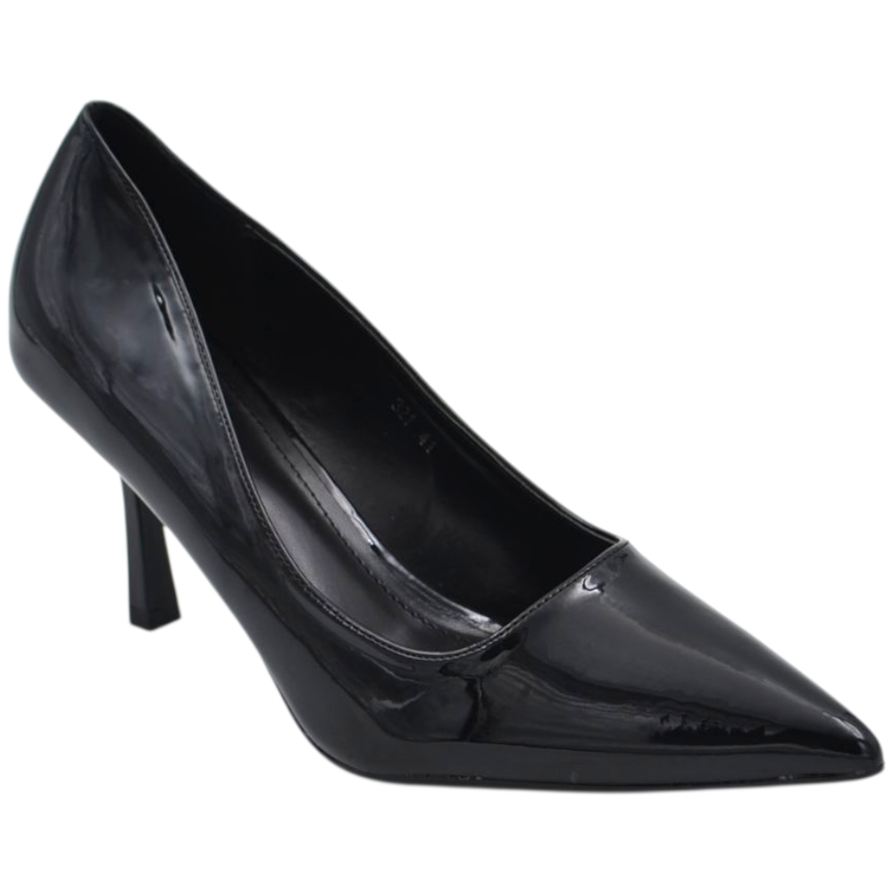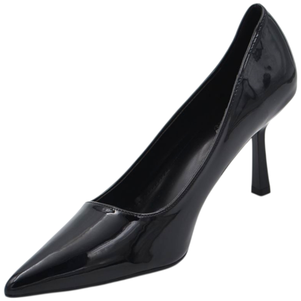 Decollete donna a punta in vernice lucida nero linea basic tacco a spillo 10