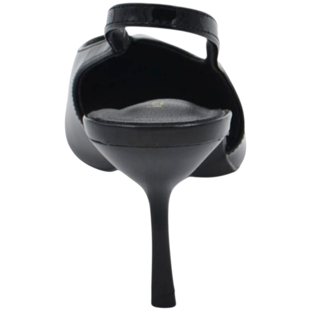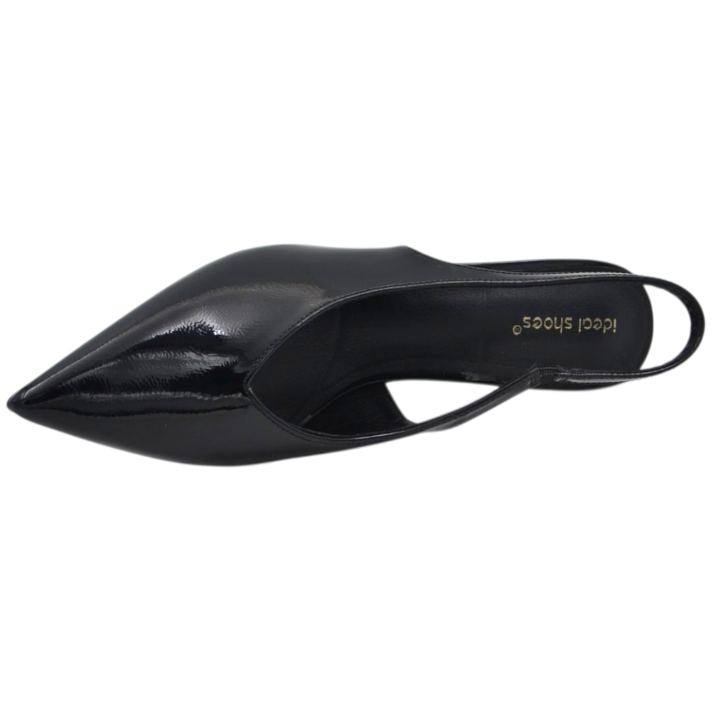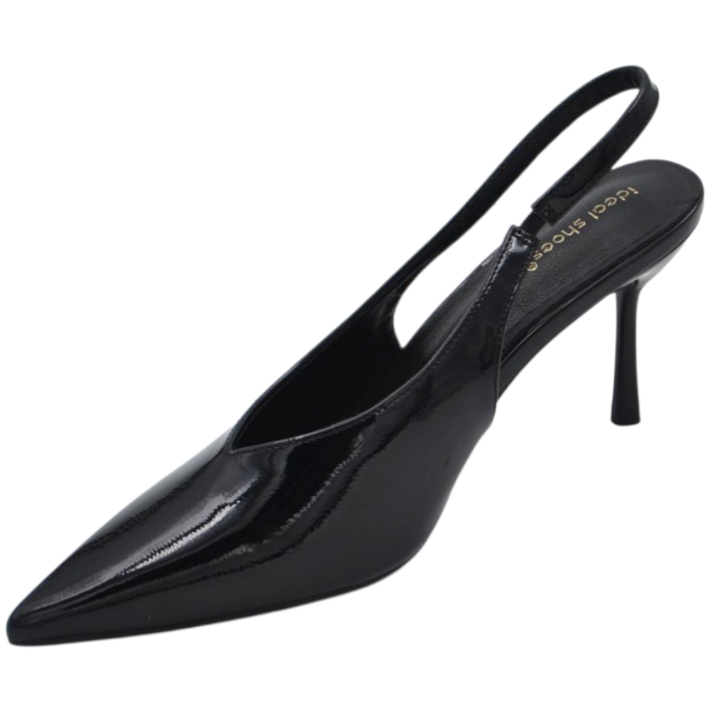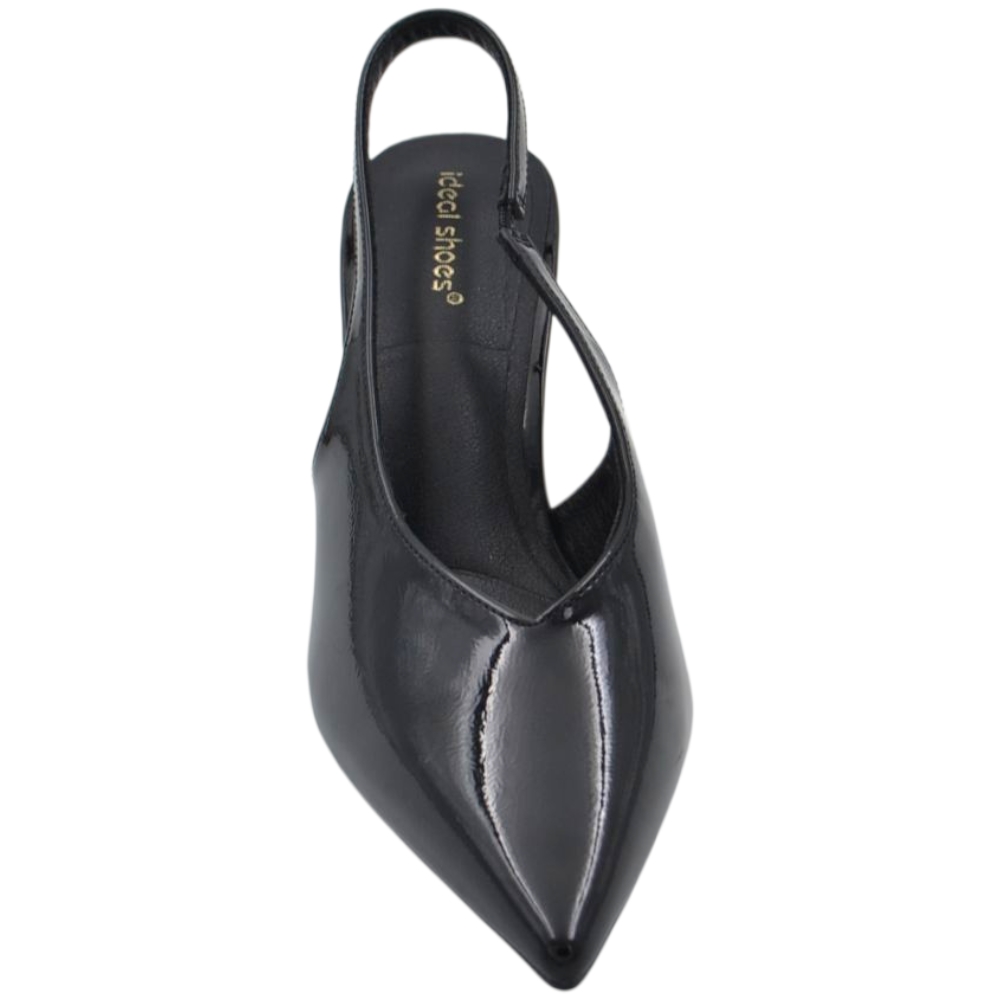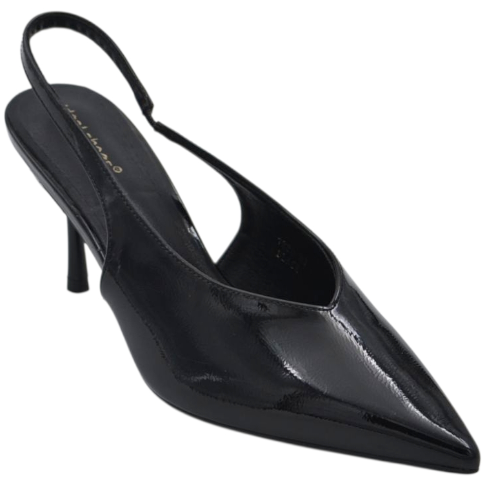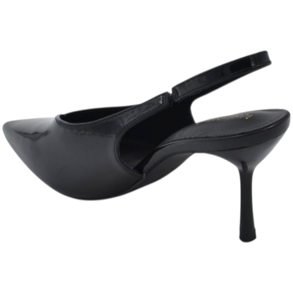 Decollete donna a punta nero in vernice lucida slingback con scollo a V e tacco a spillo 10 cm
