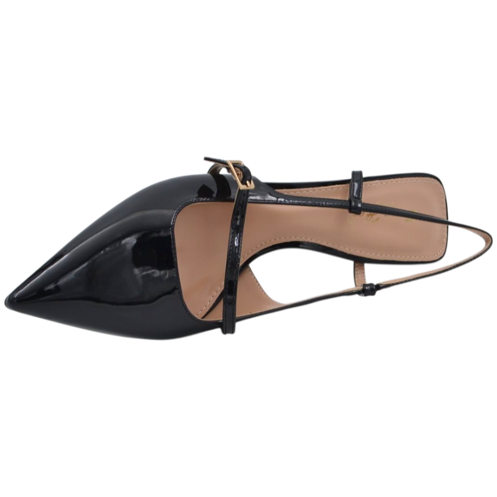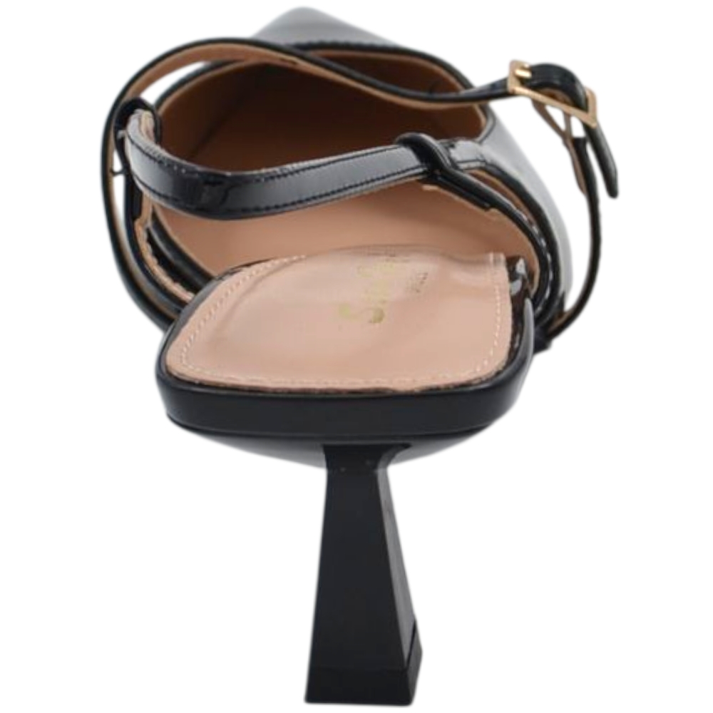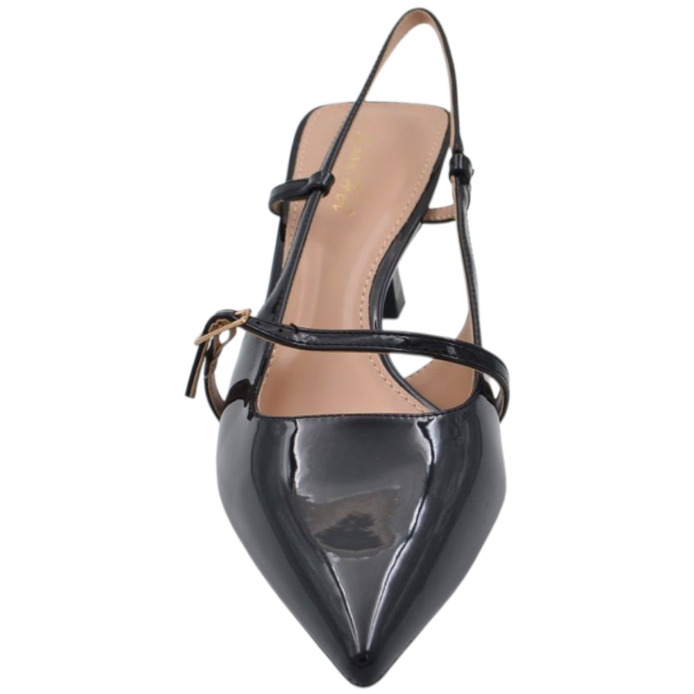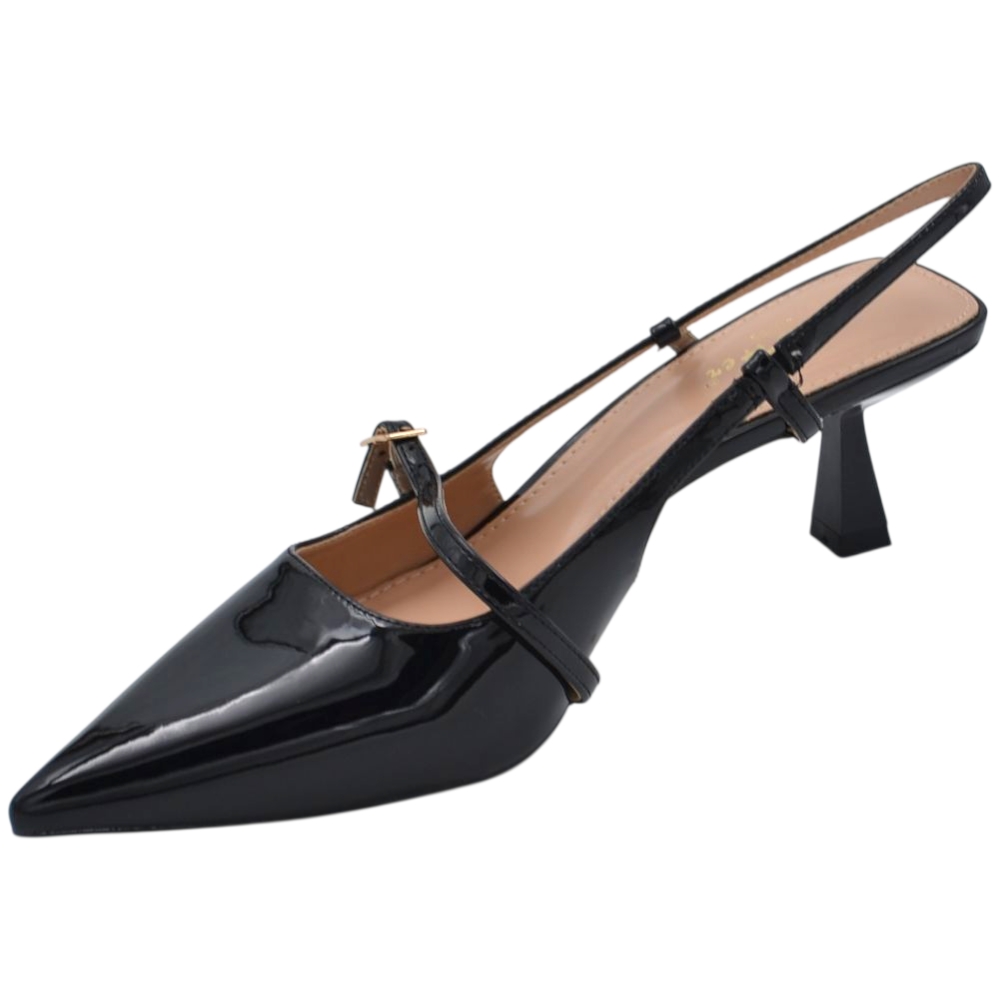 Scarpe donna decollete slingback nero con microperle e brillantini cinturino regolabile alla caviglia tacco doppio 6cm .