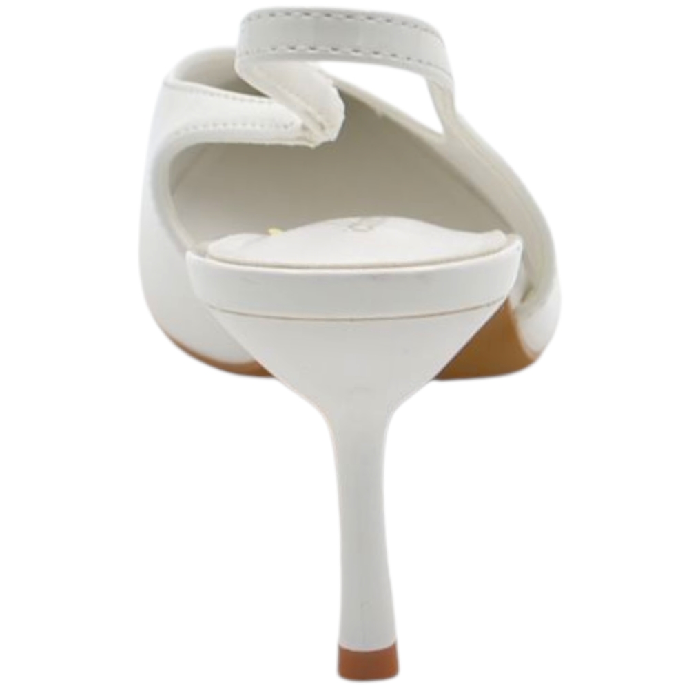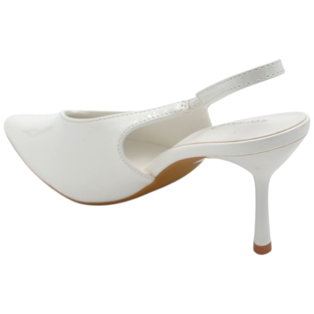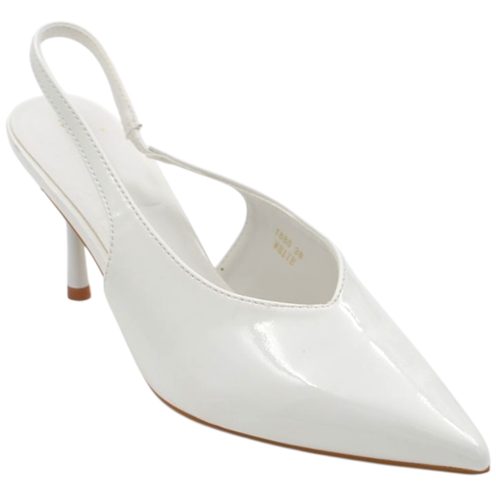 Decollete donna a punta bianco in vernice lucida slingback con scollo a V e tacco a spillo 10 cm