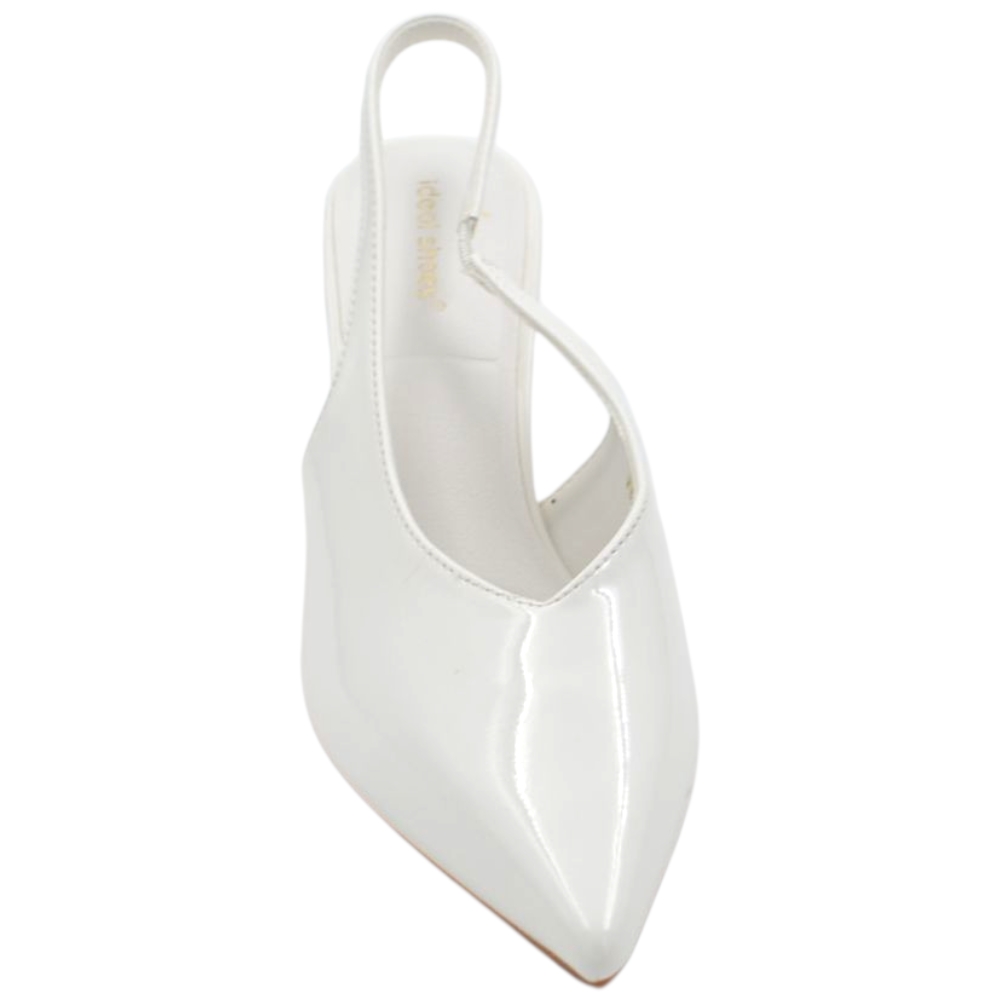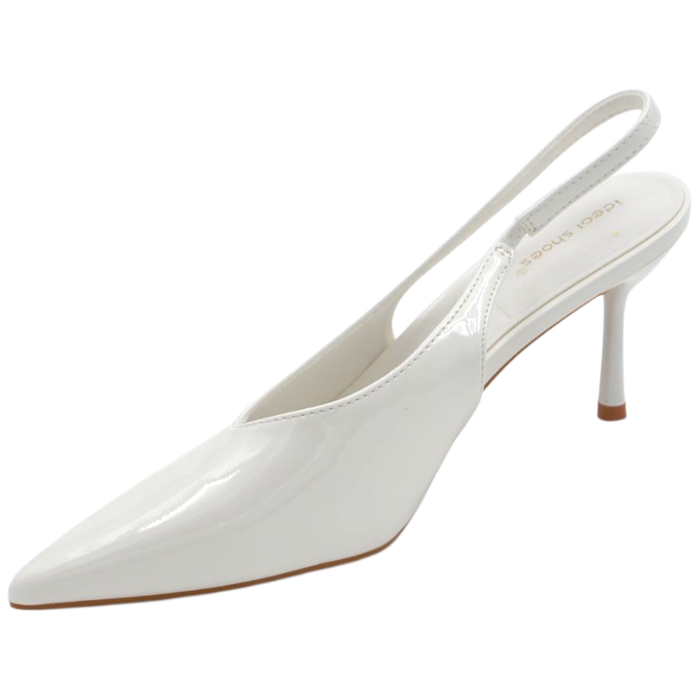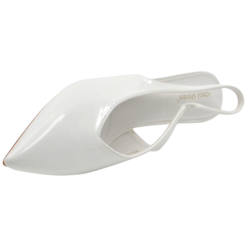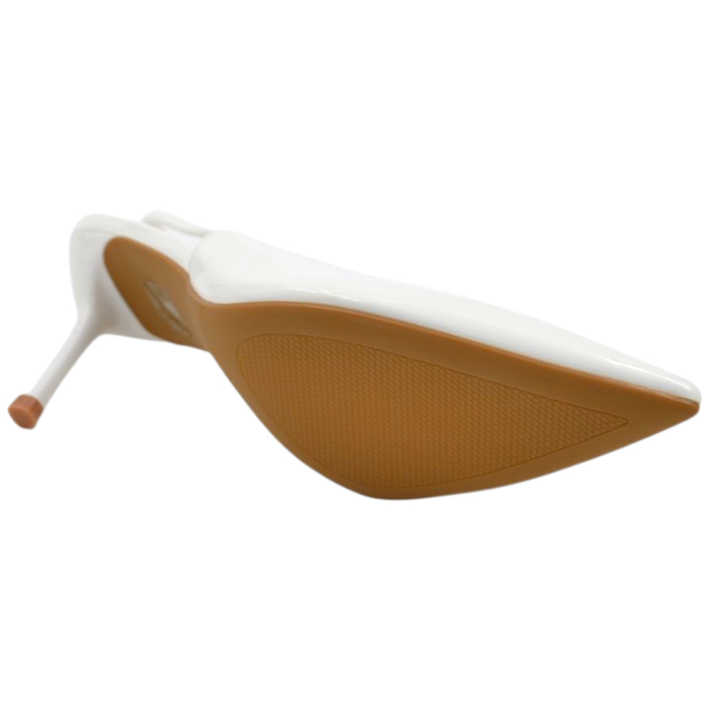 Decollete donna a punta bianco in vernice lucida slingback con scollo a V e tacco a spillo 10 cm