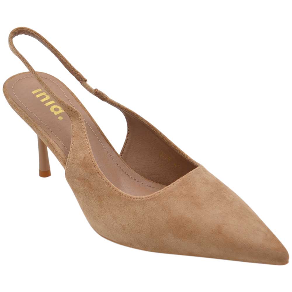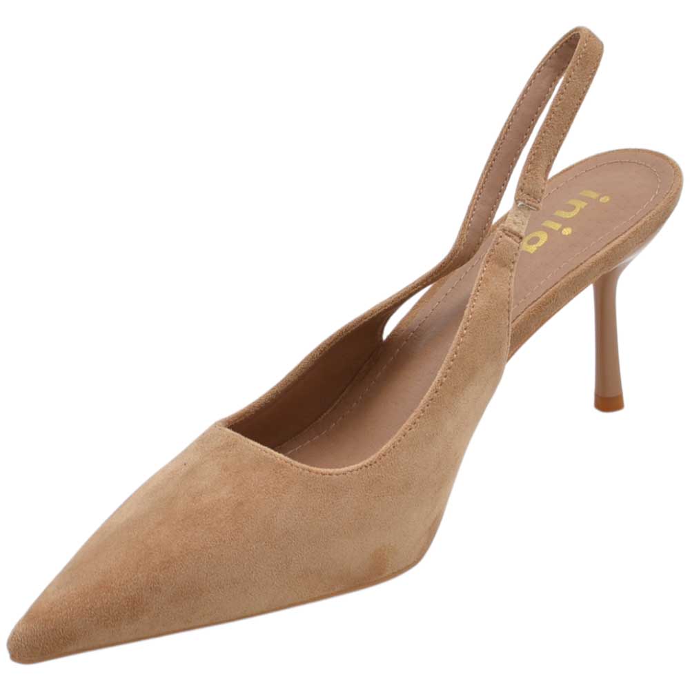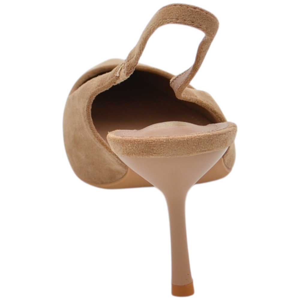 Decollete donna a punta beige camoscio slingback con cinturino tacco a spillo 10 cm