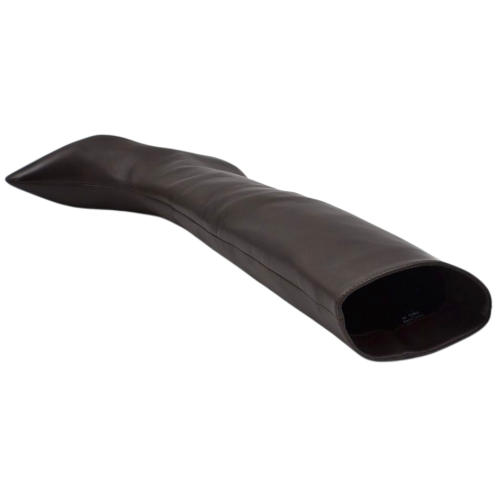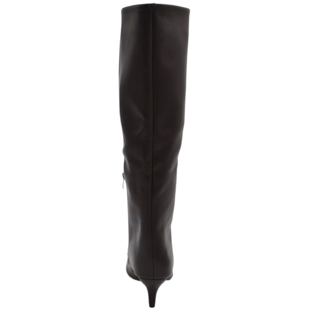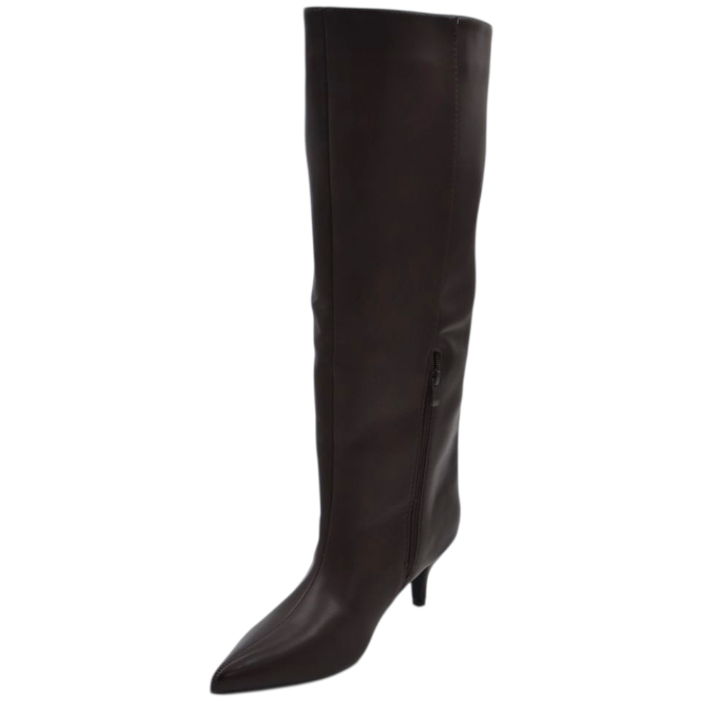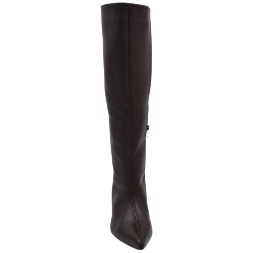 Stivali alti donna al ginocchio in pelle marrone a punta tacco a spillo 4 cm zip lunga aderente moda linea Basic