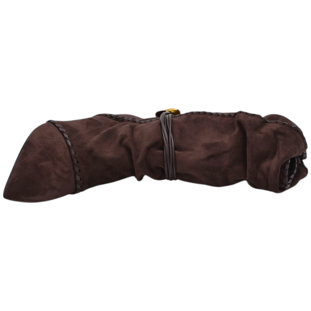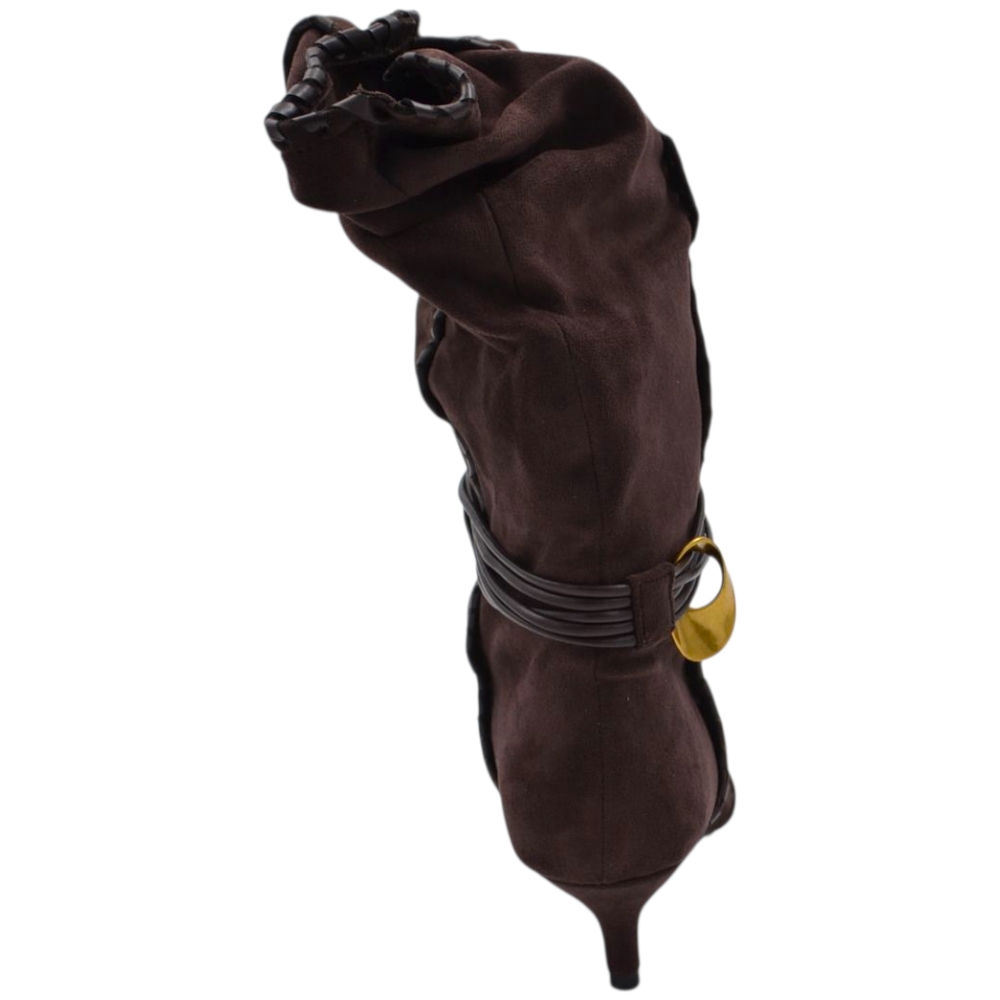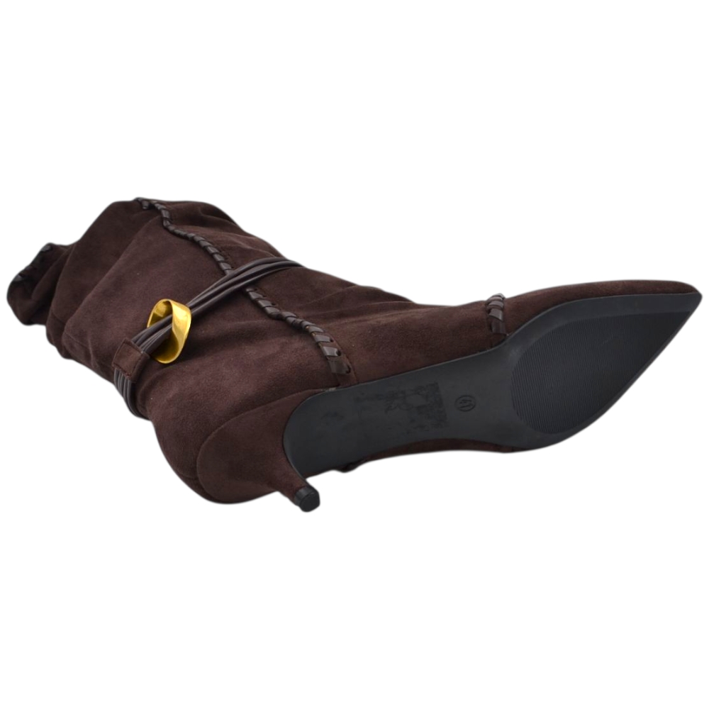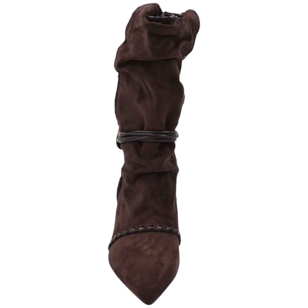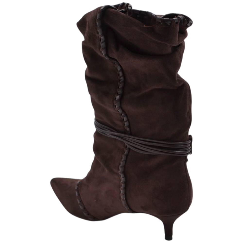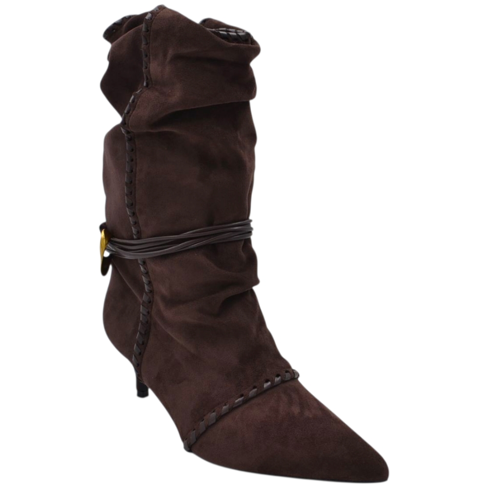Stivaletto tronchetto donna a punta arricciato camoscio marrone con coulisse oro removibile tacco kitten 3 cm