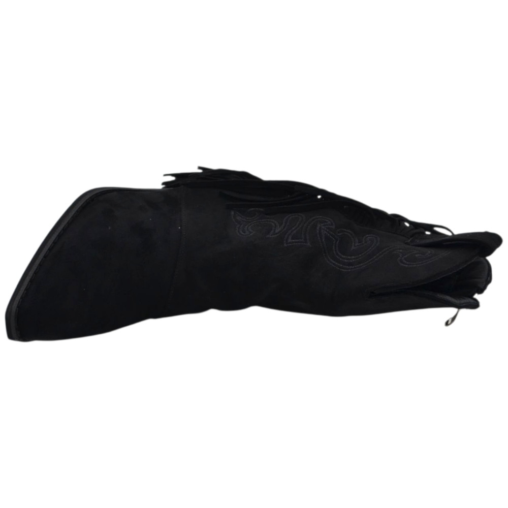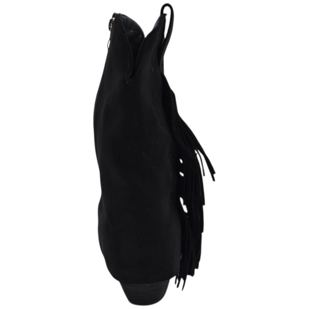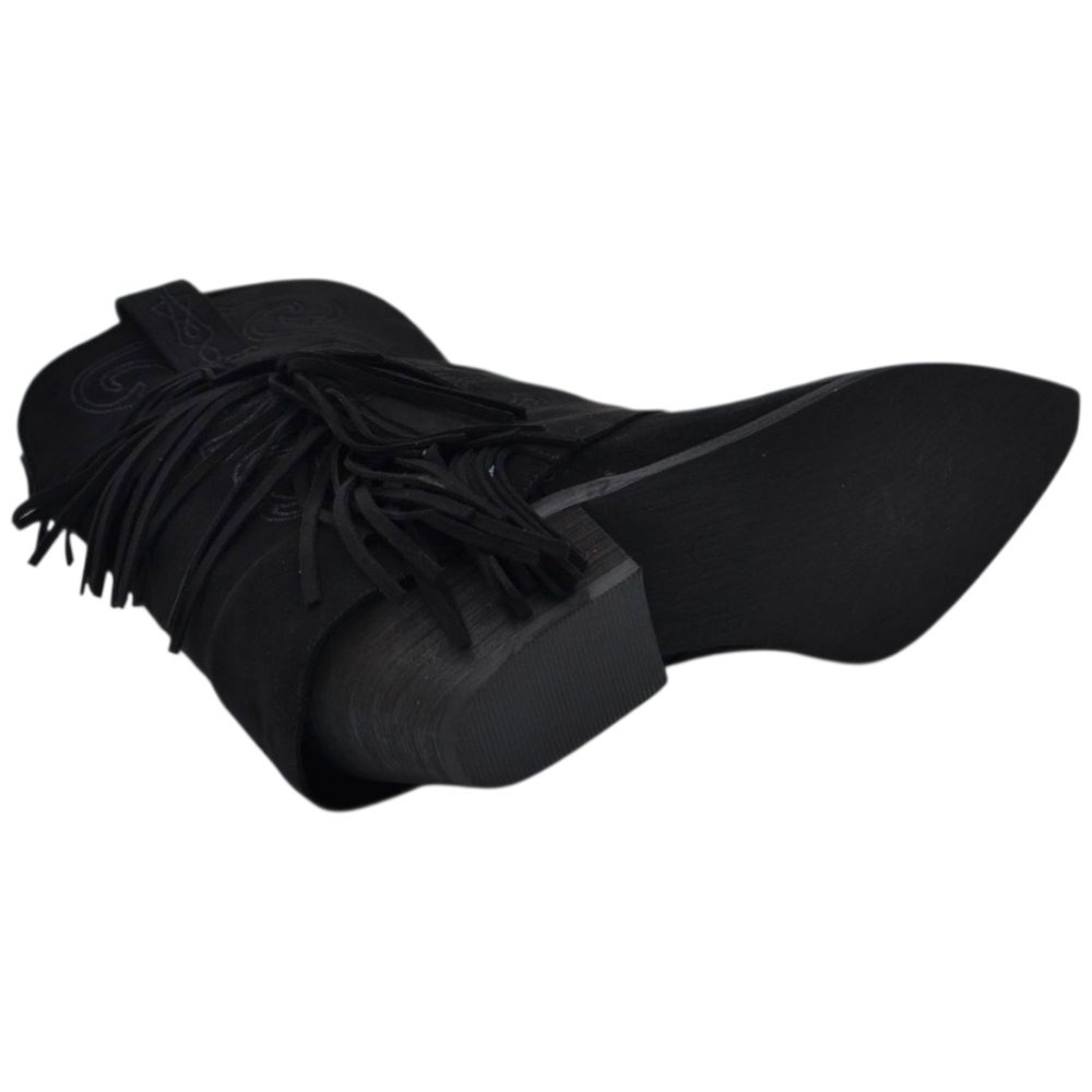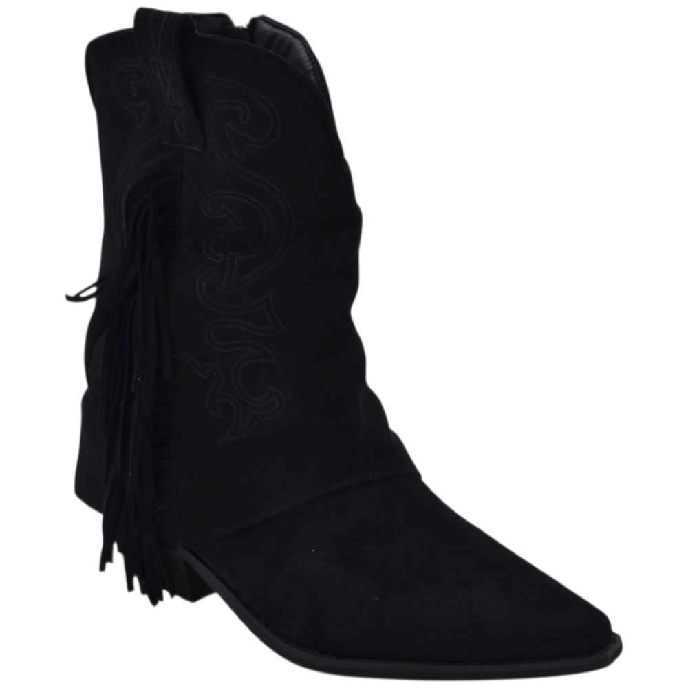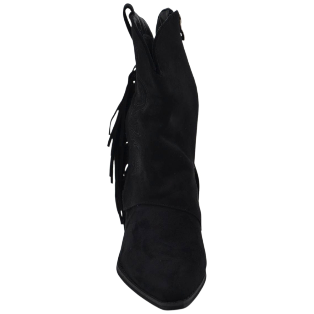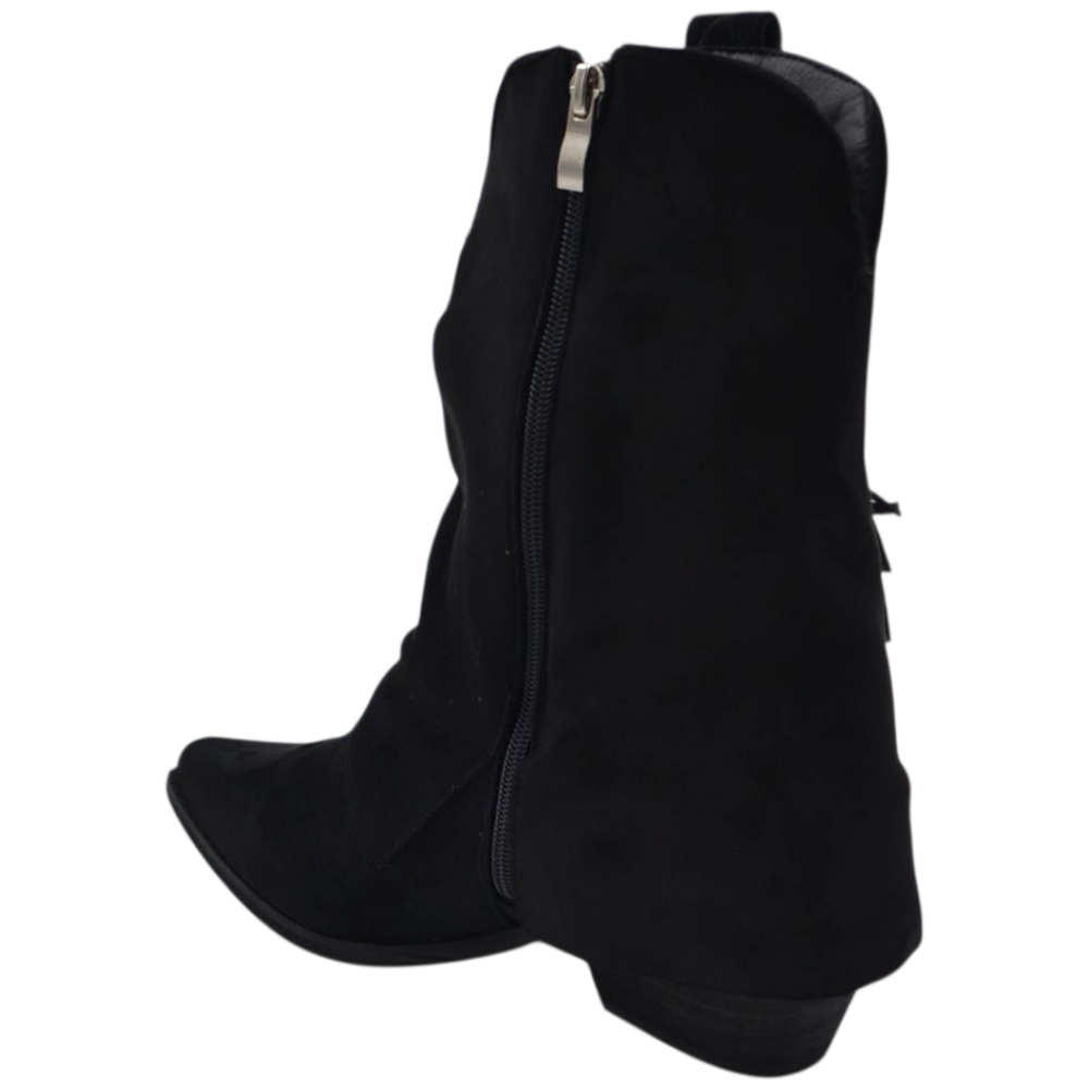 Stivaletti donna tronchetti shark a punta in camoscio nero risvolto con frange cuciture tacco western 5 cm