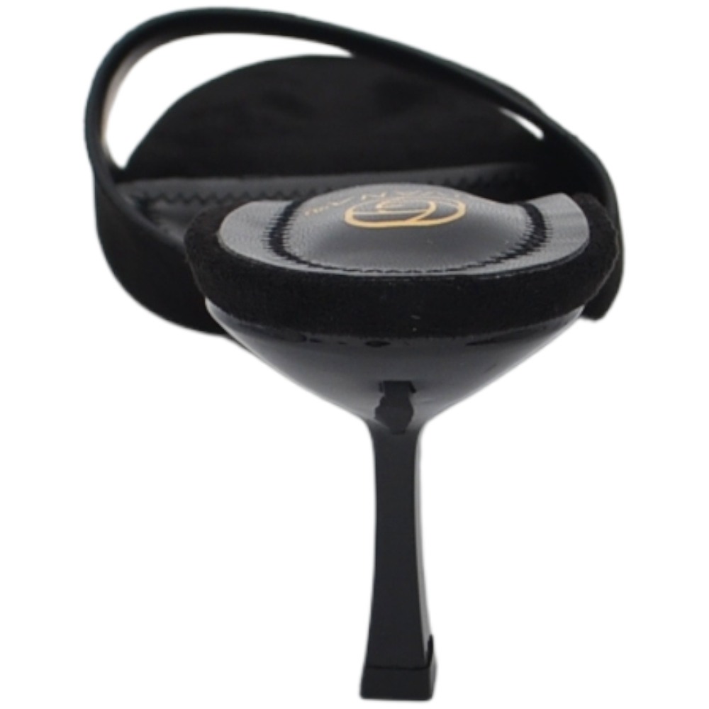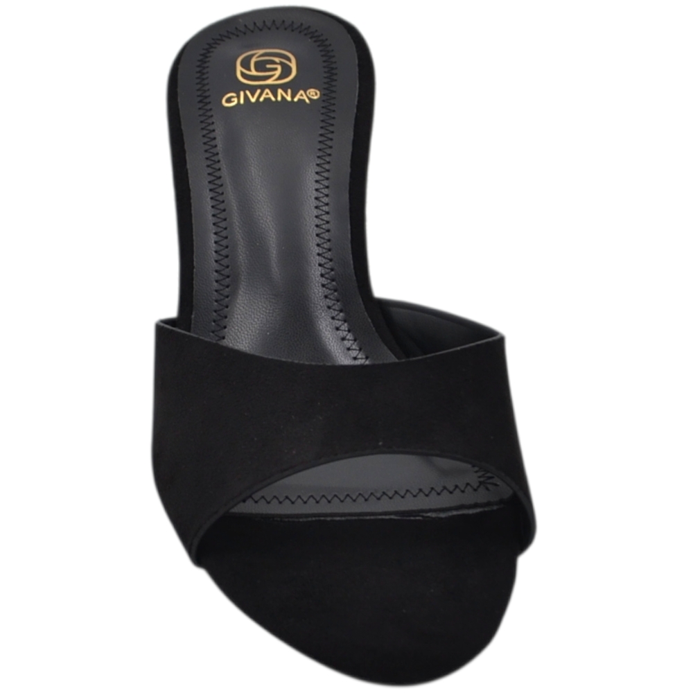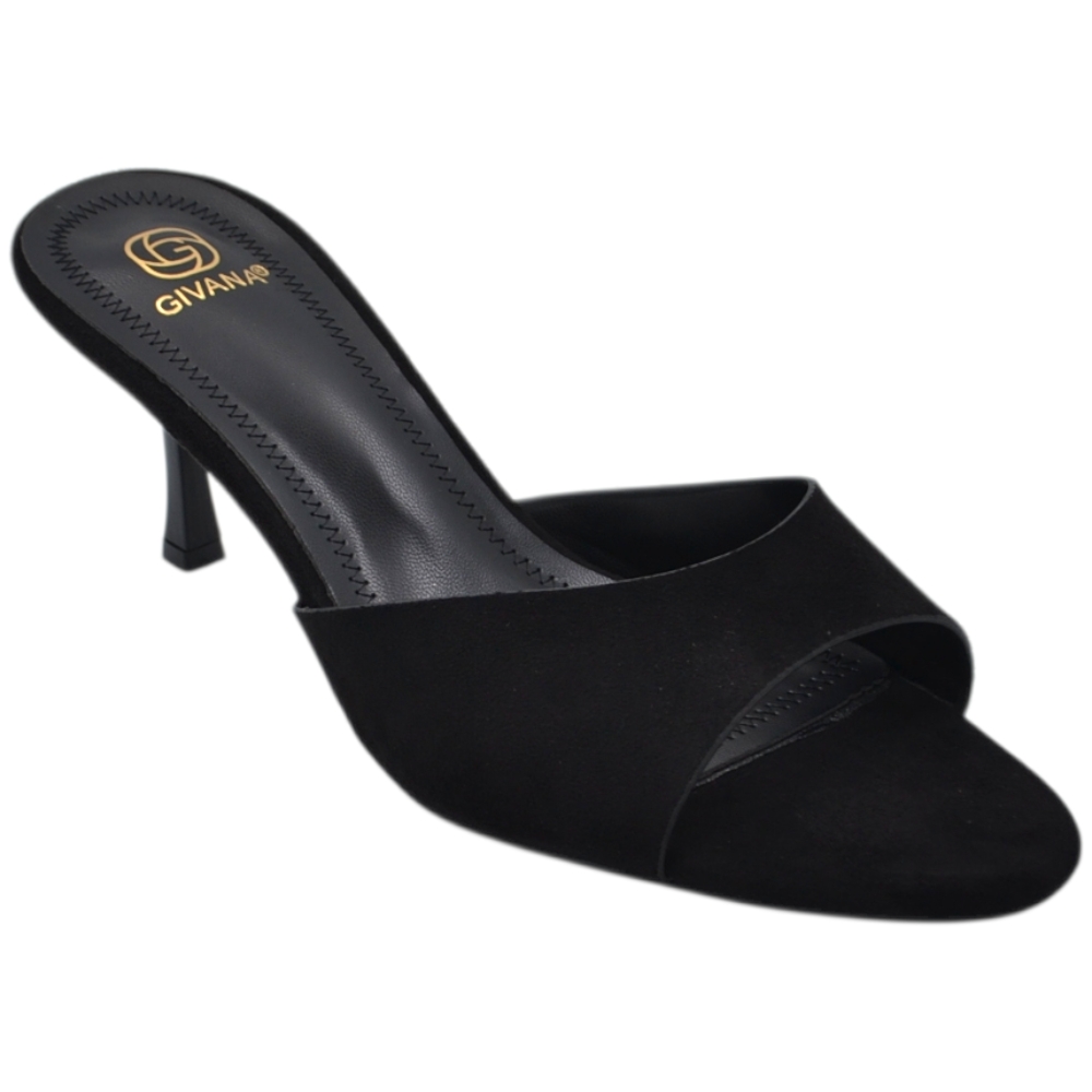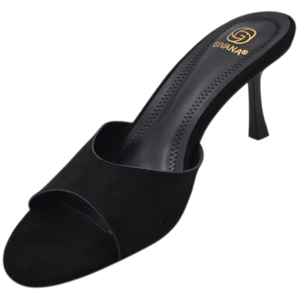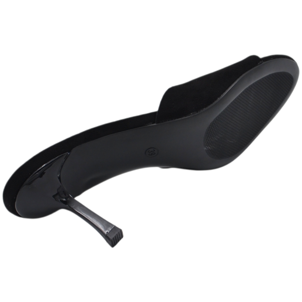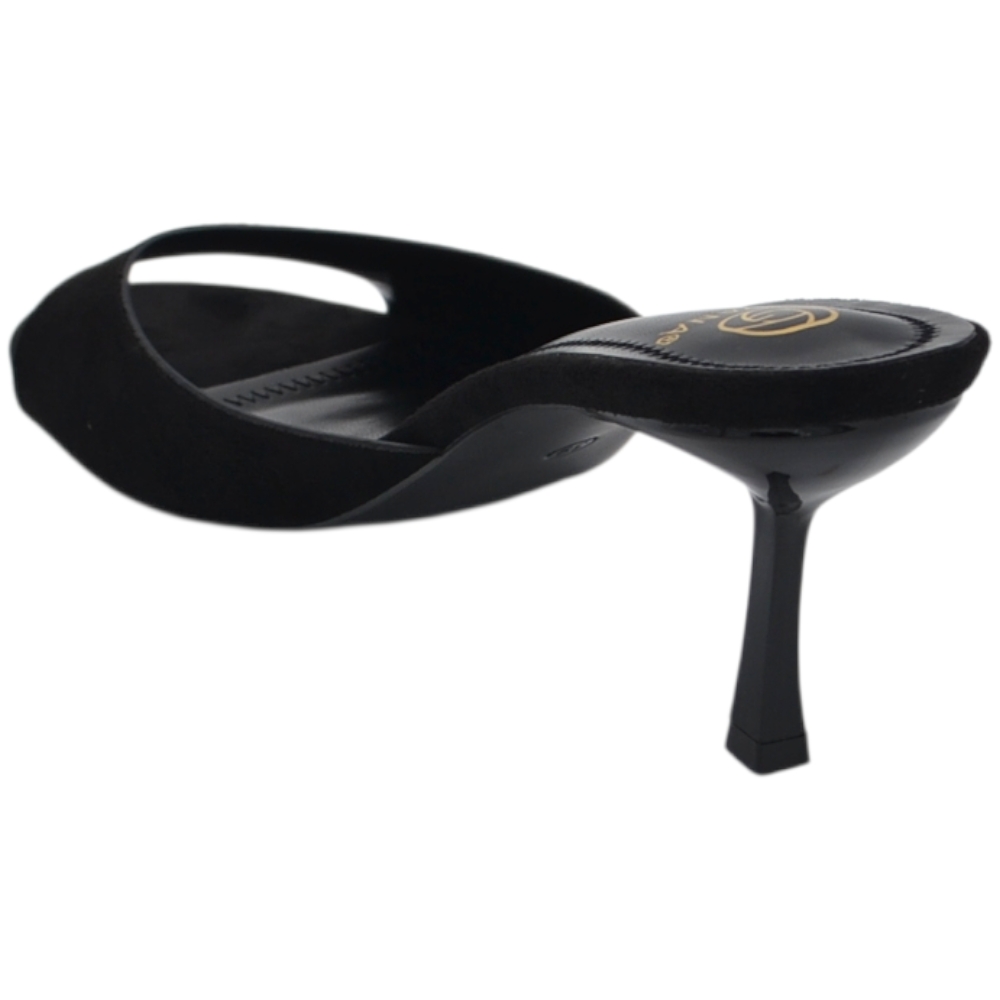 Sandalo tacco donna nero camoscio con fascia larga avvolgente tacco sottile 7 cm open toe