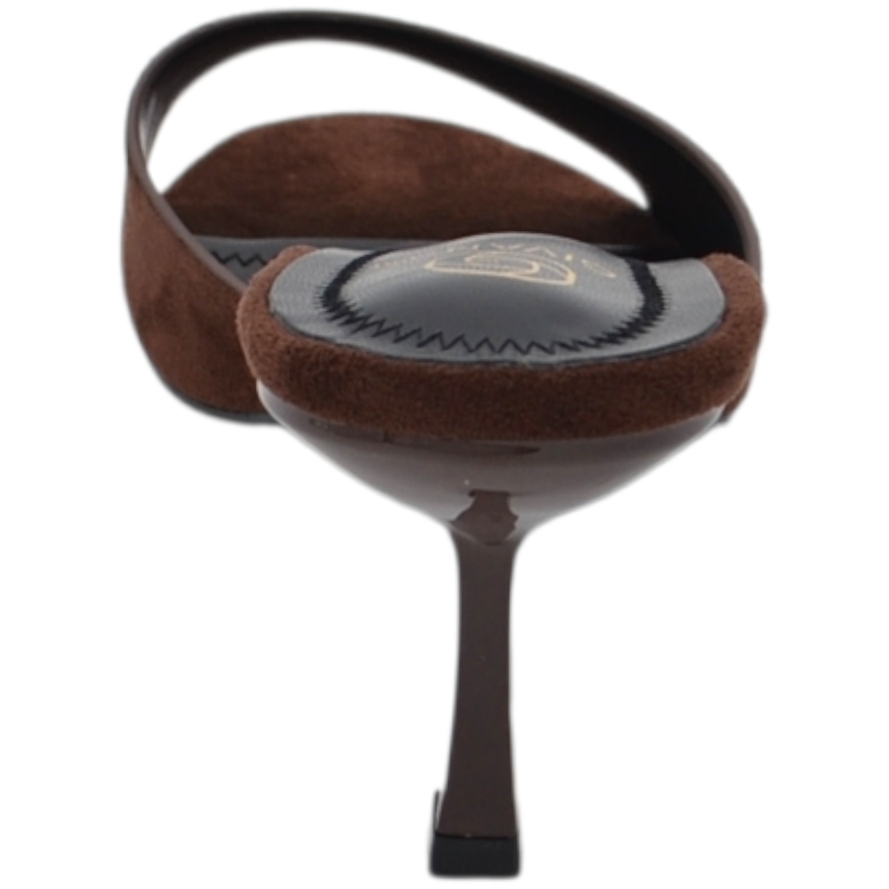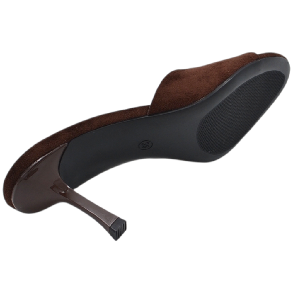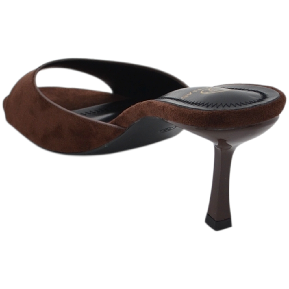 Sandalo tacco donna marrone camoscio con fascia larga avvolgente tacco sottile 7 cm open toe