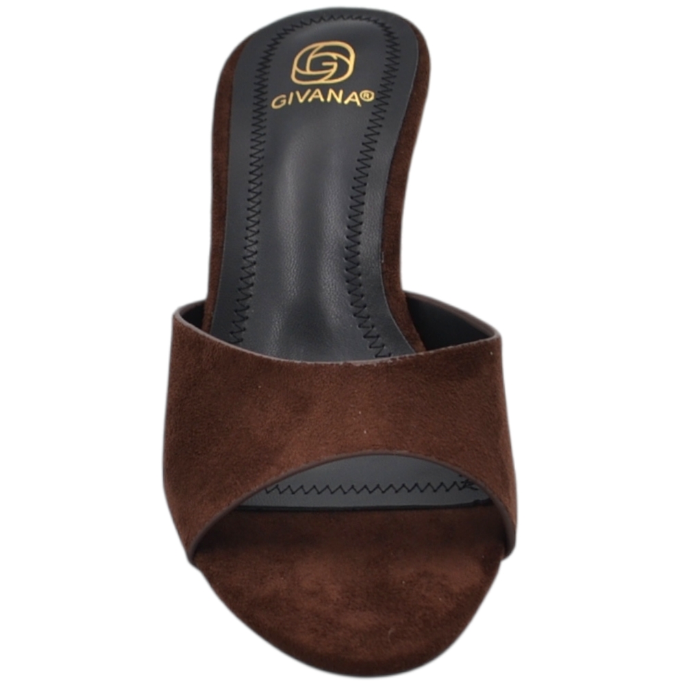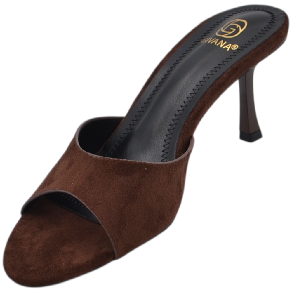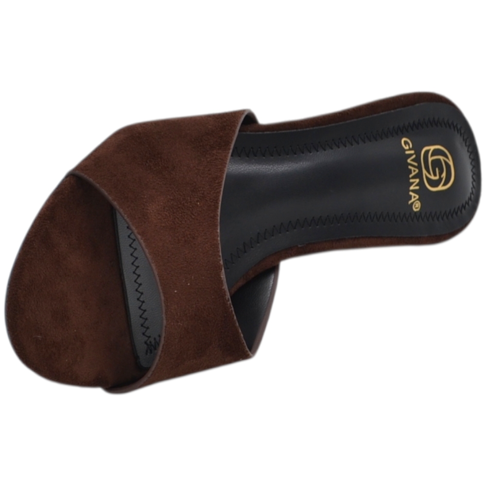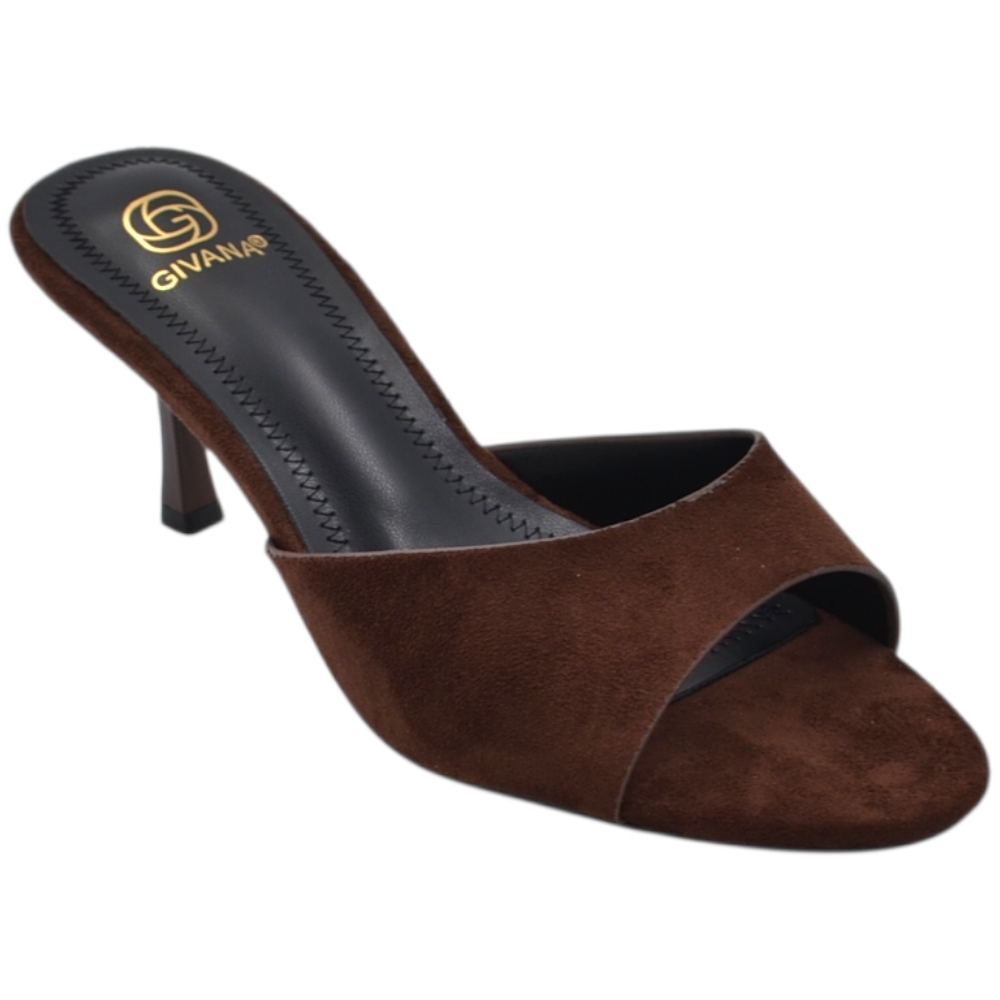 Sandalo tacco donna marrone camoscio con fascia larga avvolgente tacco sottile 7 cm open toe