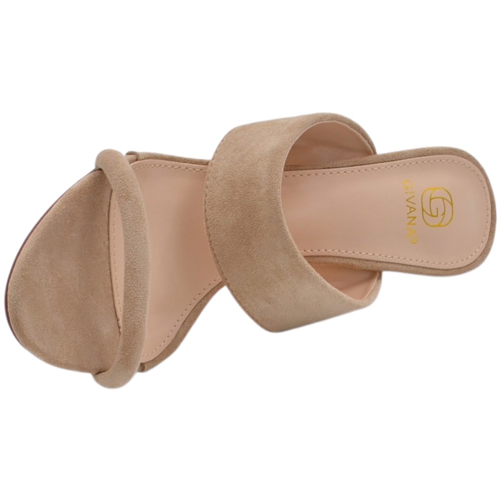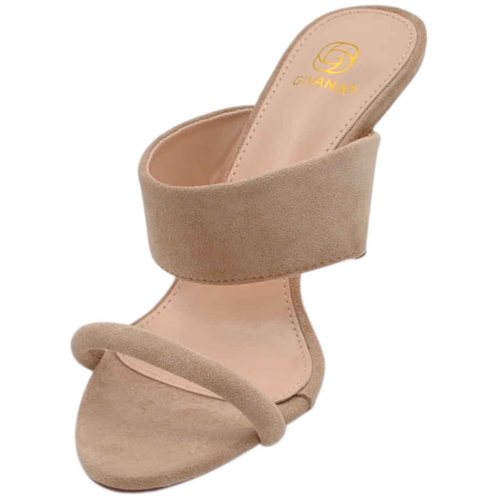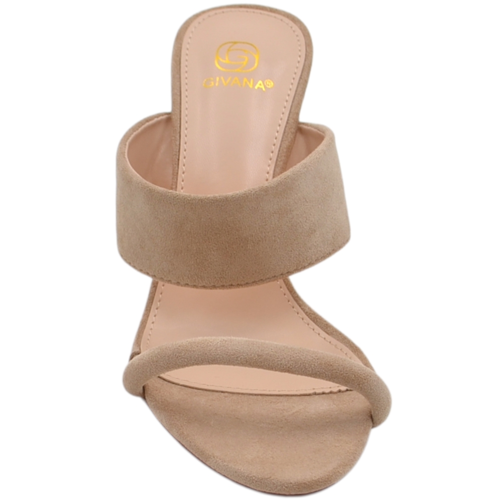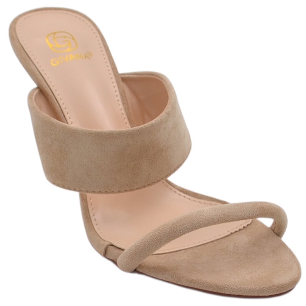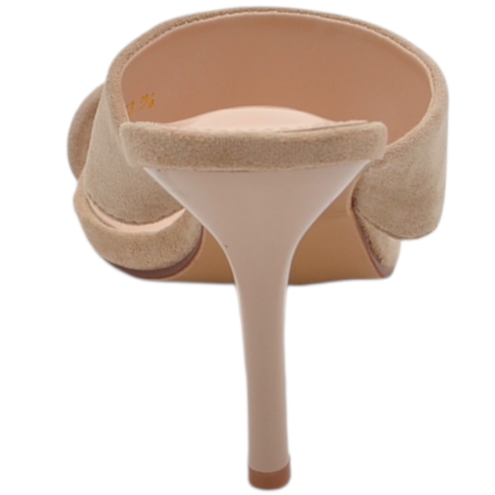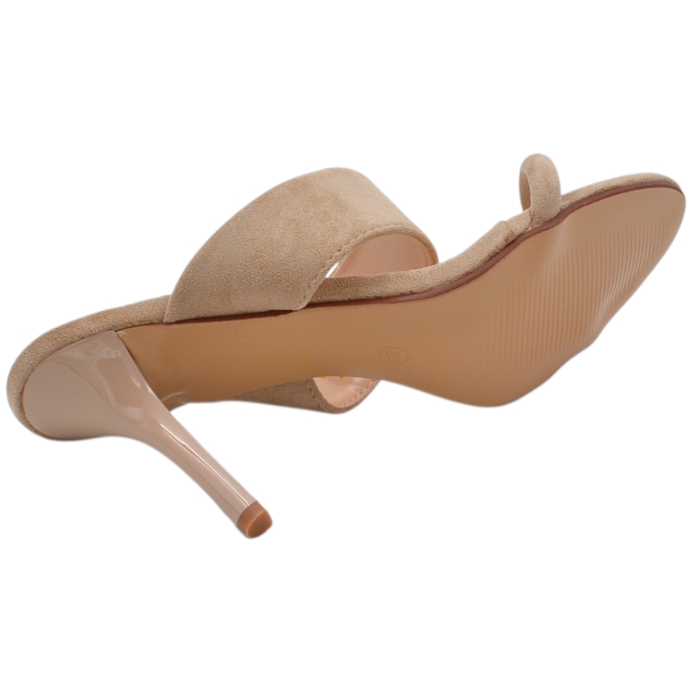 Sandalo donna tacco aperto dietro in camoscio beige con doppia fascia su collo piede tacco a spillo 10 cm