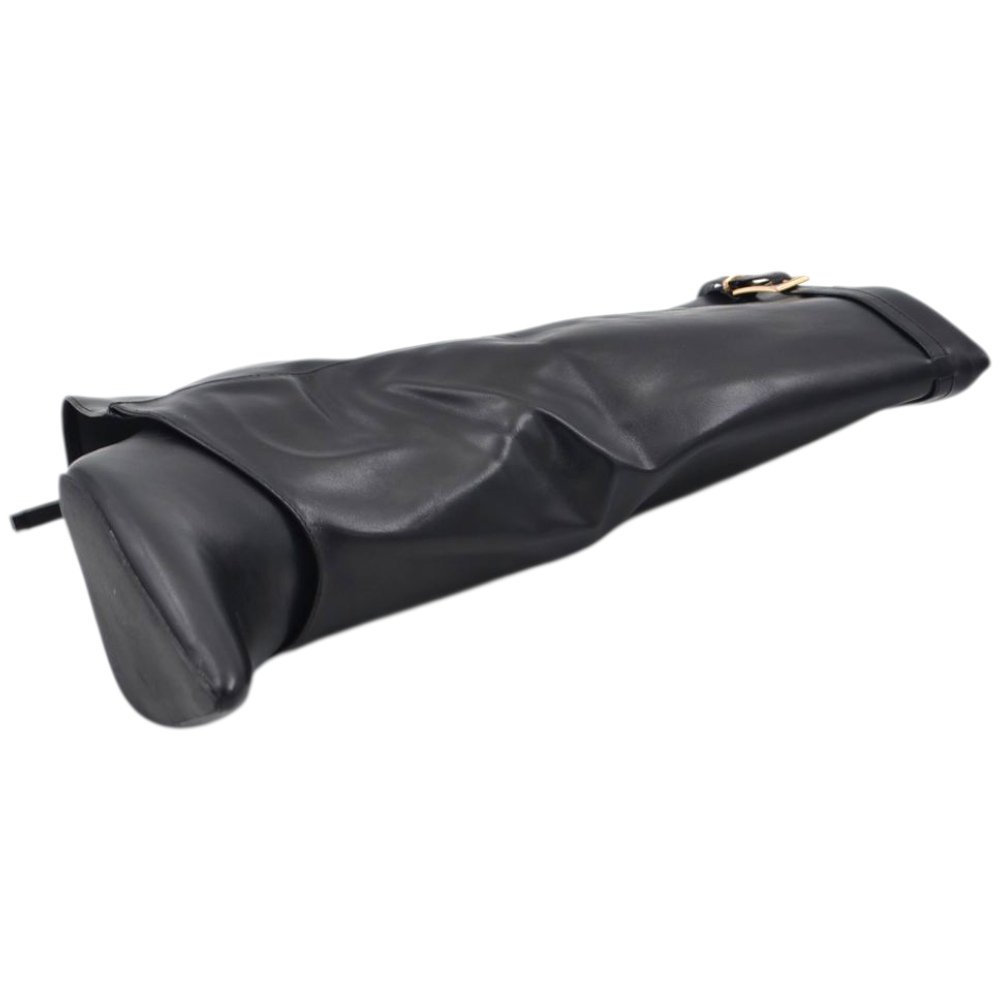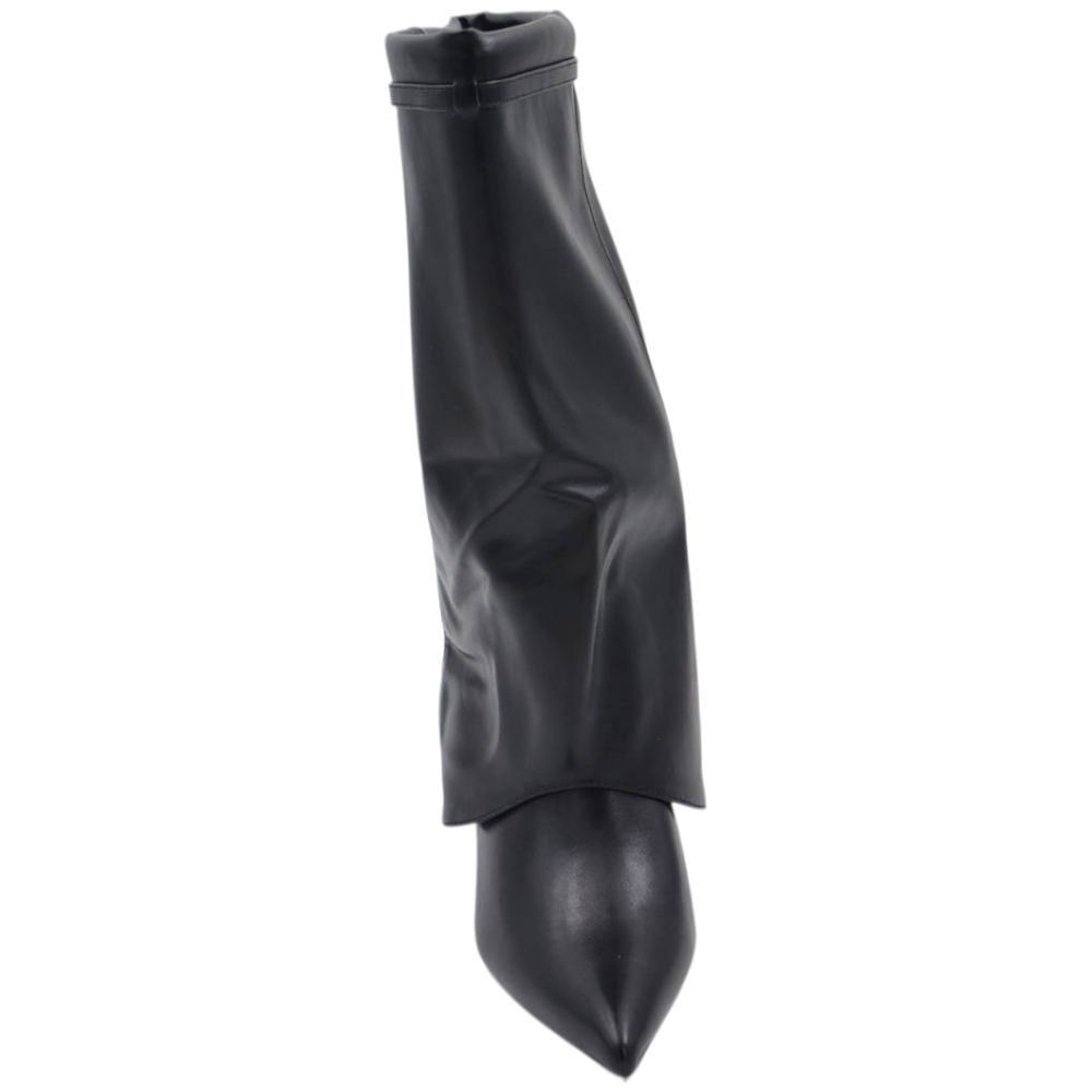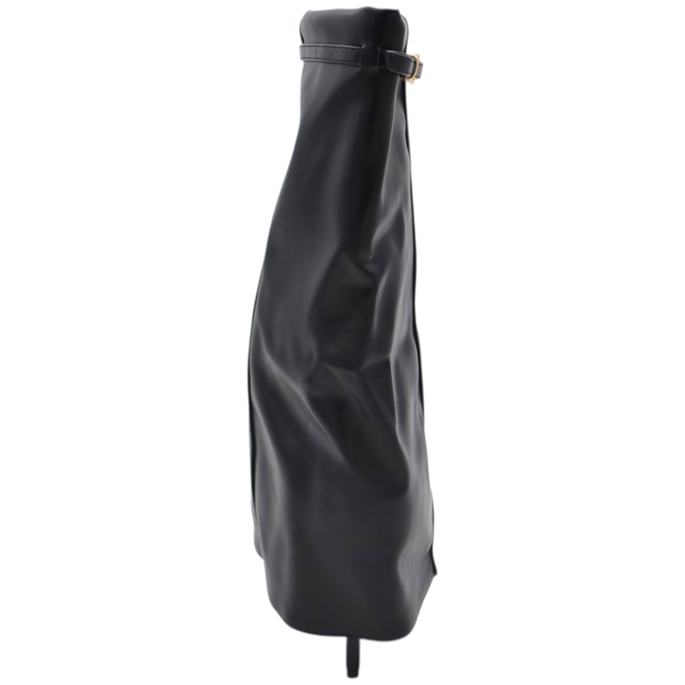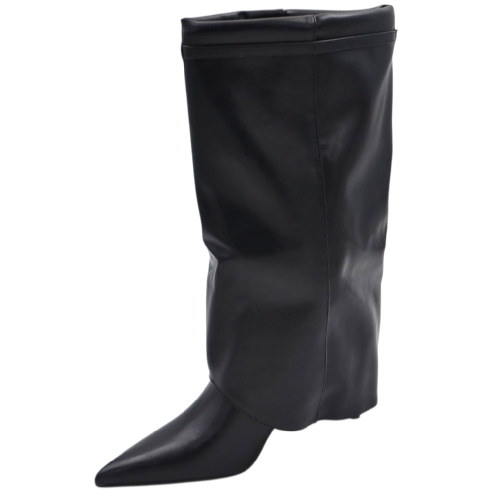 Stivale donna meta' polpaccio shark punta in pelle nero con risvolto fibbia oro tacco spillo 8 cm