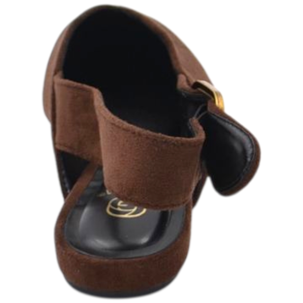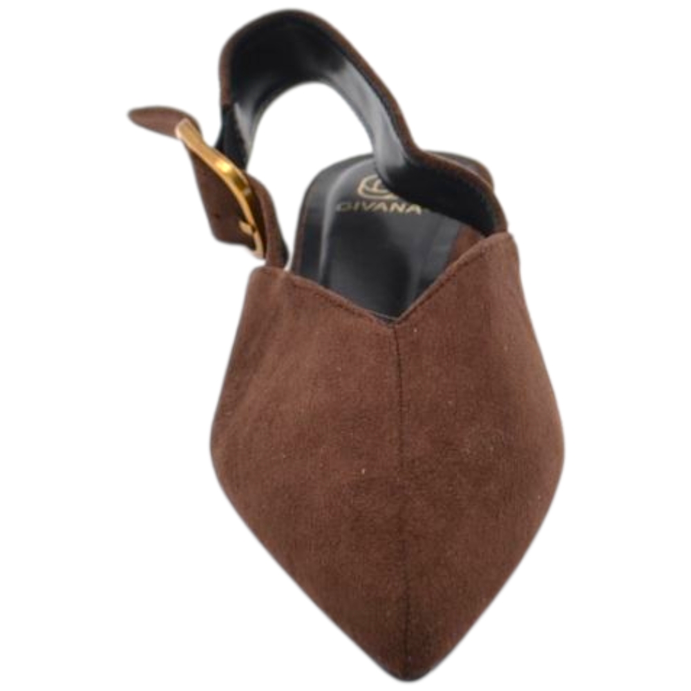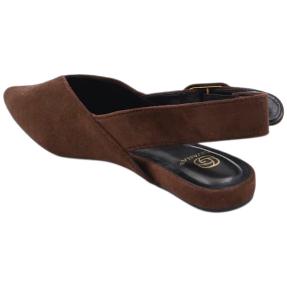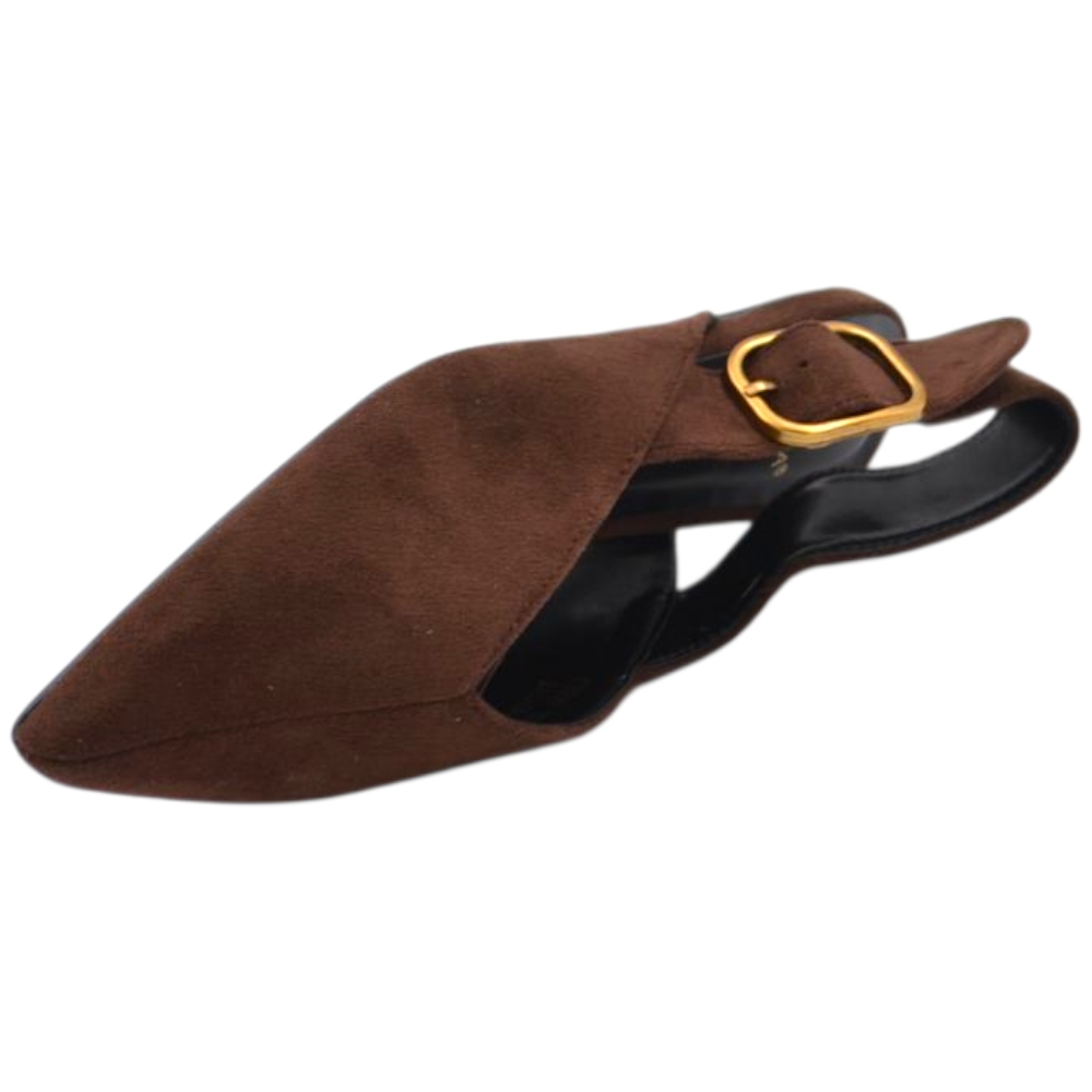 Scarpe ballerine donna a punta slingback con fibbia dorata in pelle scamosciata marrone raso terra