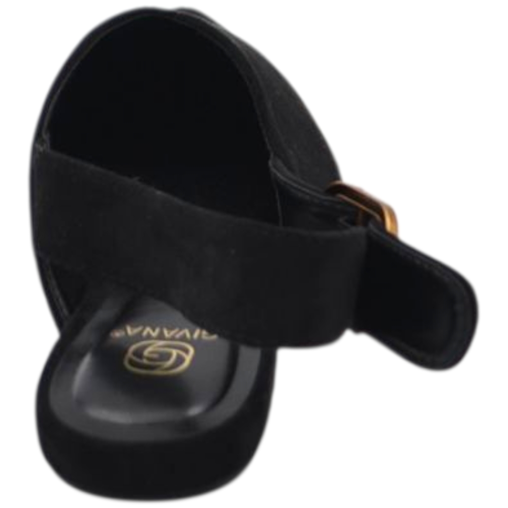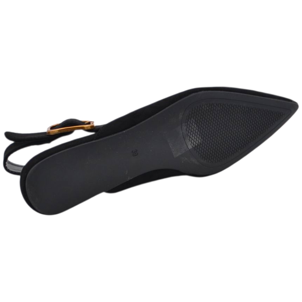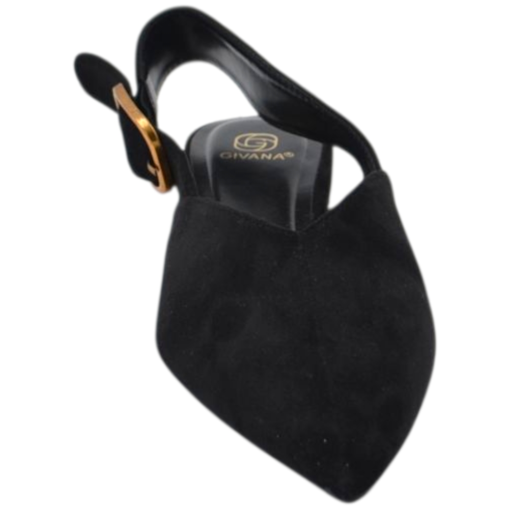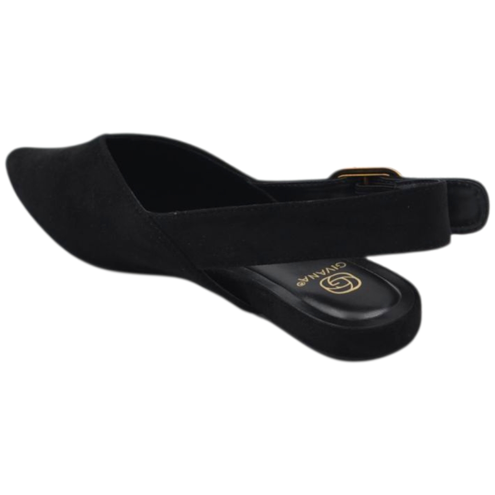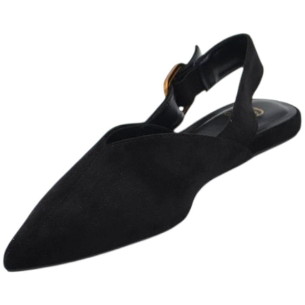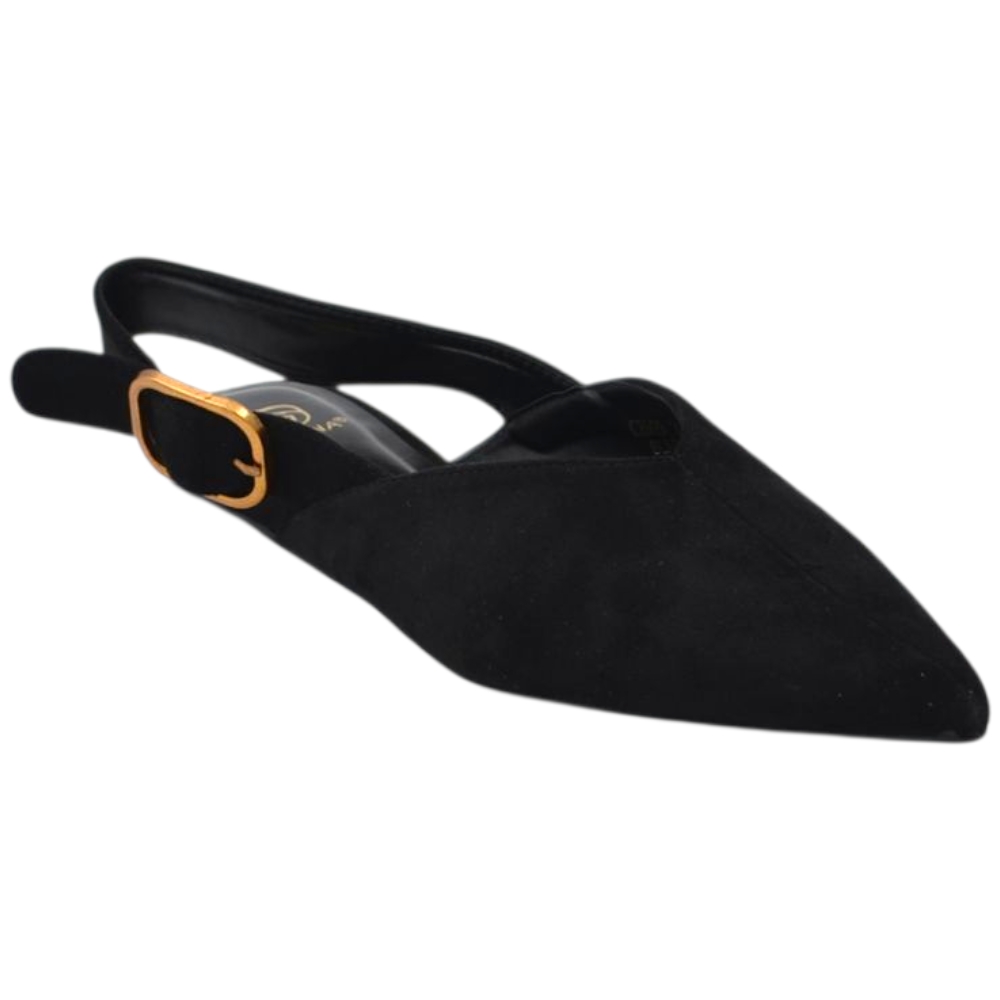 Scarpe ballerine donna a punta slingback con fibbia dorata in pelle scamosciata nero raso terra