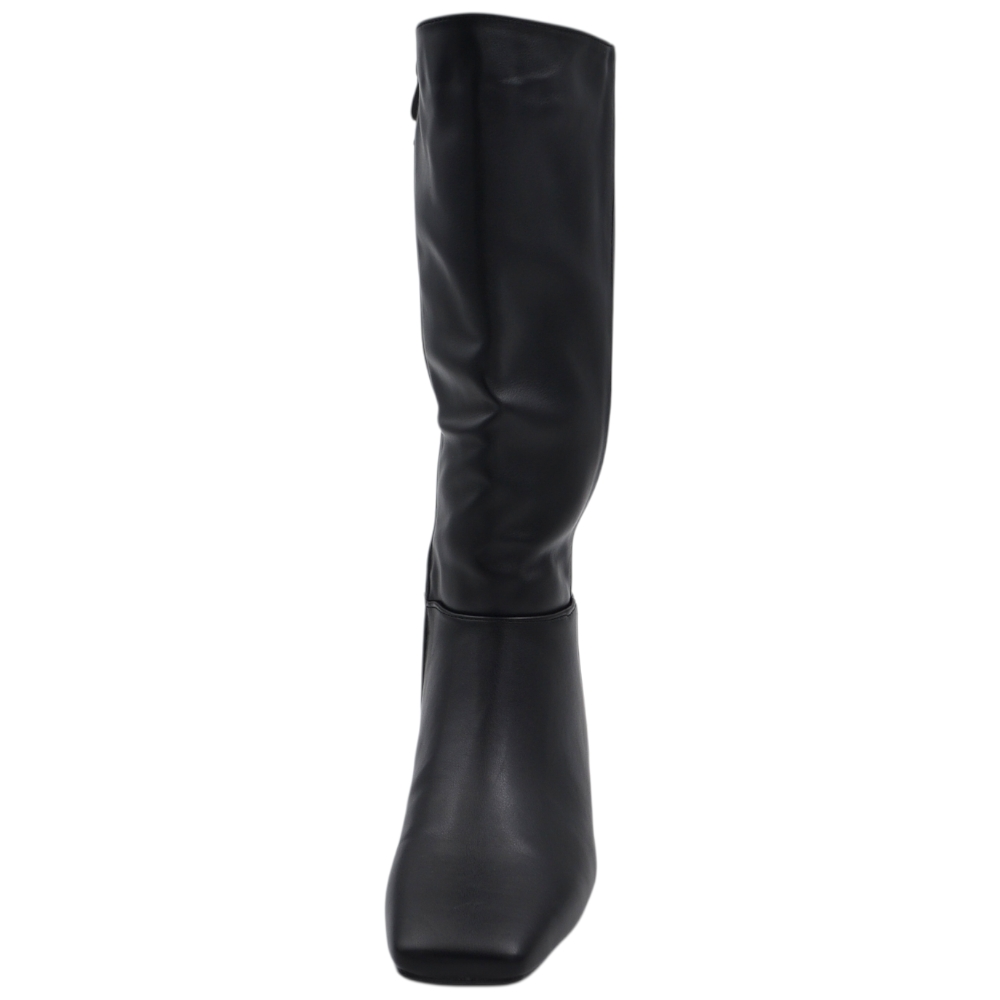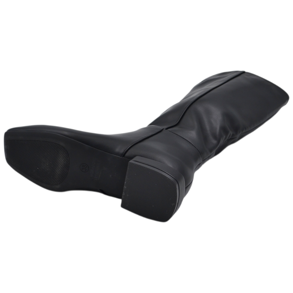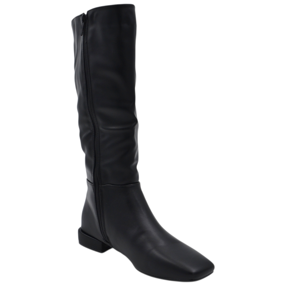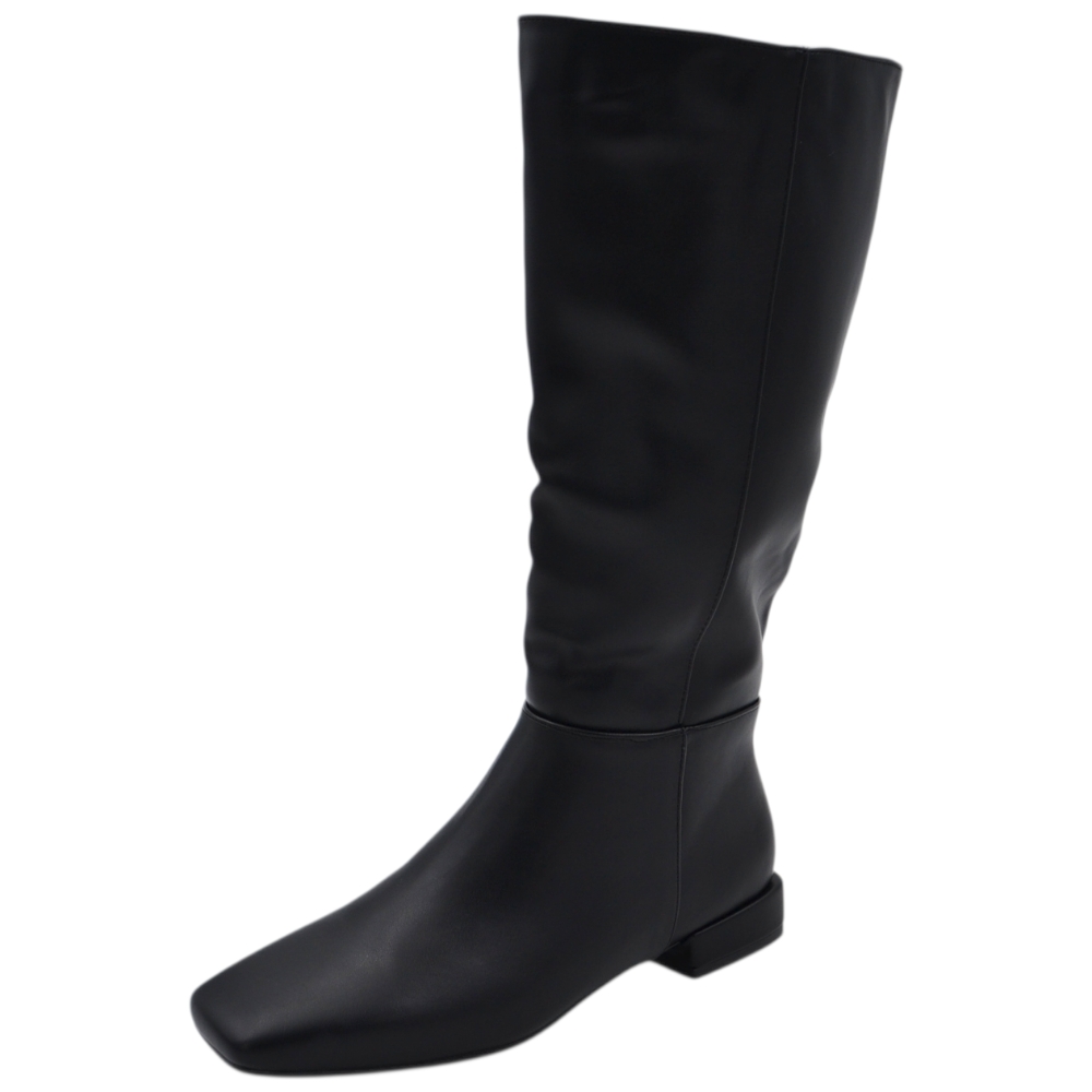 Stivali donna cavallerizzo nero liscio basic in pelle con punta squadrata aderente altezza sotto ginocchio tacco 2 cm