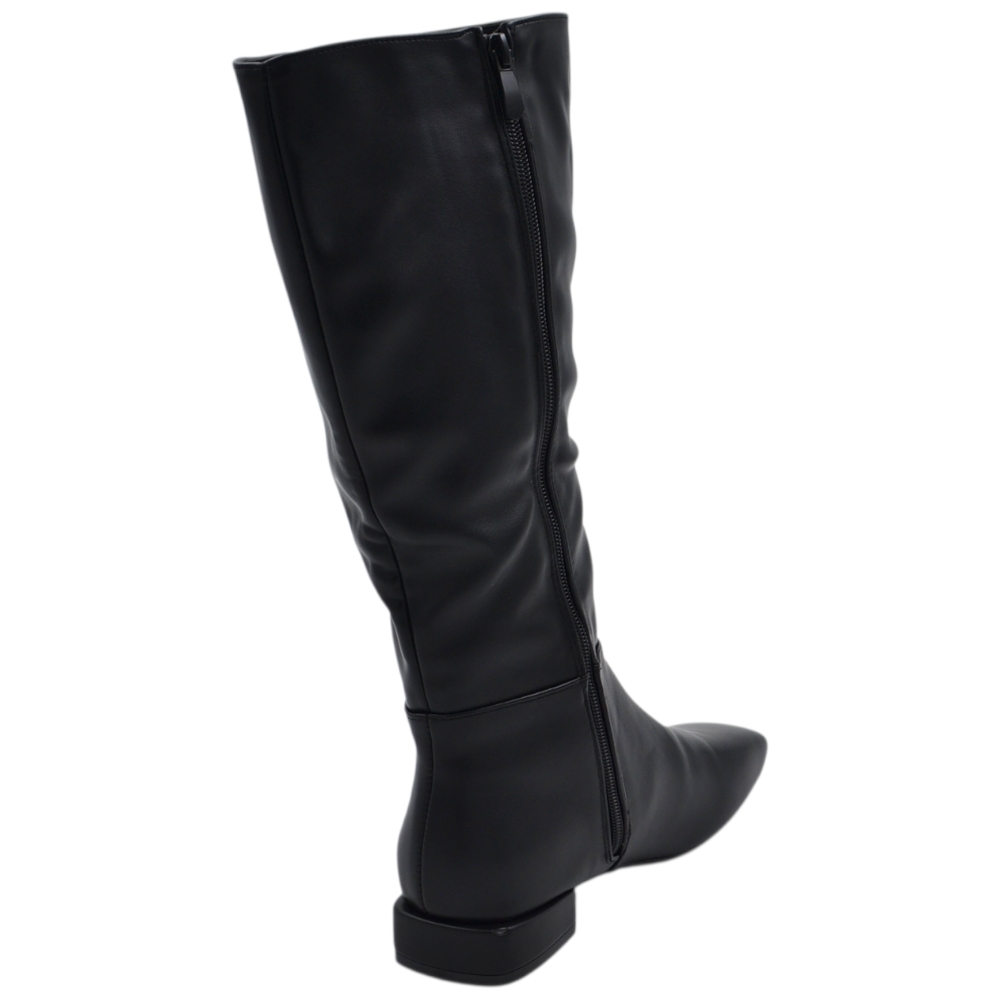 Stivale donna alto rigido in pelle nero con tacco largo stampa liscio linea basic a punta moda altezza ginocchio.