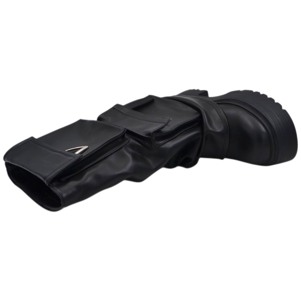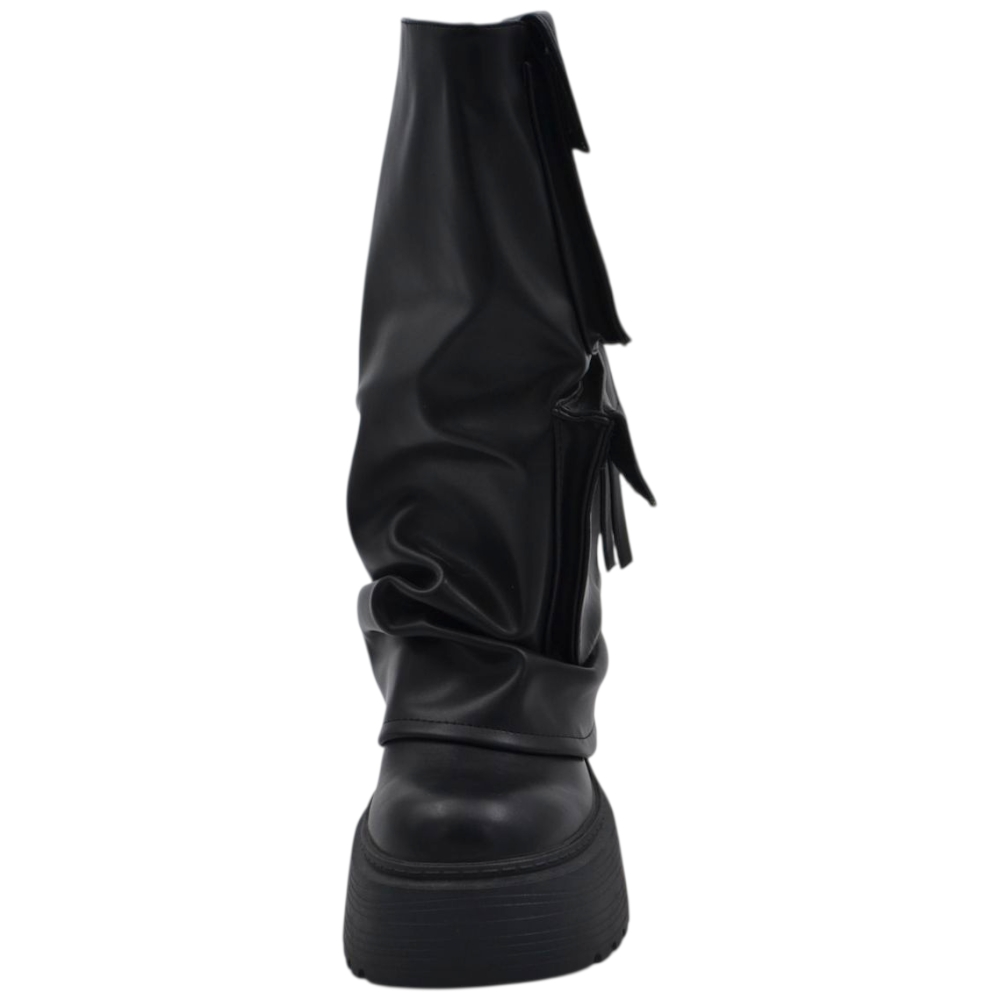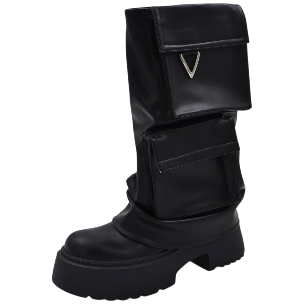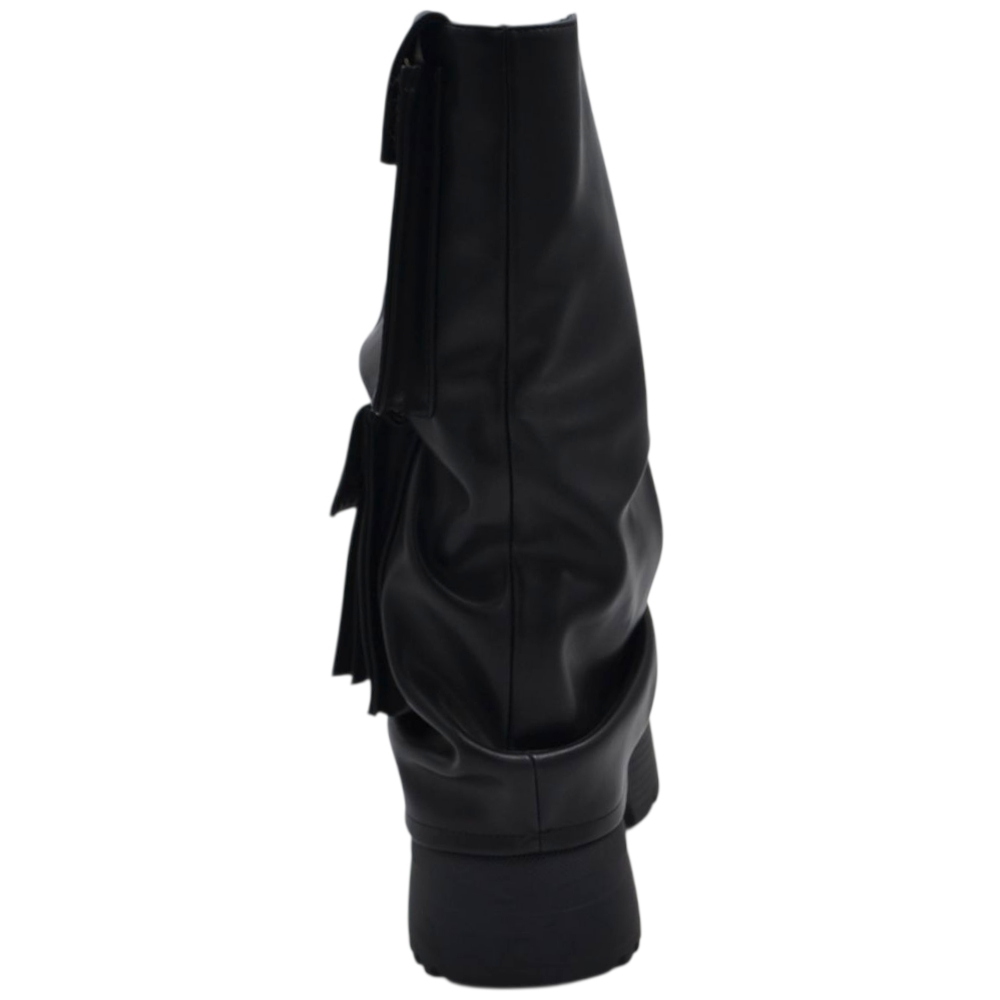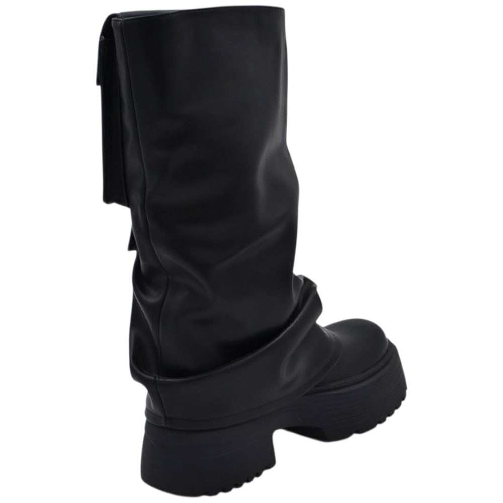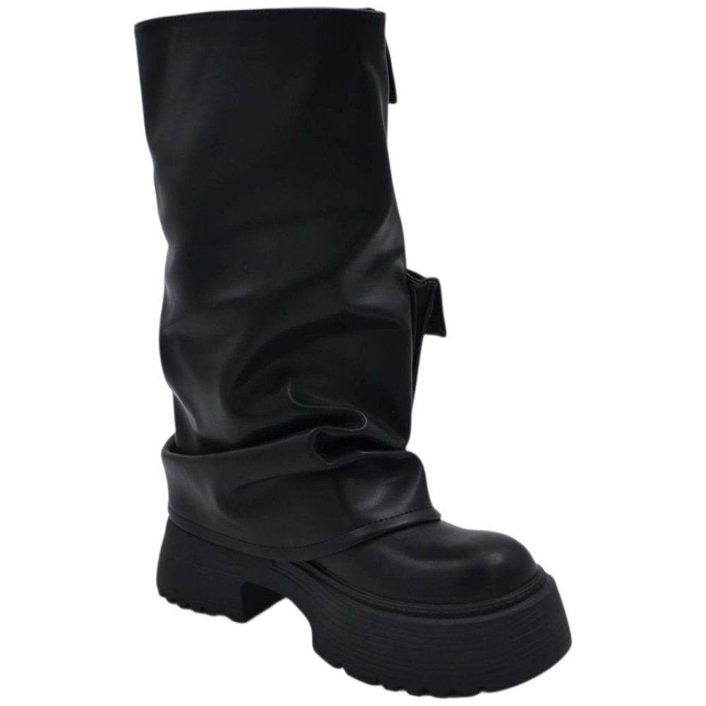 Stivali donna combat con zeppa carrarmato 8 cm gomma risvolto arricciato e taschino zip interna