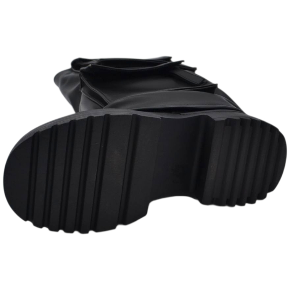 Stivali donna combat anfibi  nero con zeppa carrarmato e zip cinghie laterali rimovibili lacci .