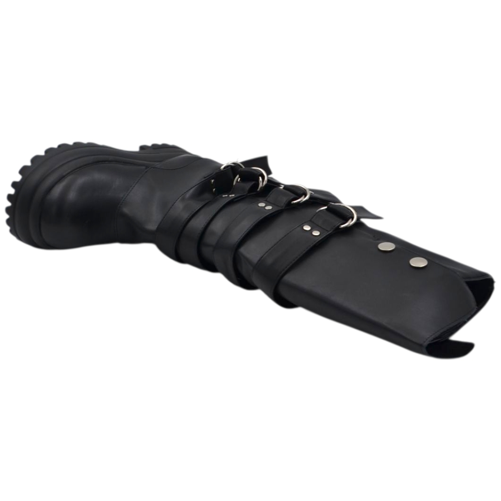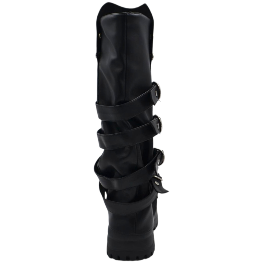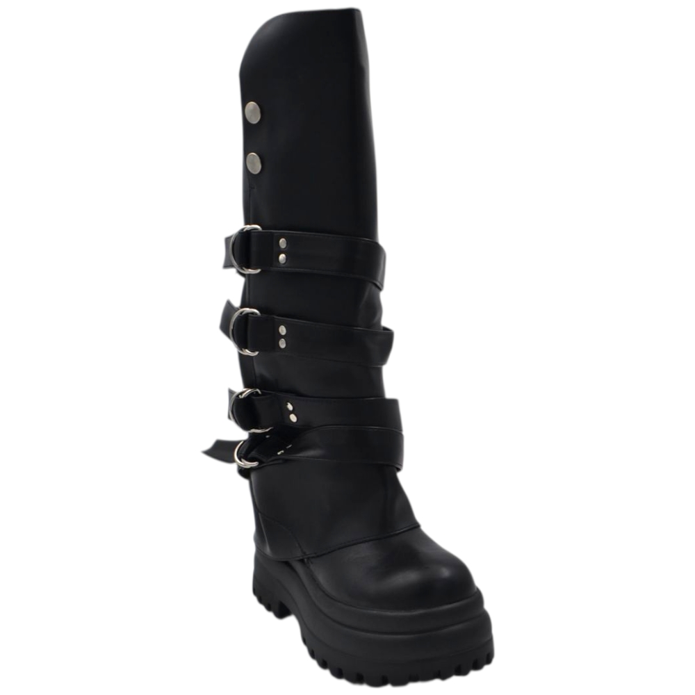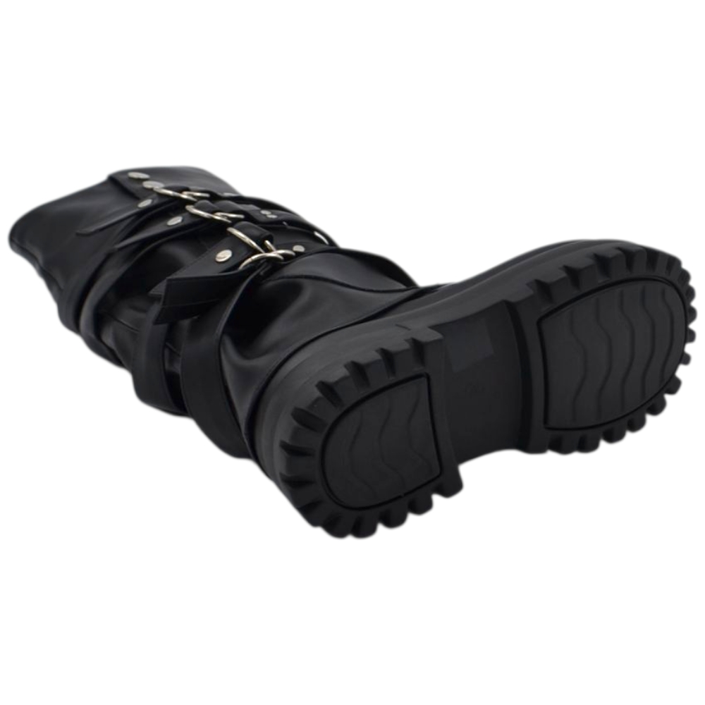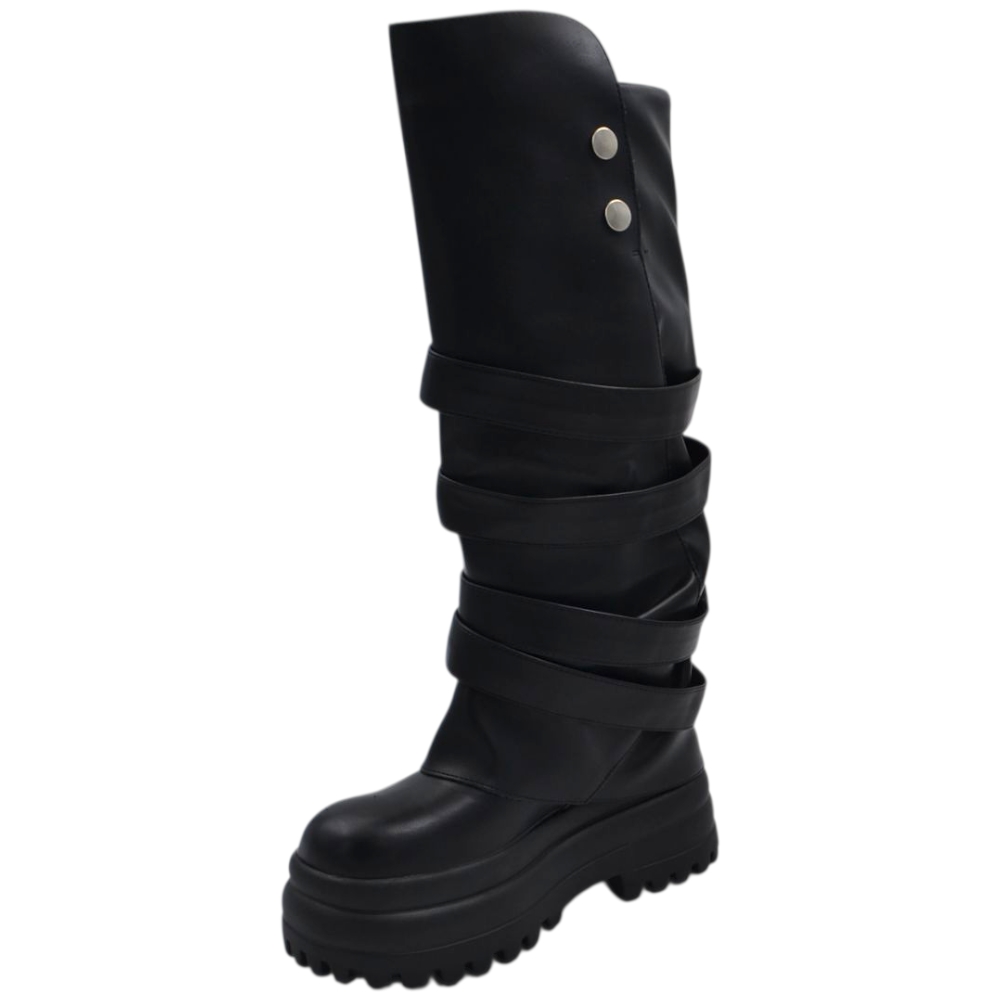 Stivali donna combat con zeppa carrarmato 8 cm gomma risvolto arricciato fibbie argento e bottoni zip interna