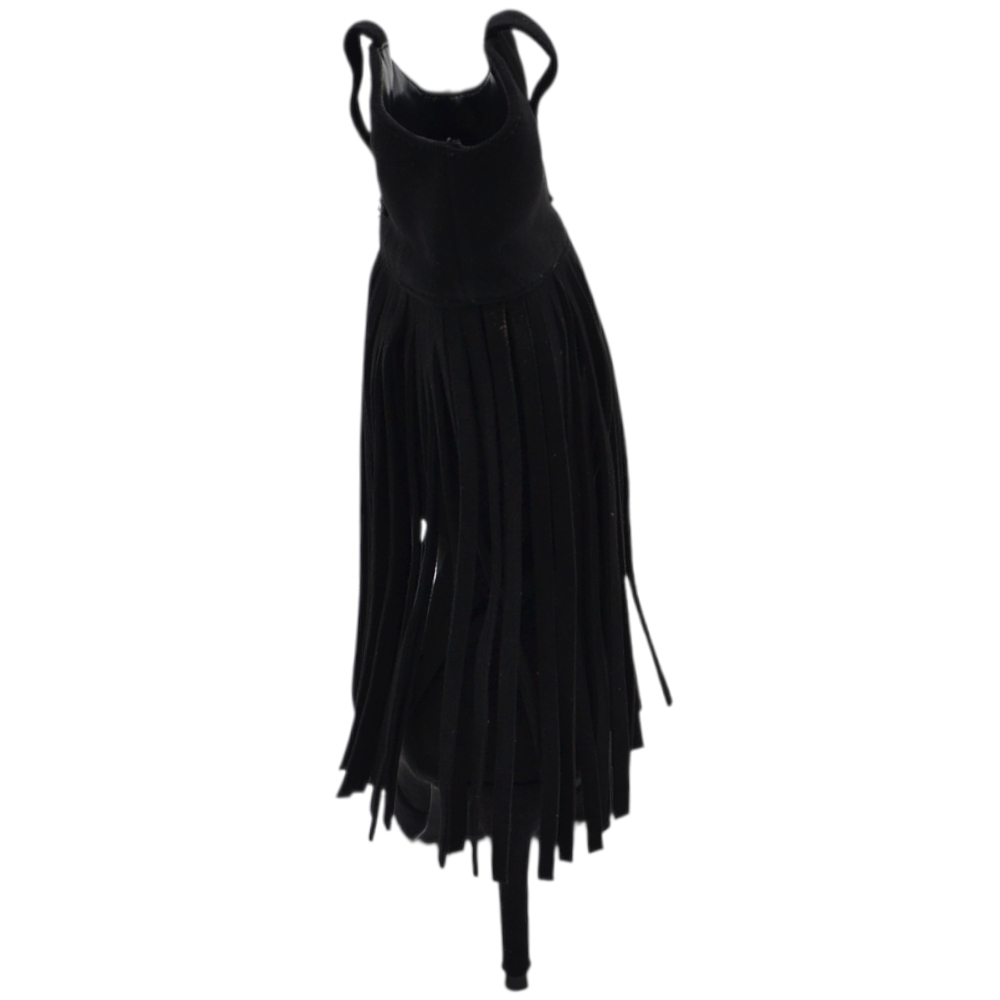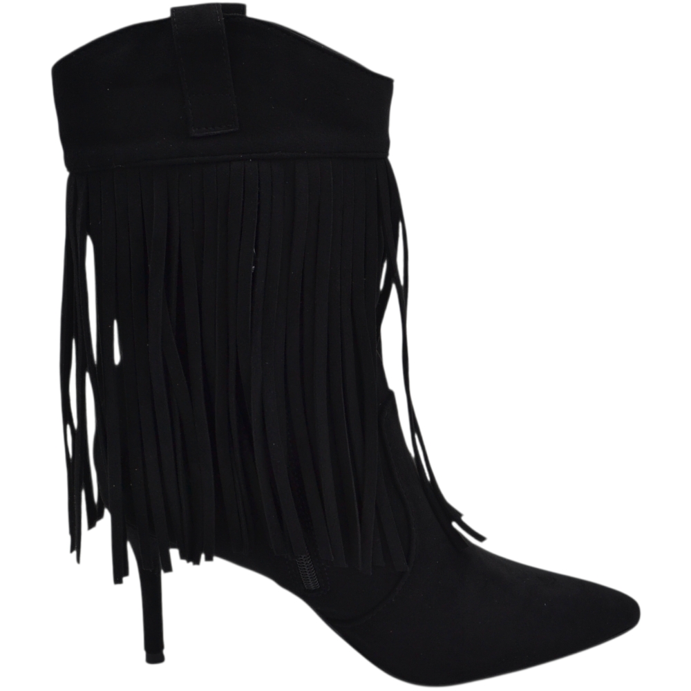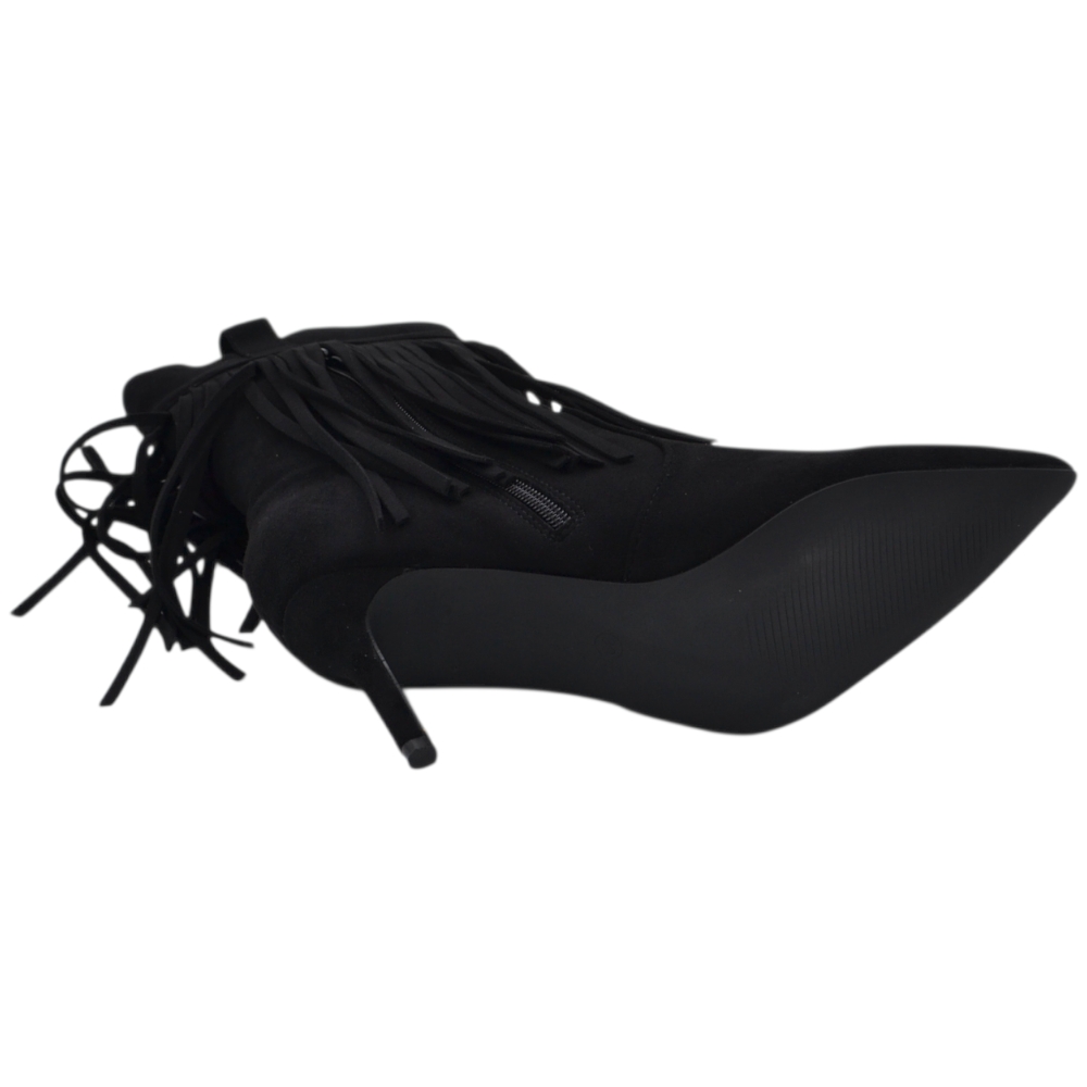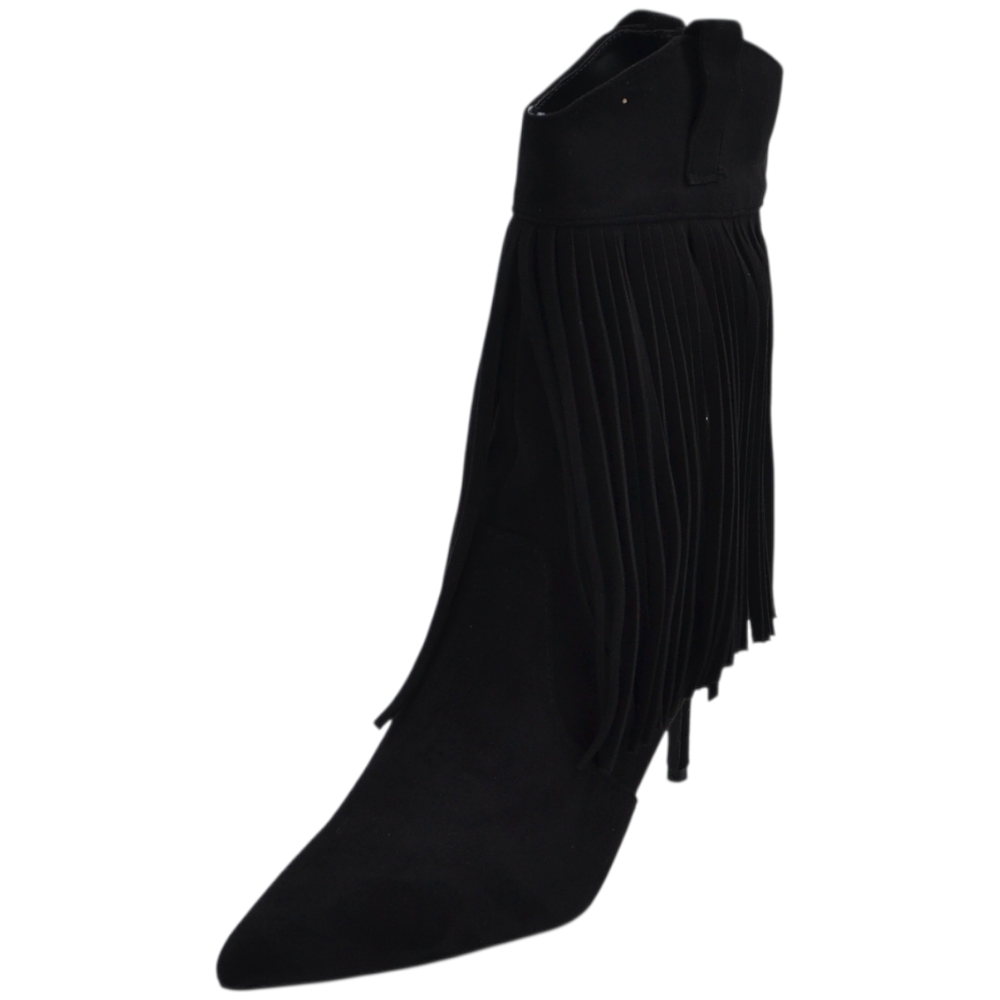 Stivaletto tronchetto donna meta' polpaccio a punta con frange camoscio nero tacco a spillo 10 zip