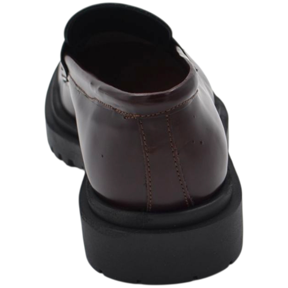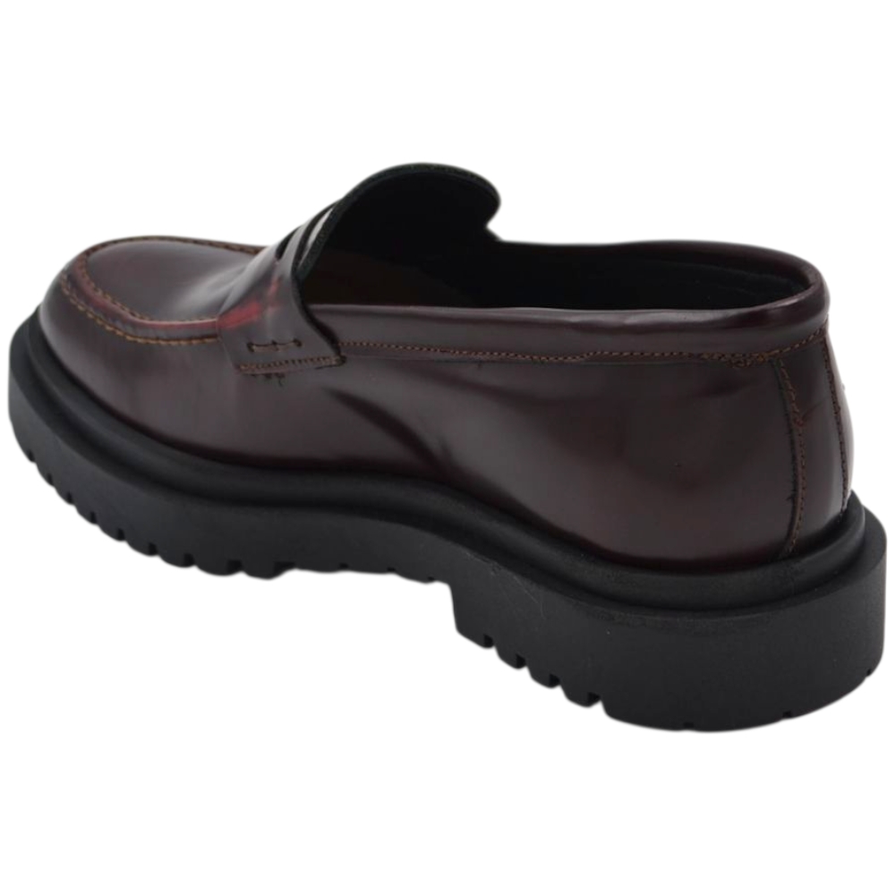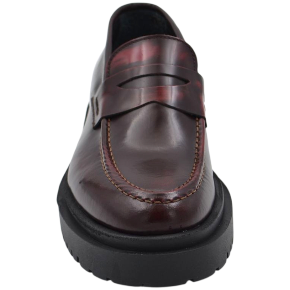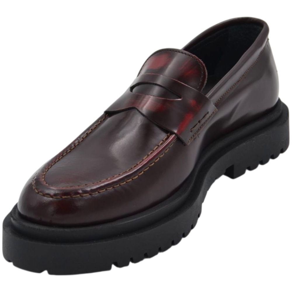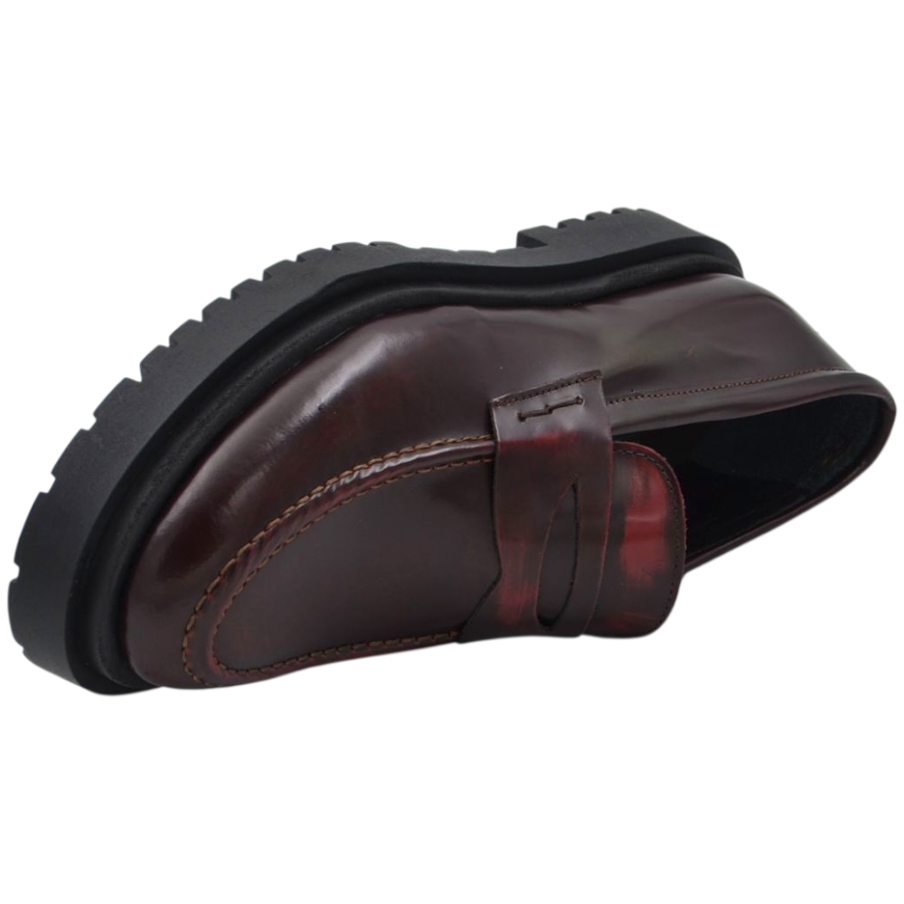 Scarpe uomo mocassino con bendina bordeaux vera pelle spazzolata effetto vintage fondo alto gomma zigrinato