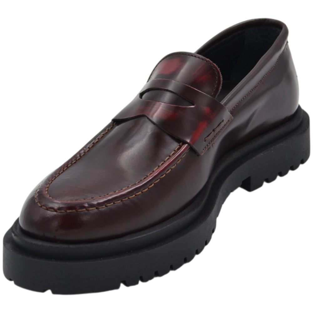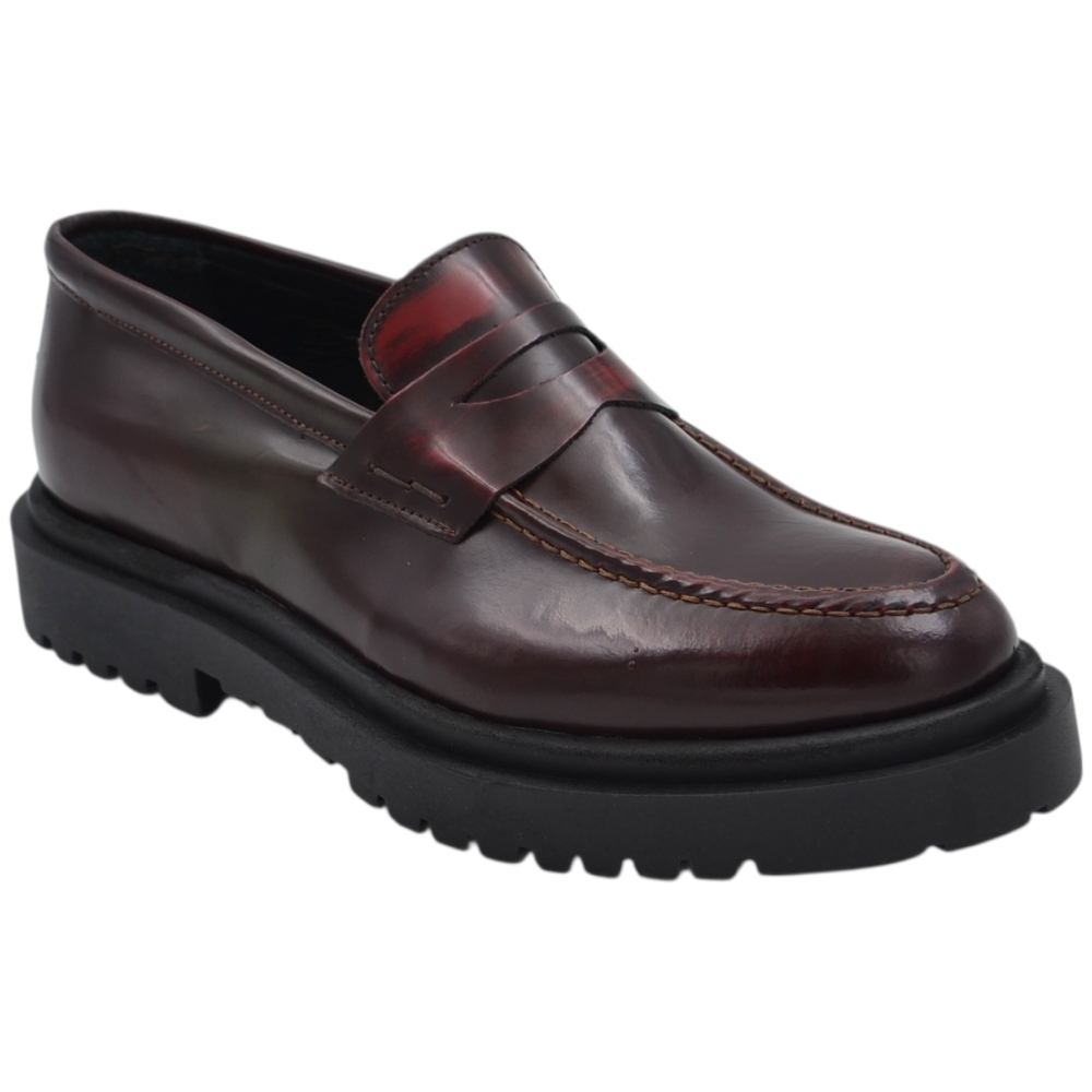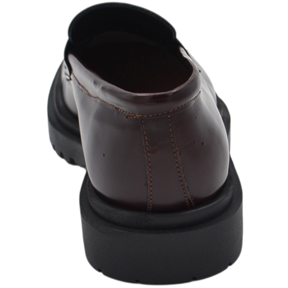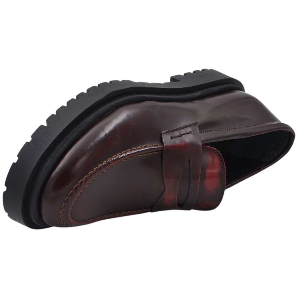 Scarpe uomo mocassino con bendina marrone vera pelle semilucida effetto vintage fondo alto gomma zigrinato