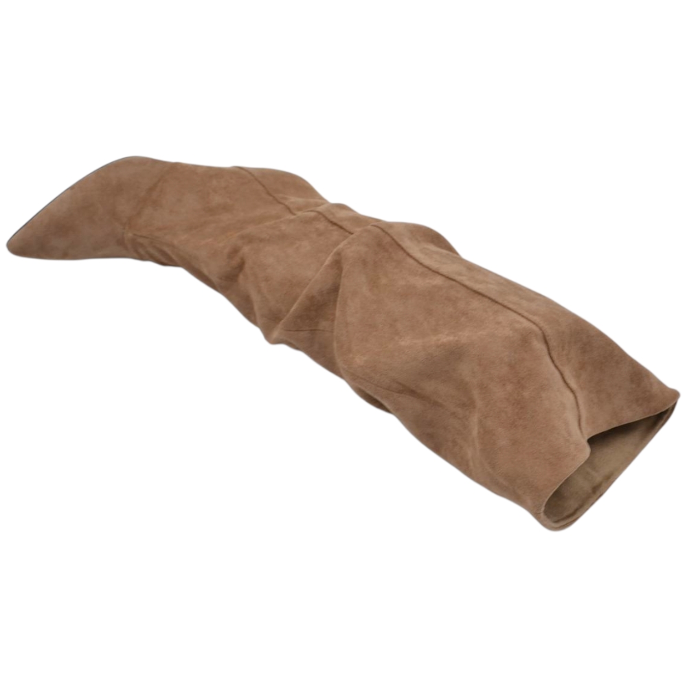 Stivali slouchy altissimo in camoscio marrone a punta con tacco basso kitten gambale over trend.