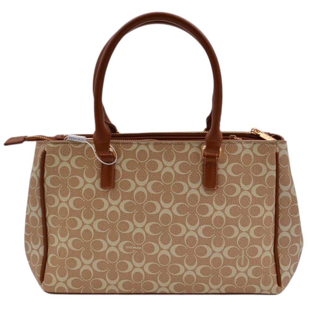 Borsa firmata shopping Coconuda donna a spalla con tracolla fantasia logo beige e cuoio zip dorata