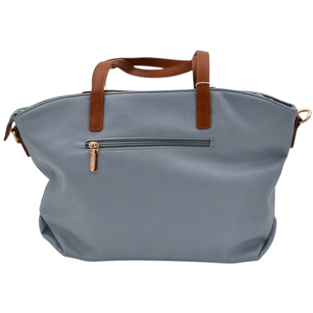 Borsa firmata shopping coconuda donna morbida a spalla con tracolla azzurro denim e cuoio con zip dorata